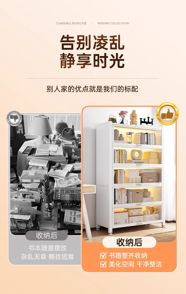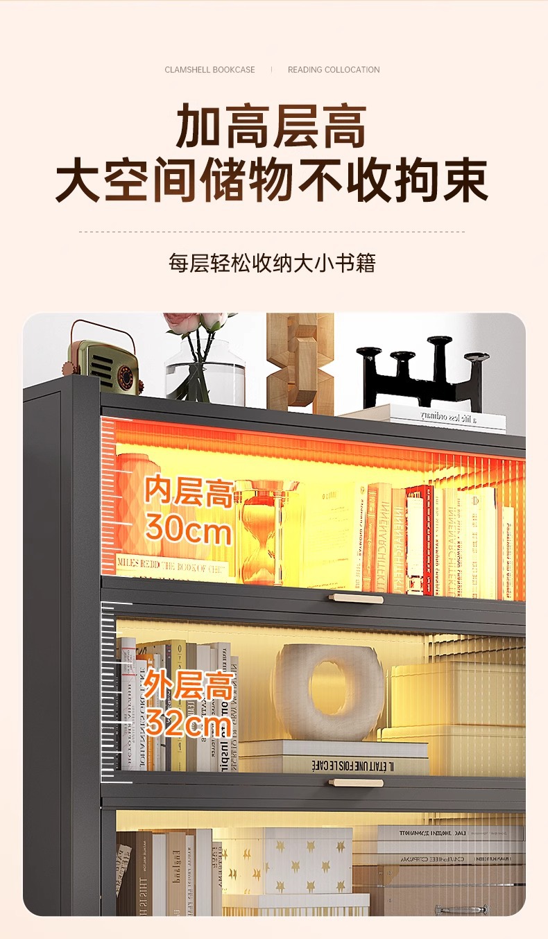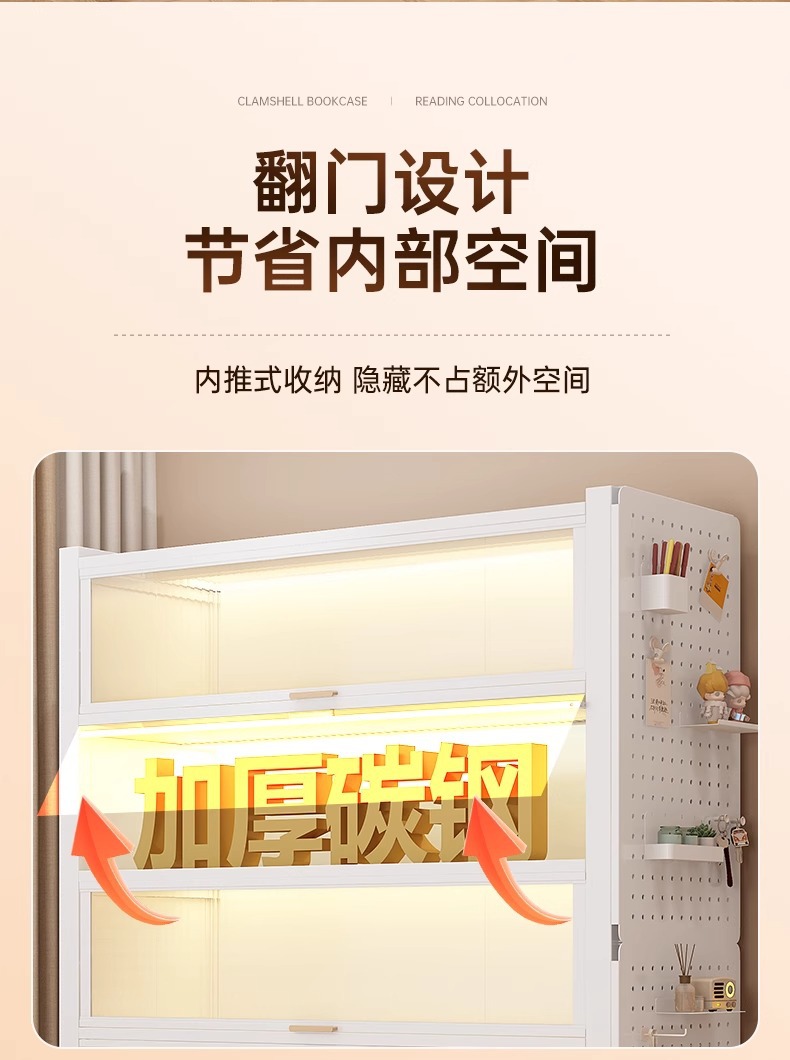 钢制书柜带门儿童书架防尘储物柜客厅展示柜铁艺卧室置物架收纳柜