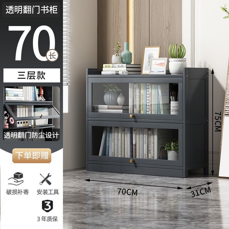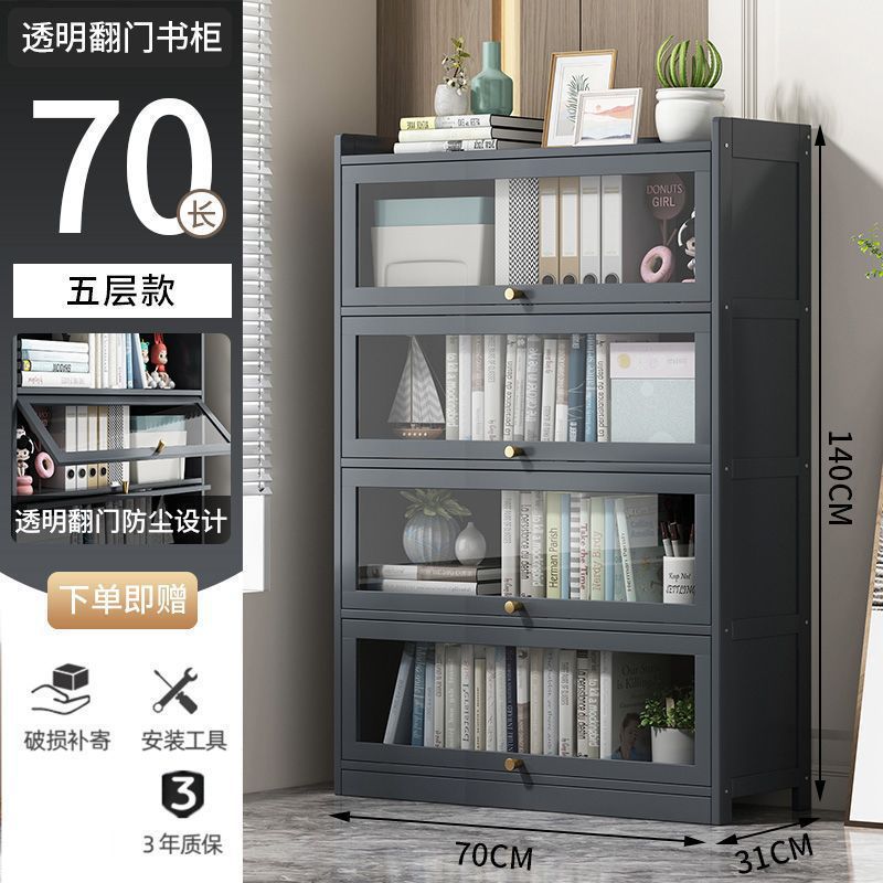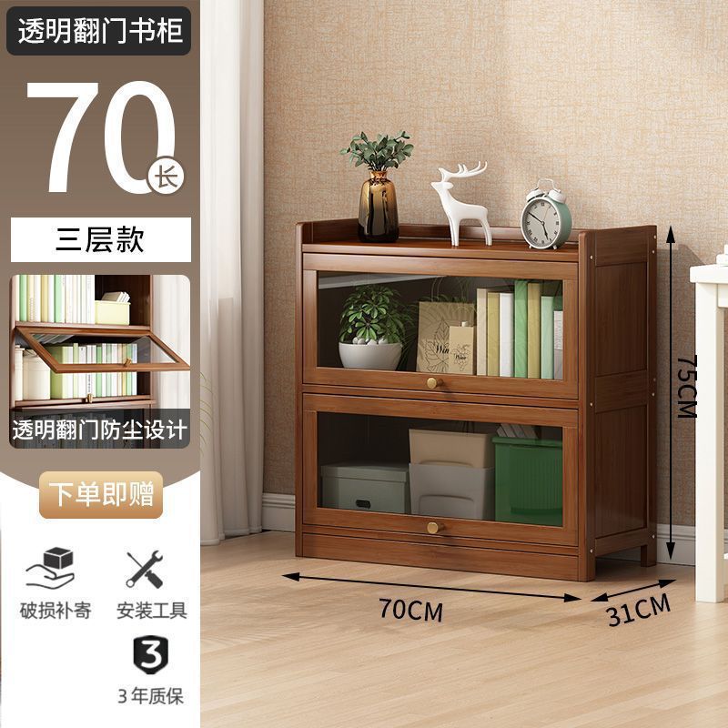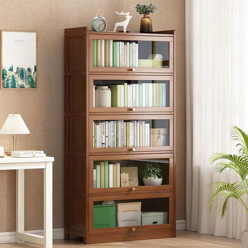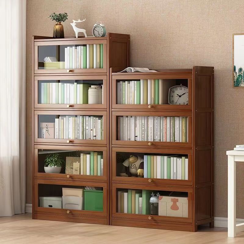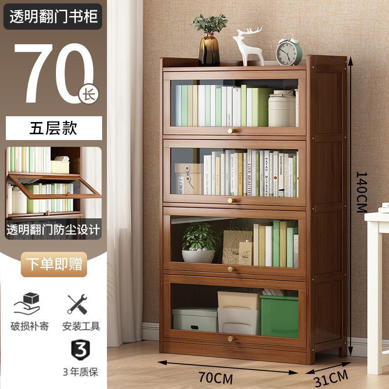 新中式书架收纳柜翻盖置物架落地全封闭家用防尘简易实木书柜多层