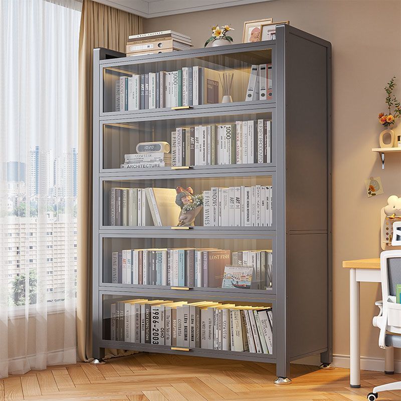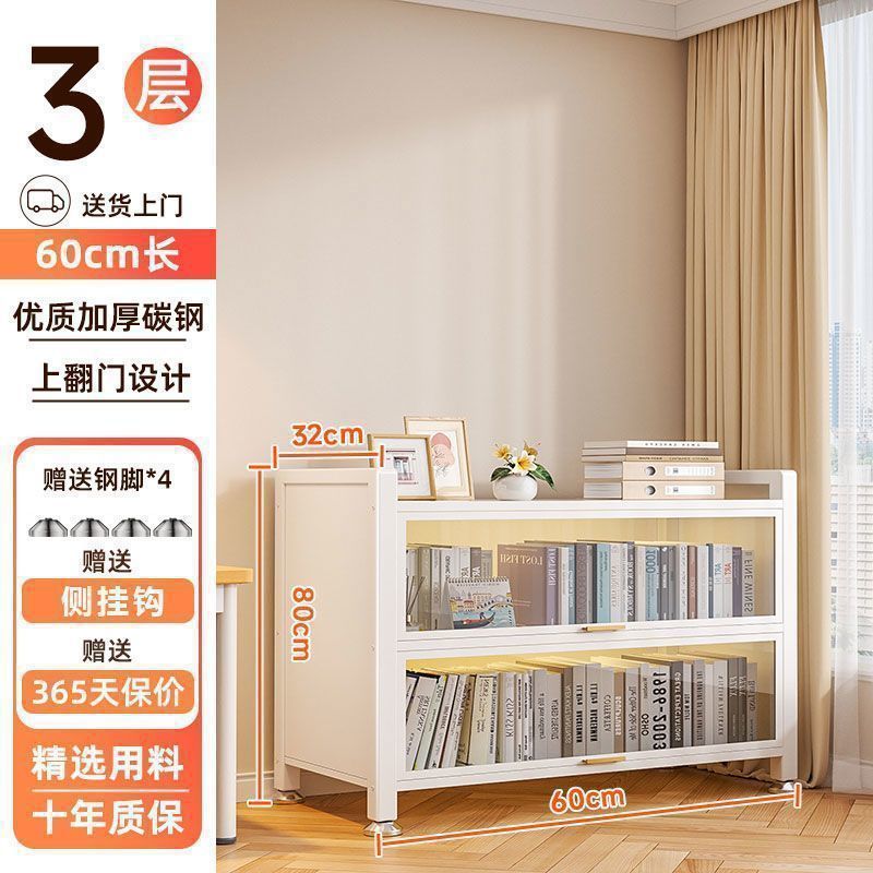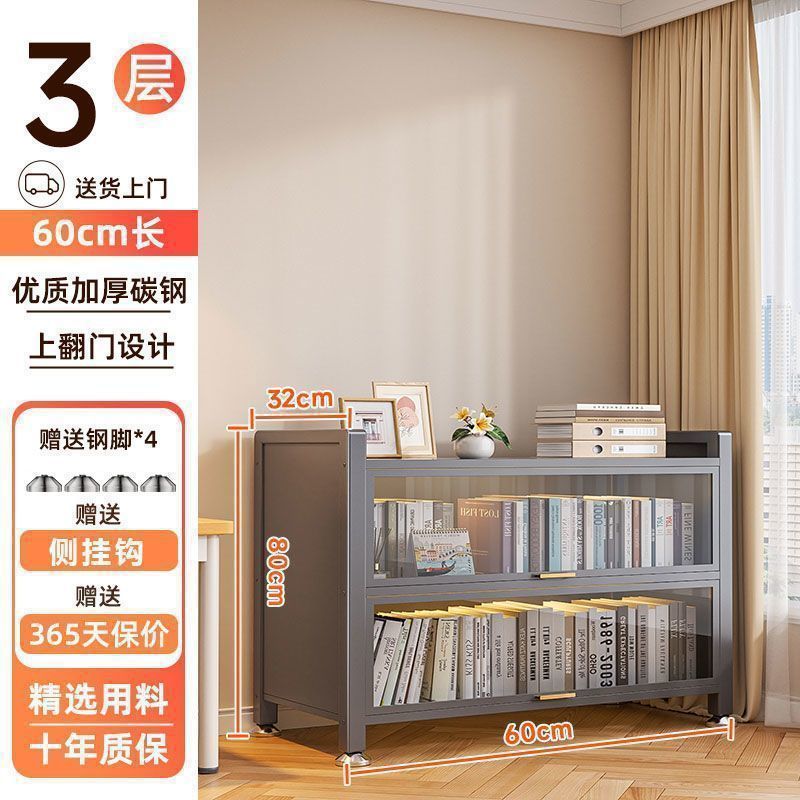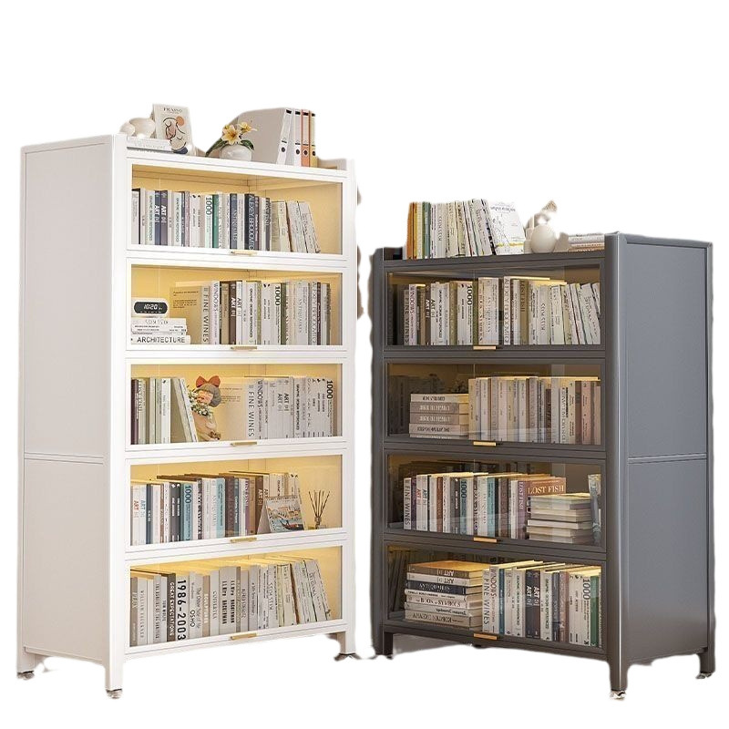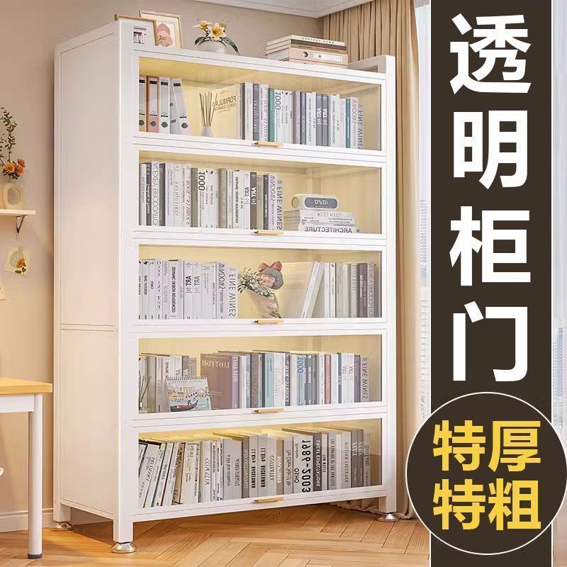 钢制书柜透明亚克力带条纹儿童书架储物收纳防尘柜客厅卧室置物架