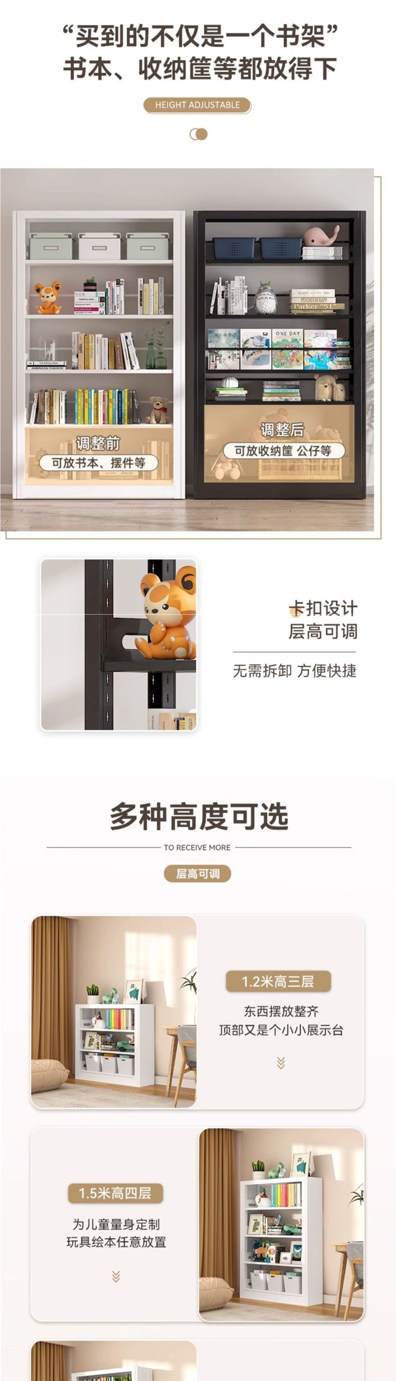 家用图书馆钢制书架落地置物架儿童书柜绘本铁架客厅简约铁艺加厚