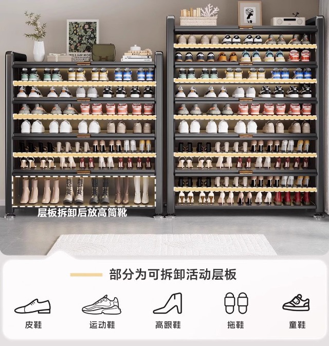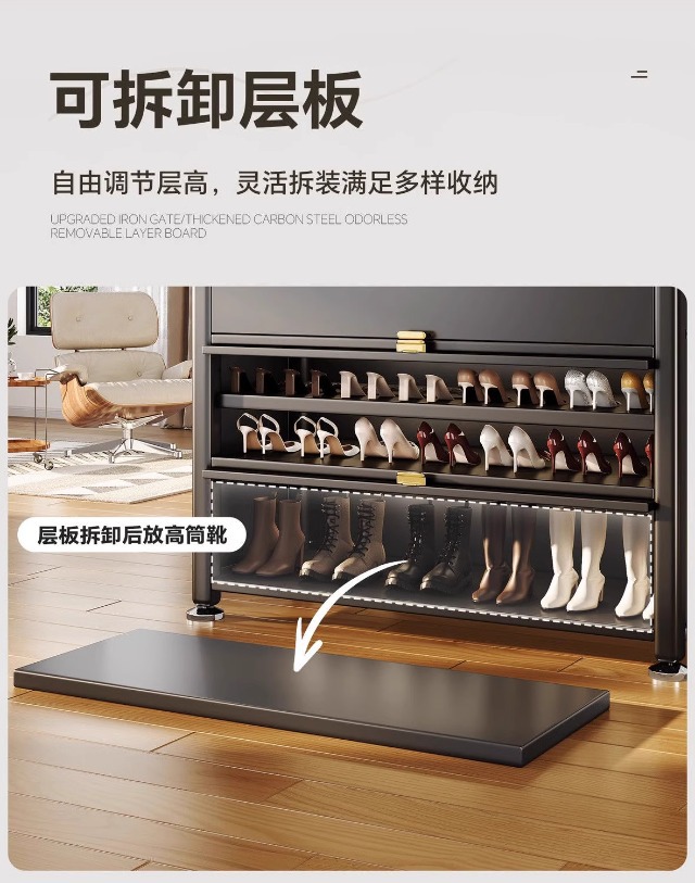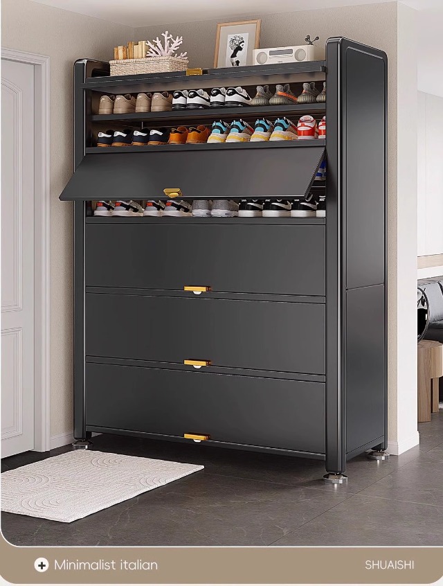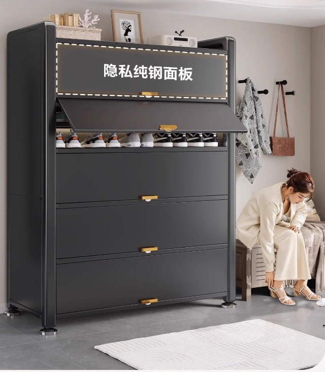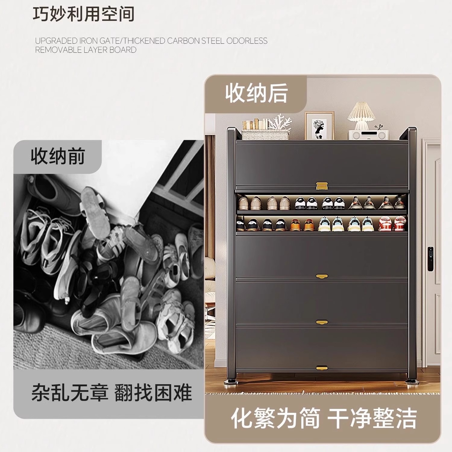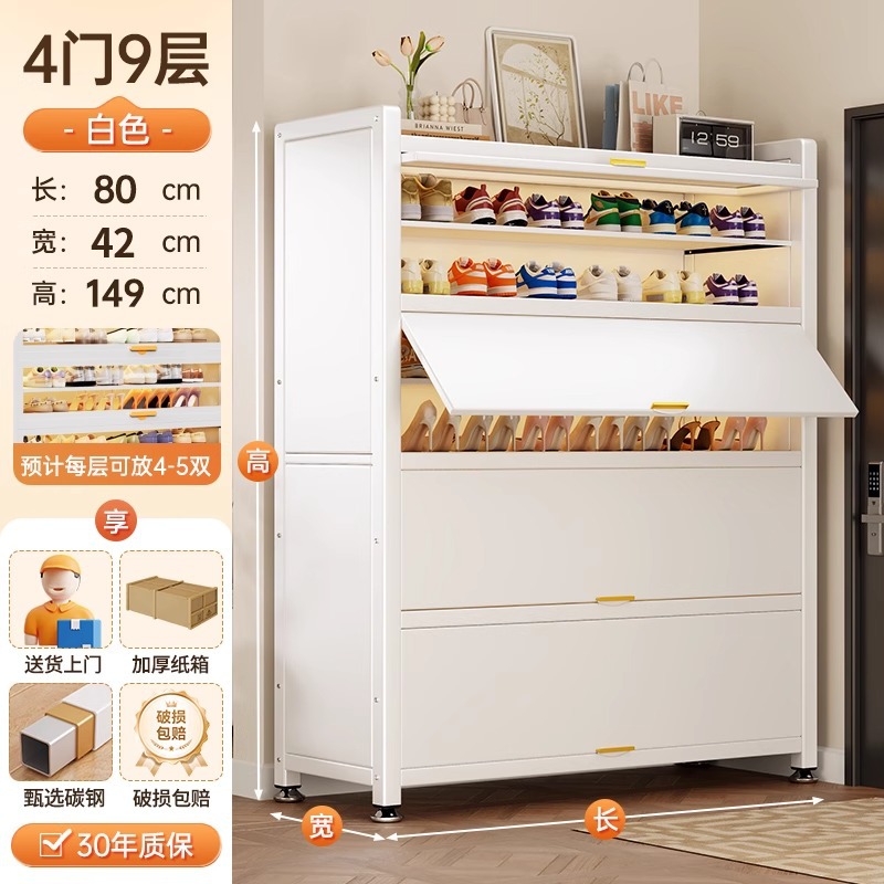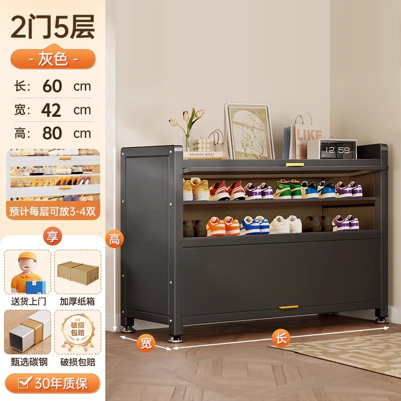 家用钢制鞋柜门口一体柜落地靠墙带门鞋架防尘入户玄关柜储物柜子