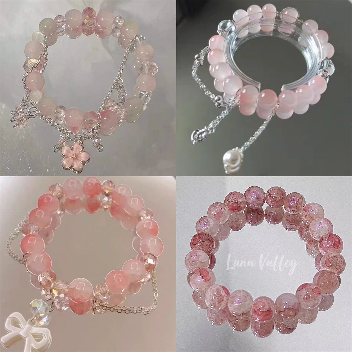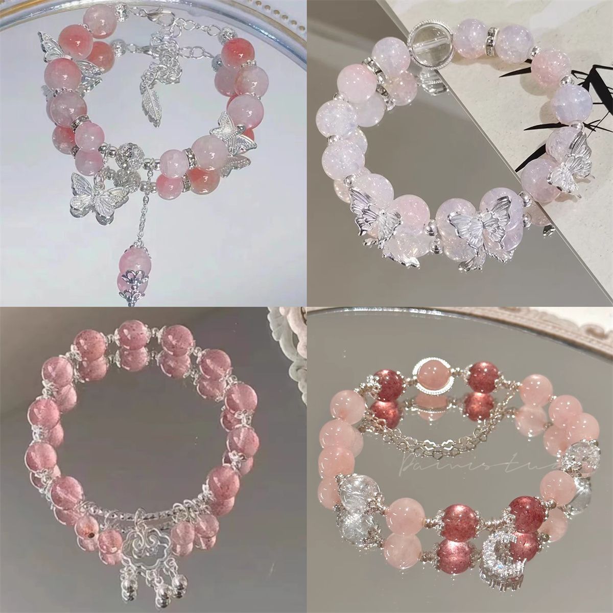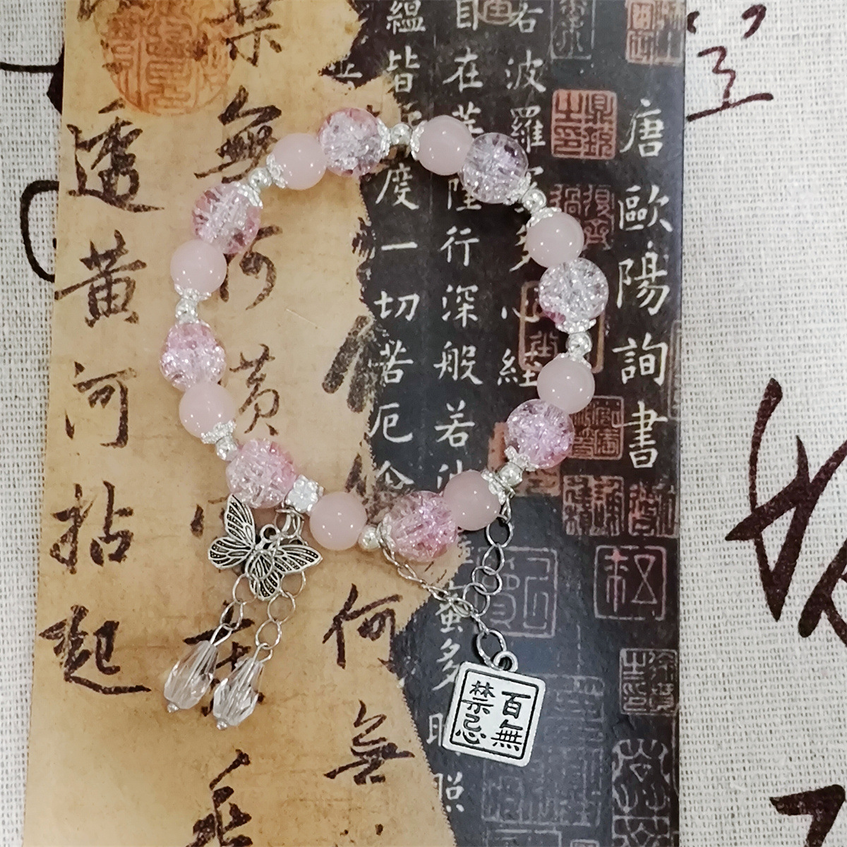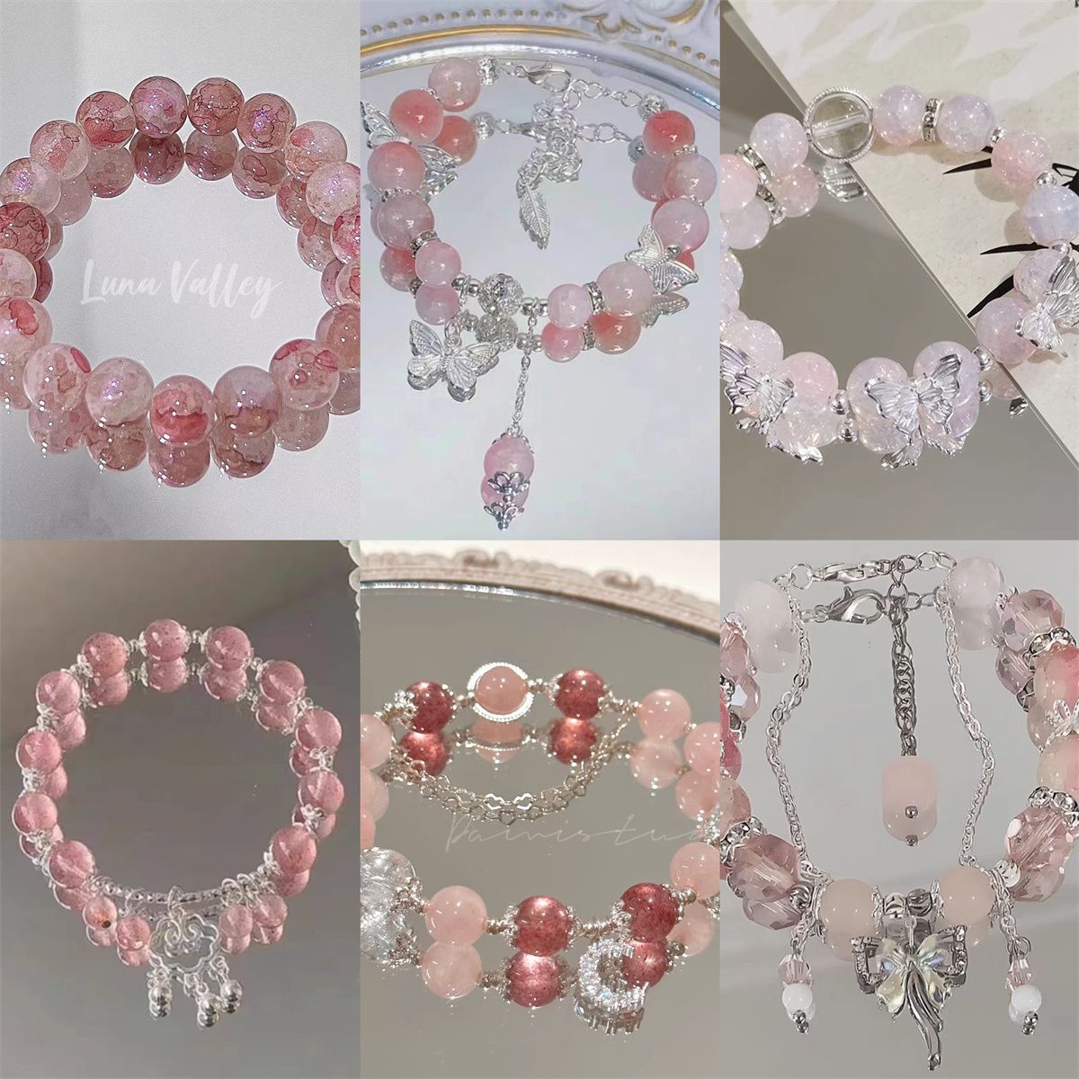 水蜜桃蝴蝶结手链女ins甜美超显白桃粉蝴蝶串珠手串学生闺蜜礼物