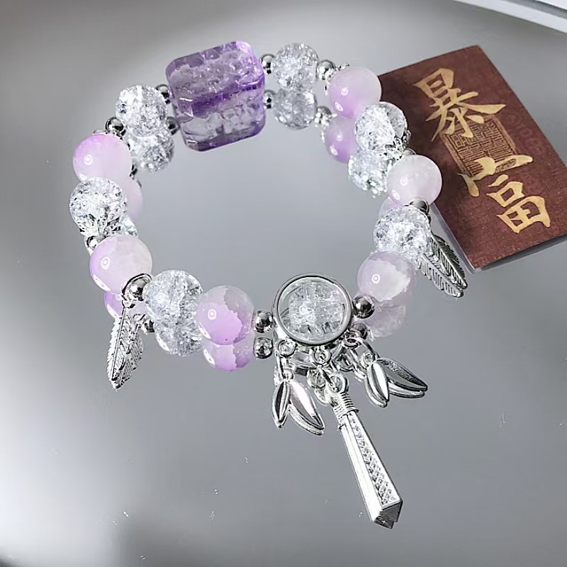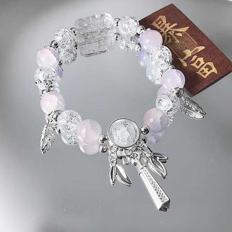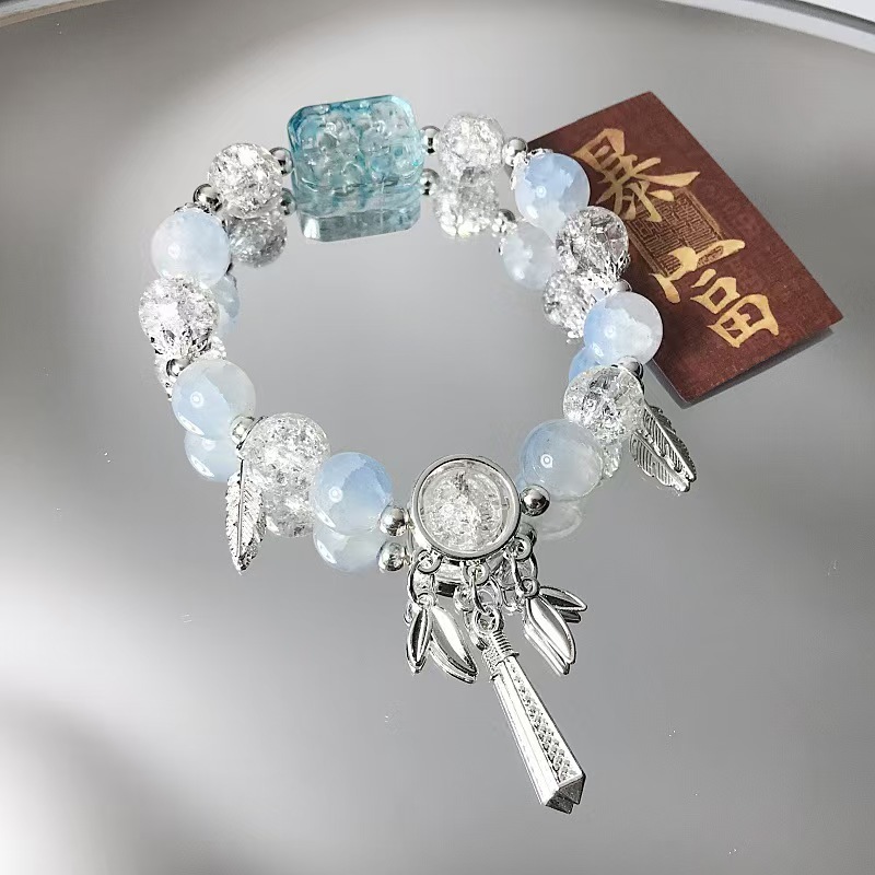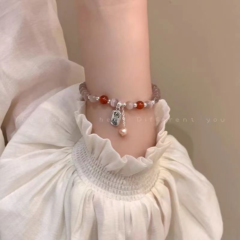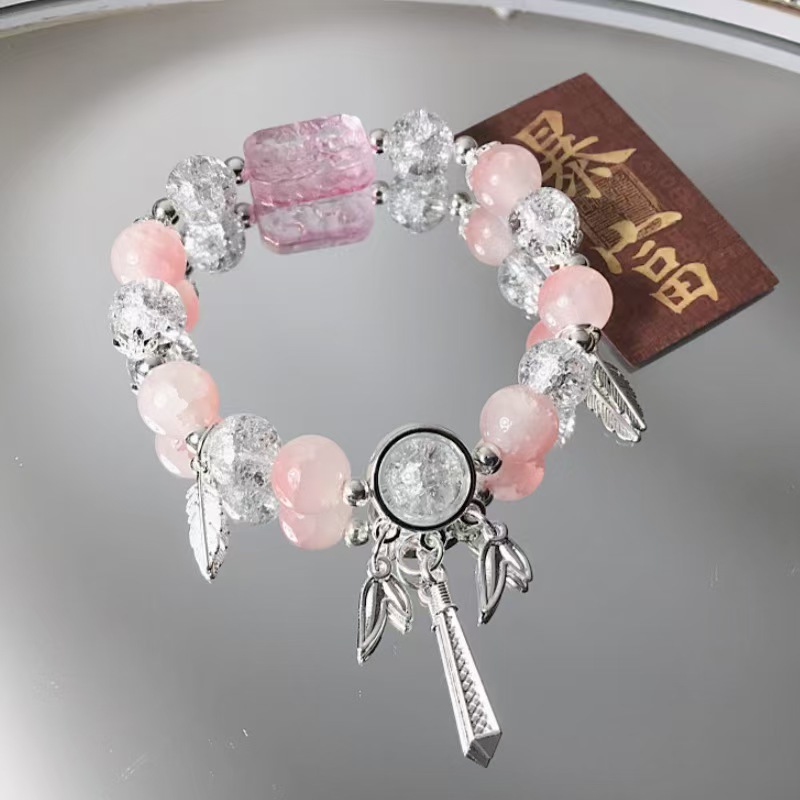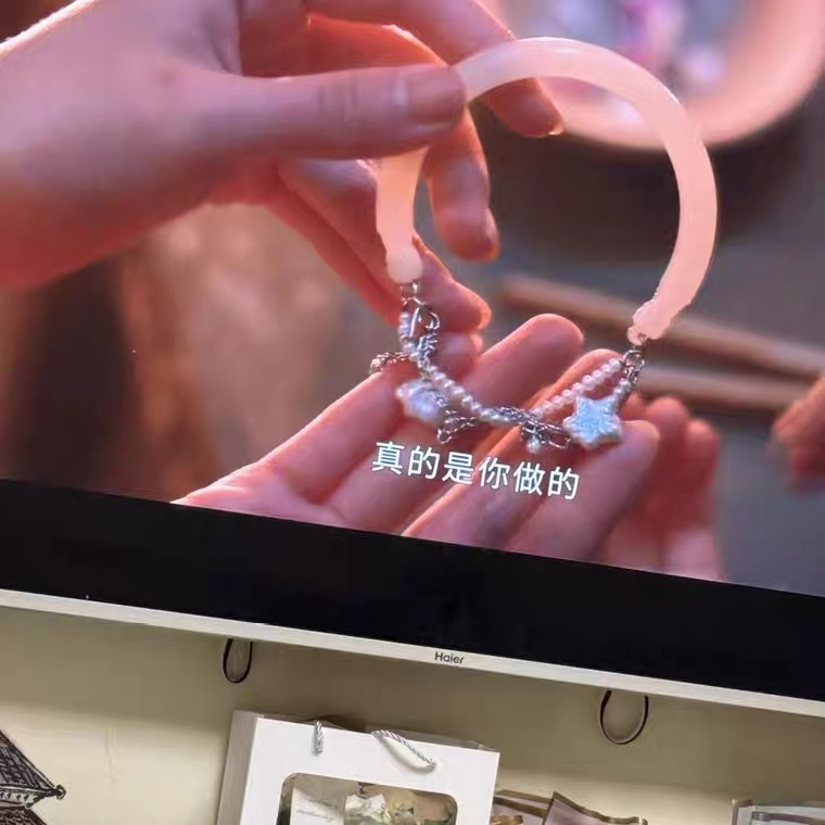水蜜桃蝴蝶结手链女ins甜美超显白桃粉蝴蝶串珠手串学生闺蜜礼物