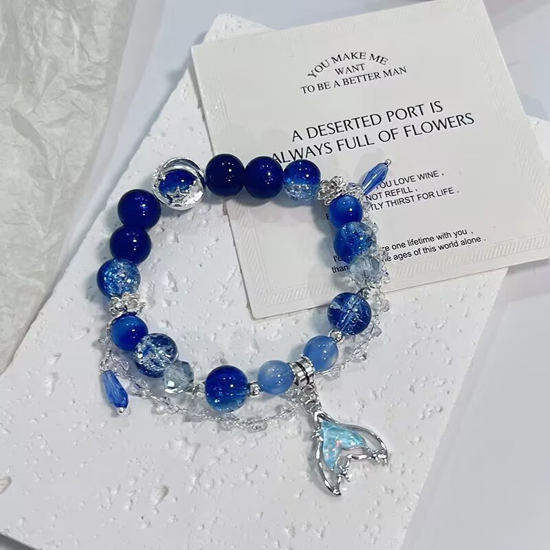 2025年新款恋与深空 周边深蓝色的海和鱼尾流苏小众设计百搭手串