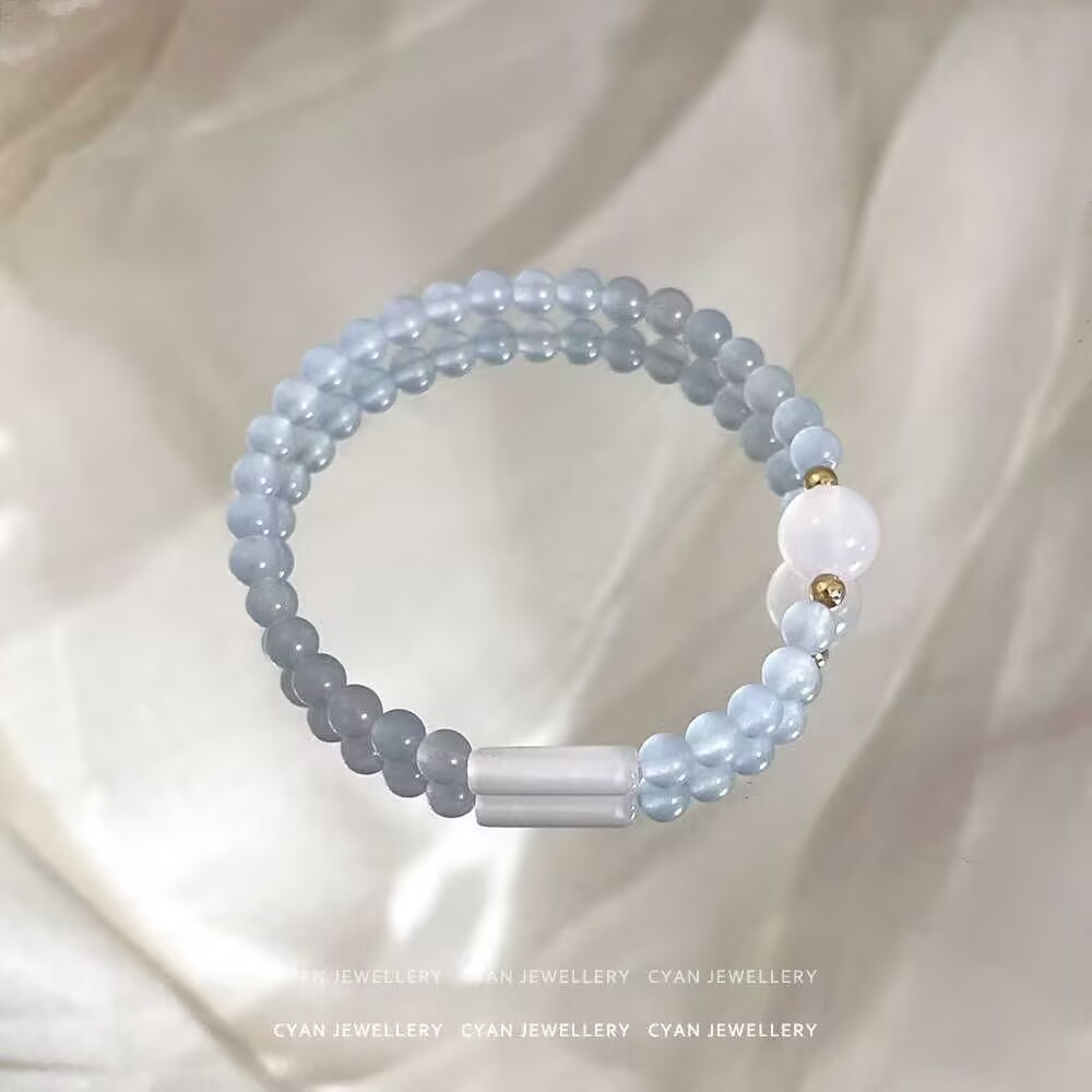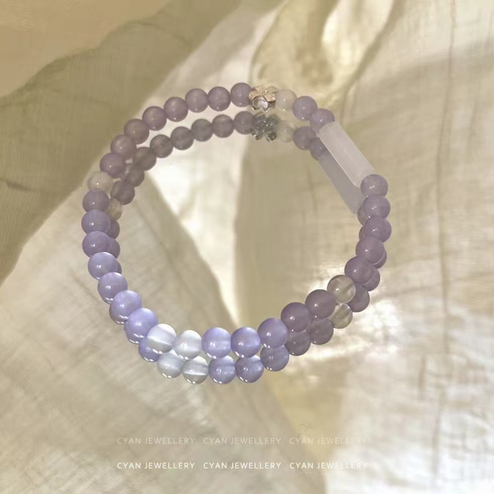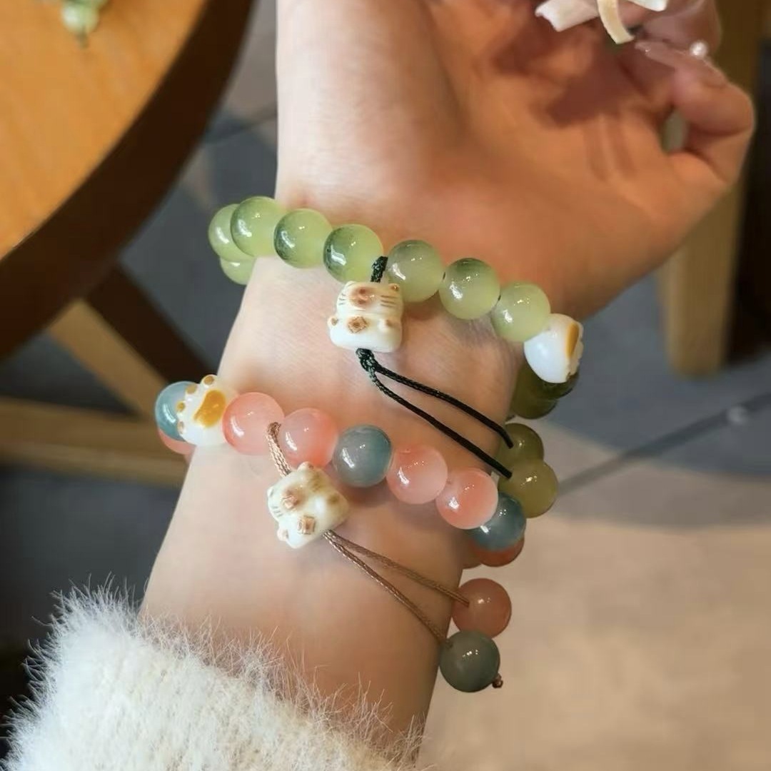 新中式蓝色小猫串珠手链萌趣可爱KT猫五彩编织绳少女心手饰甜美