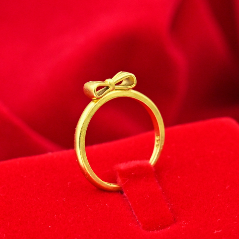 ins风韩版蝴蝶结开口沙金戒指抖音同款在逃公主久不掉色仿金饰品