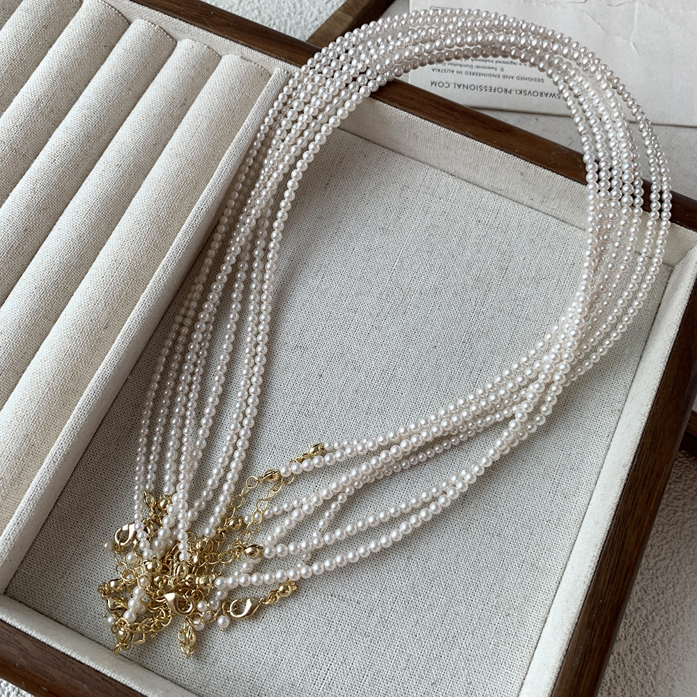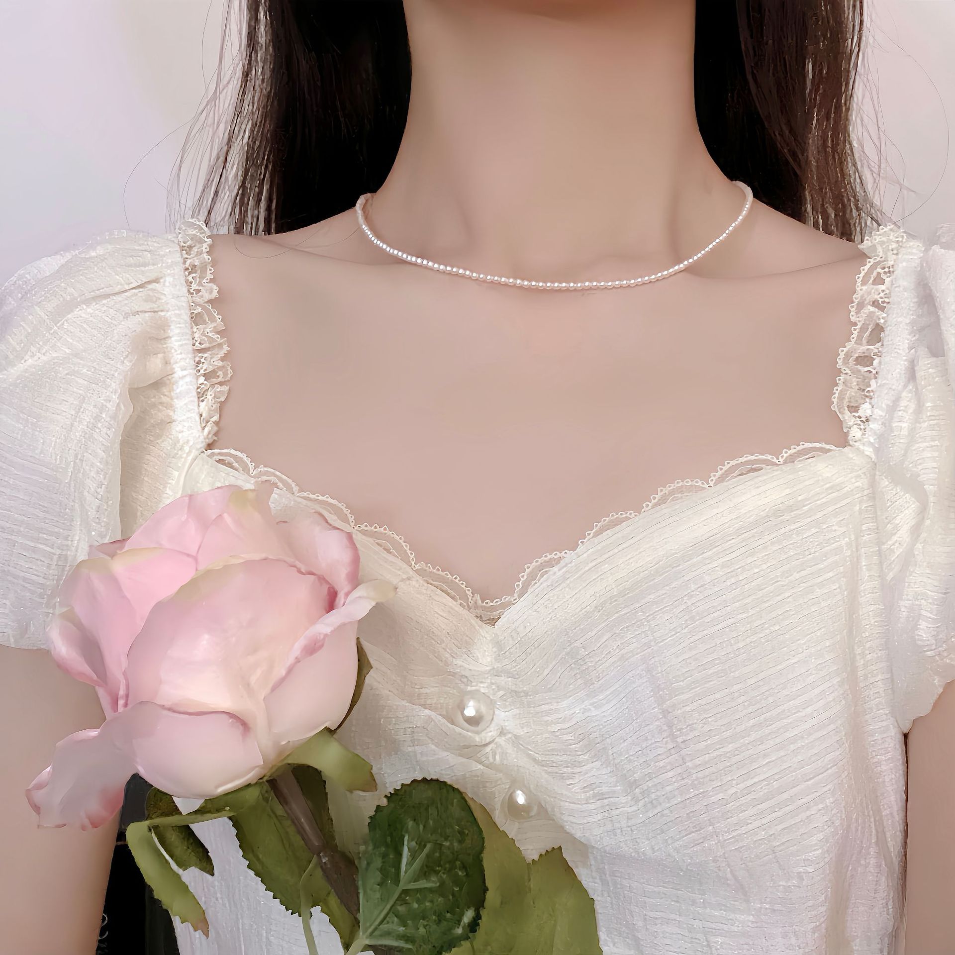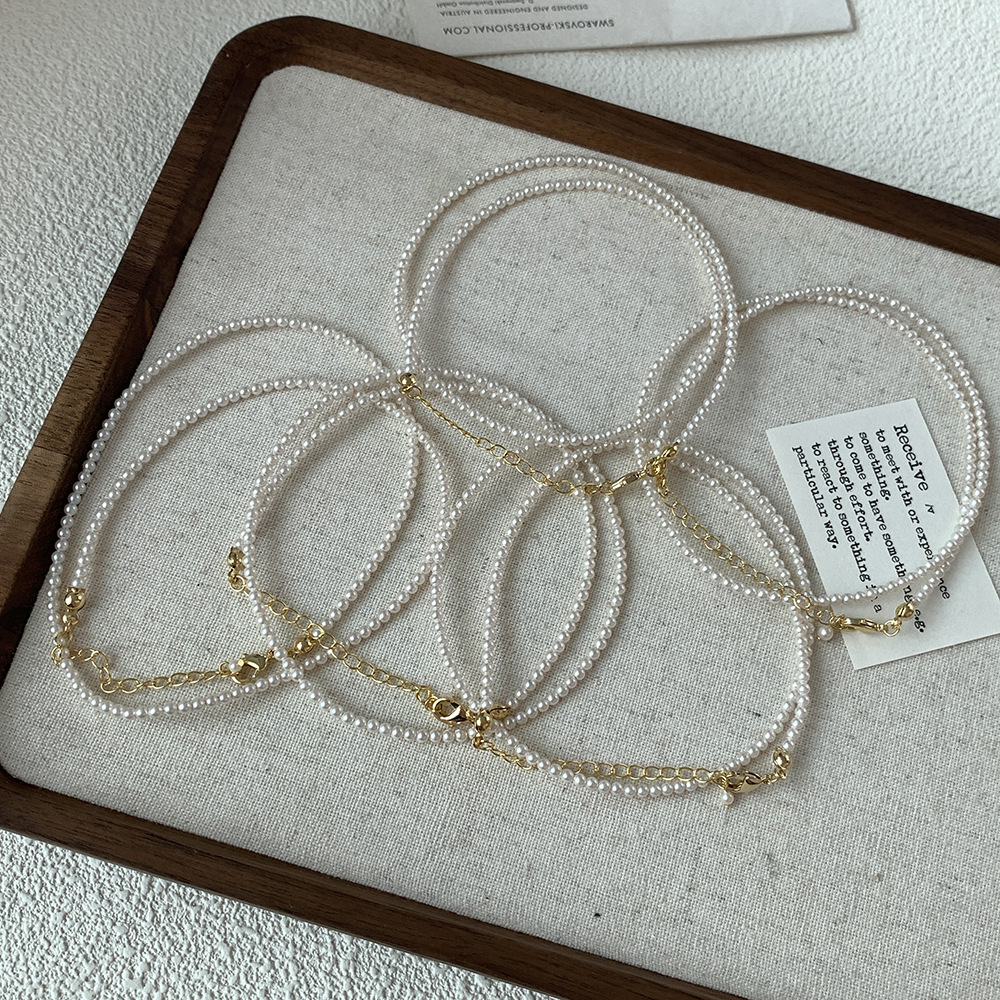 2mm极细施家珍珠项链轻奢小众感高级女叠戴锁骨链颈链纯欲辣妹风