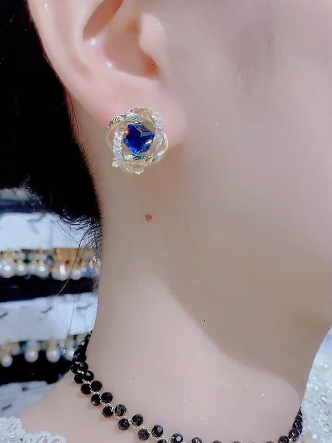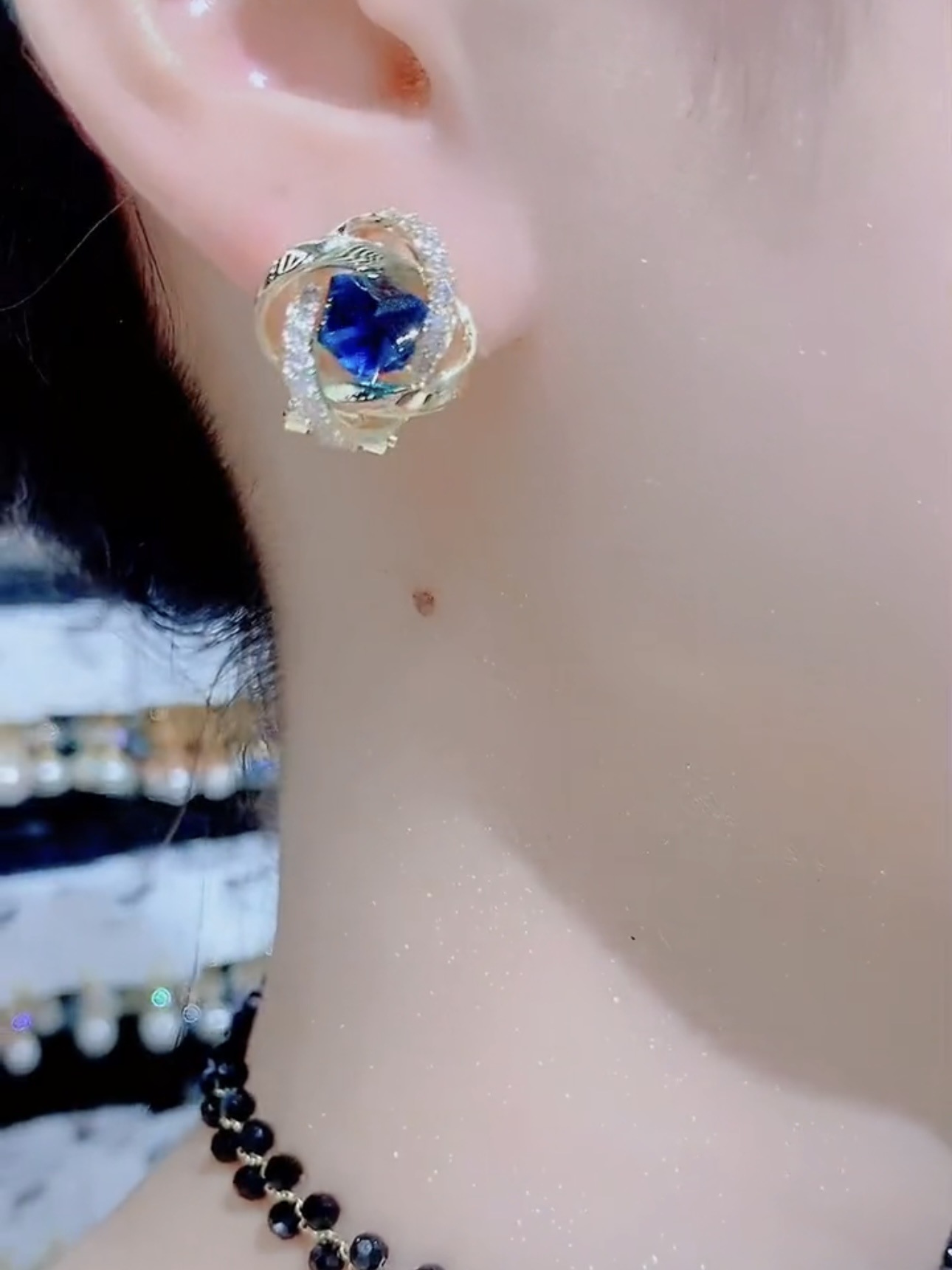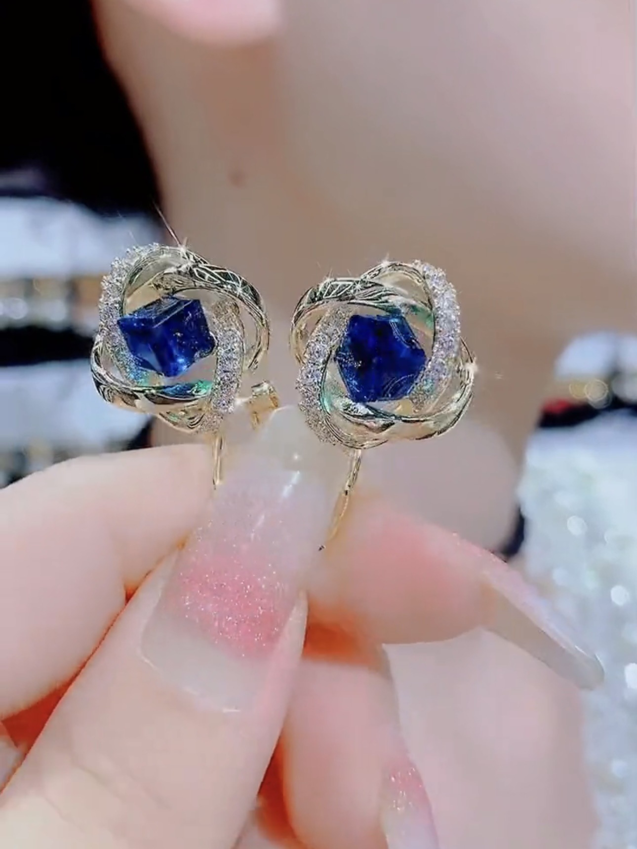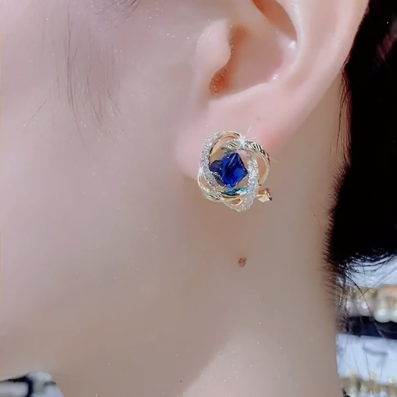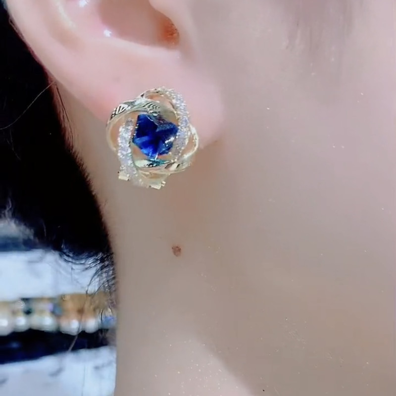 2025年新款潮轻奢高级感缠绕满钻蓝色耳钉时尚网红大脸显瘦耳环女