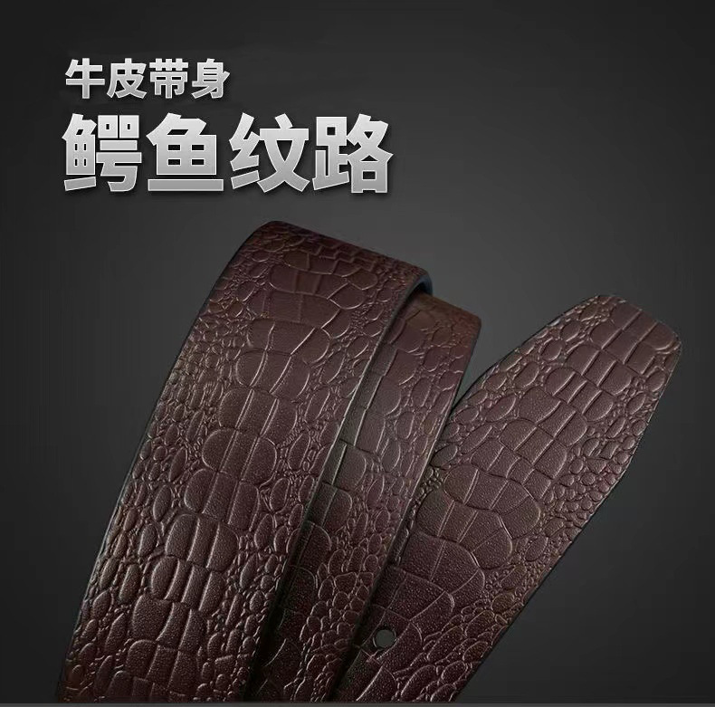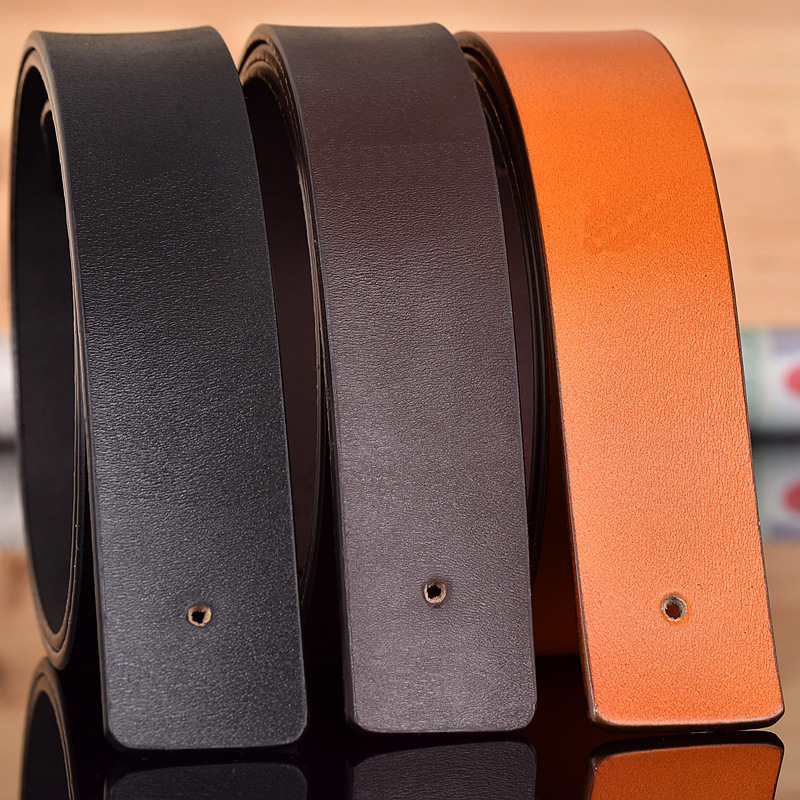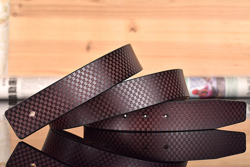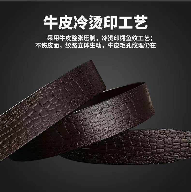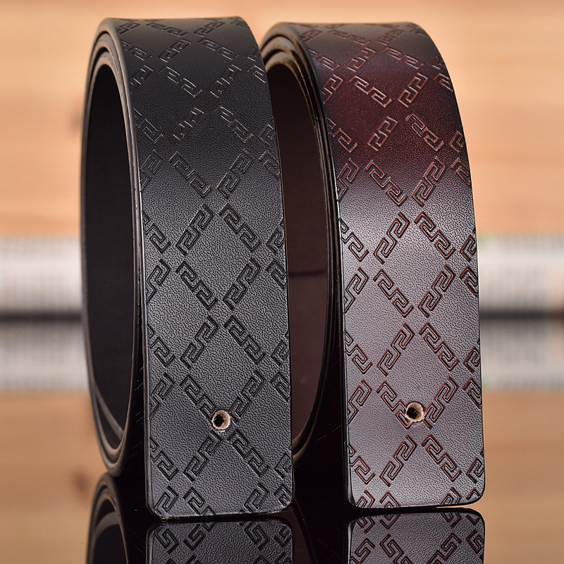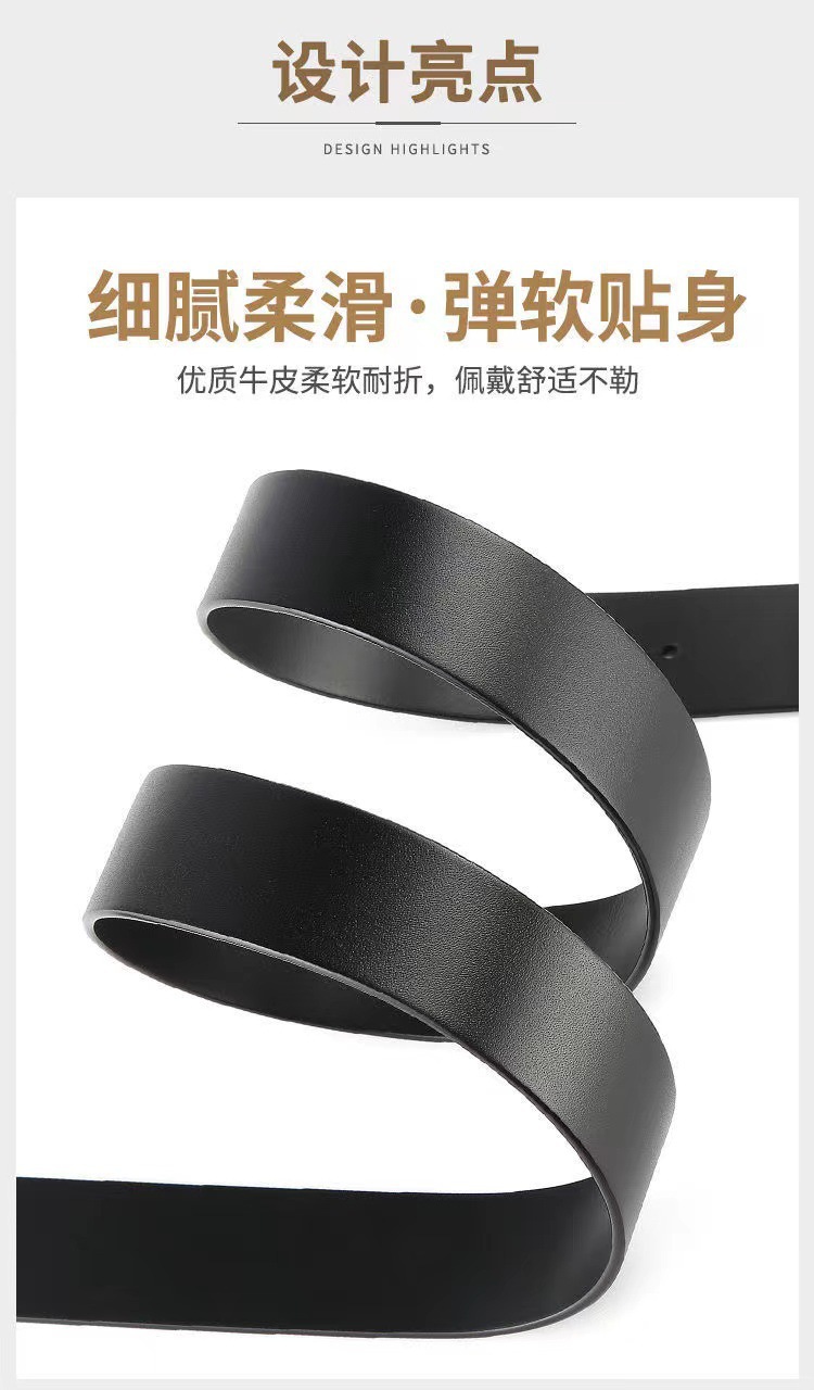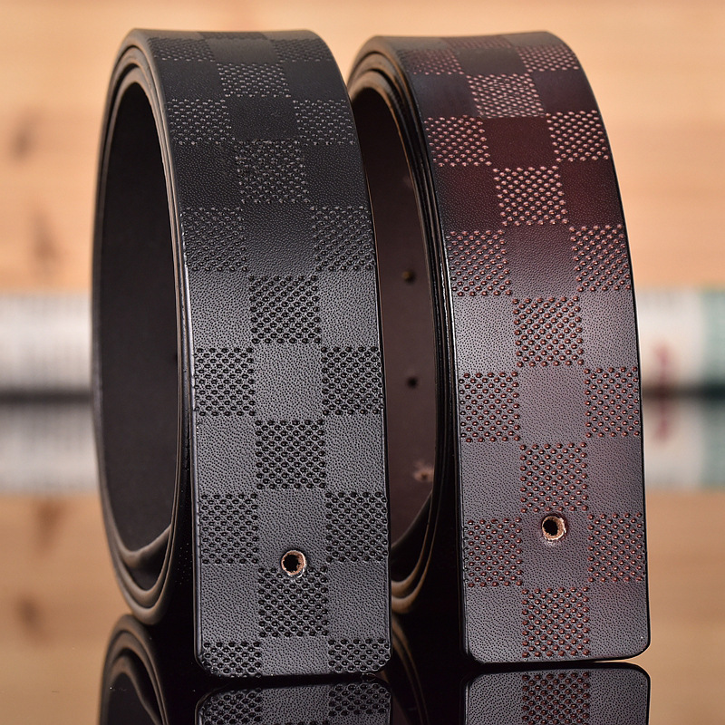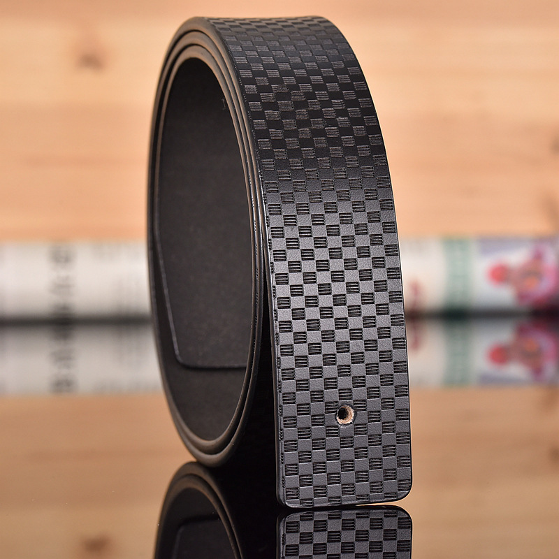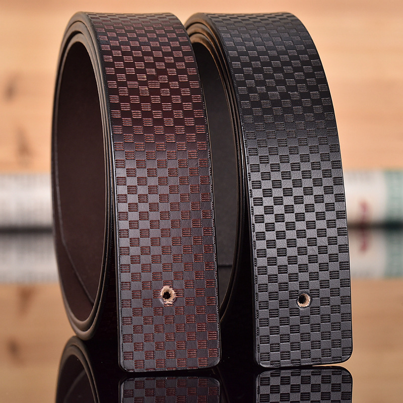 无头腰带牛皮男格纹真皮皮带不带头男士美杜莎青年无扣裤带平滑扣
