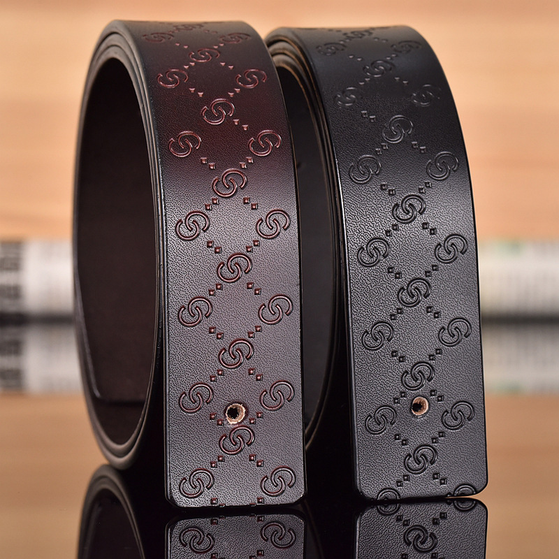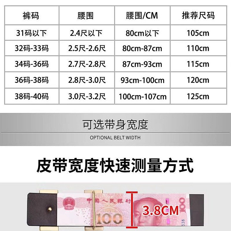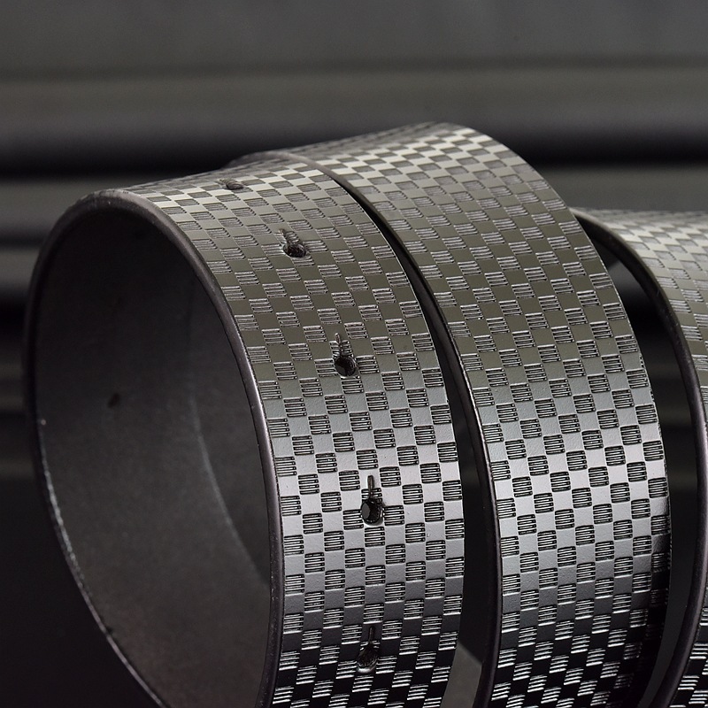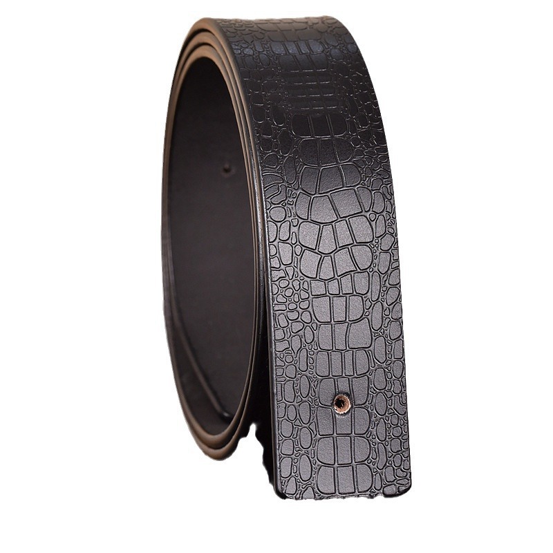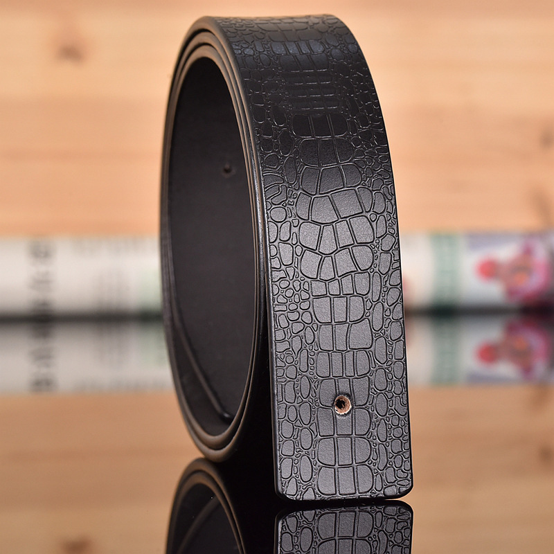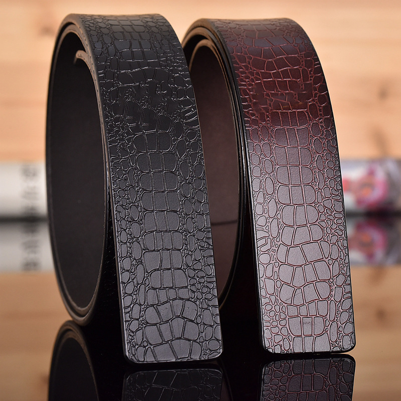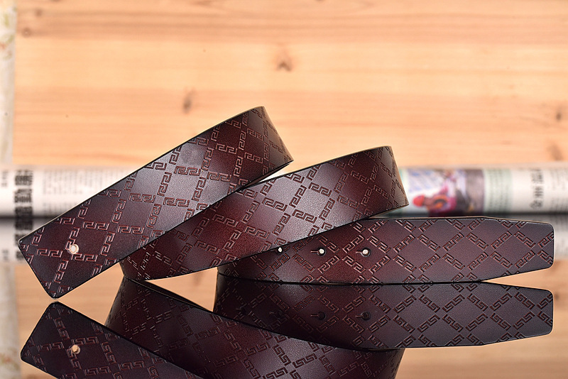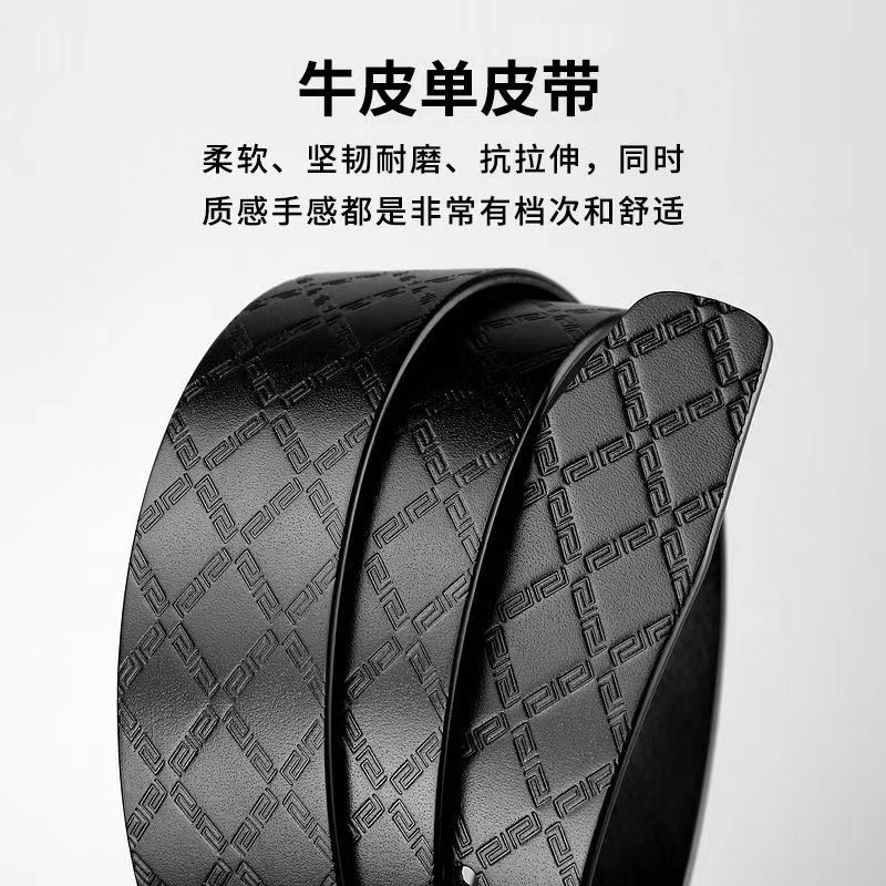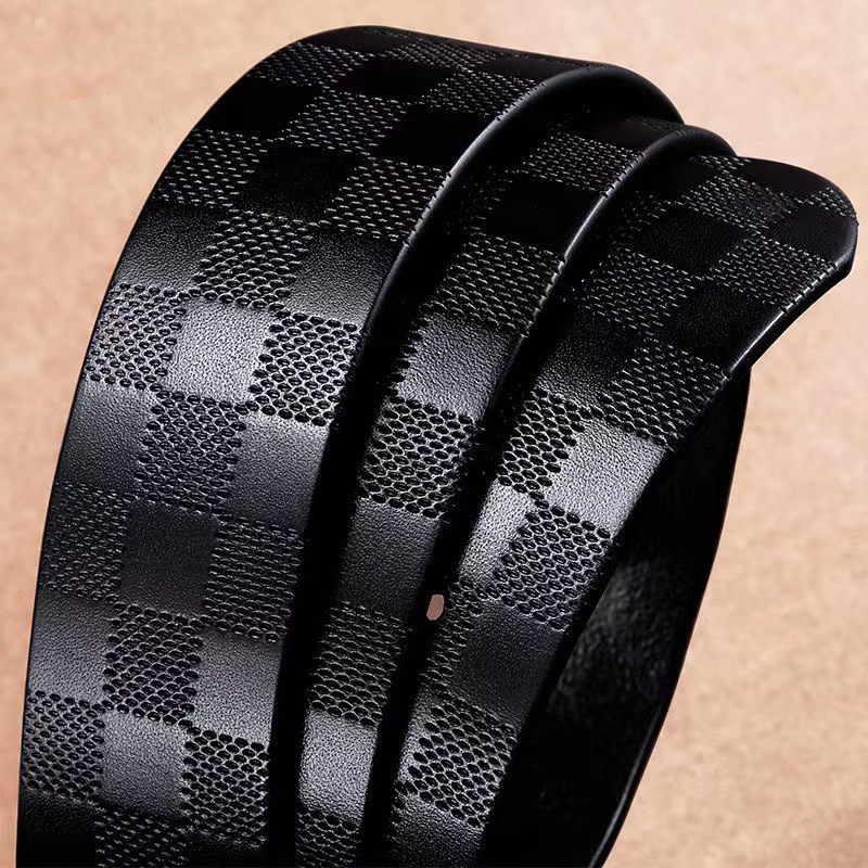 无头腰带牛皮男格纹真皮皮带不带头男士美杜莎青年无扣裤带平滑扣