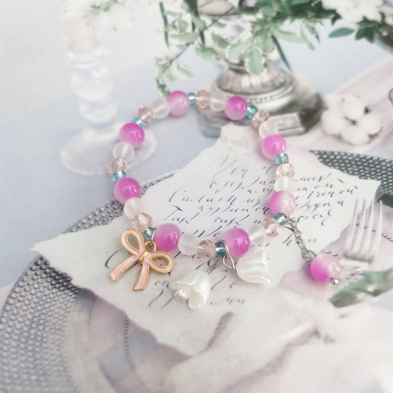 仿猫眼石水晶蝴蝶结手链女ins小众设计灰月光铃铛手串diy手链礼物