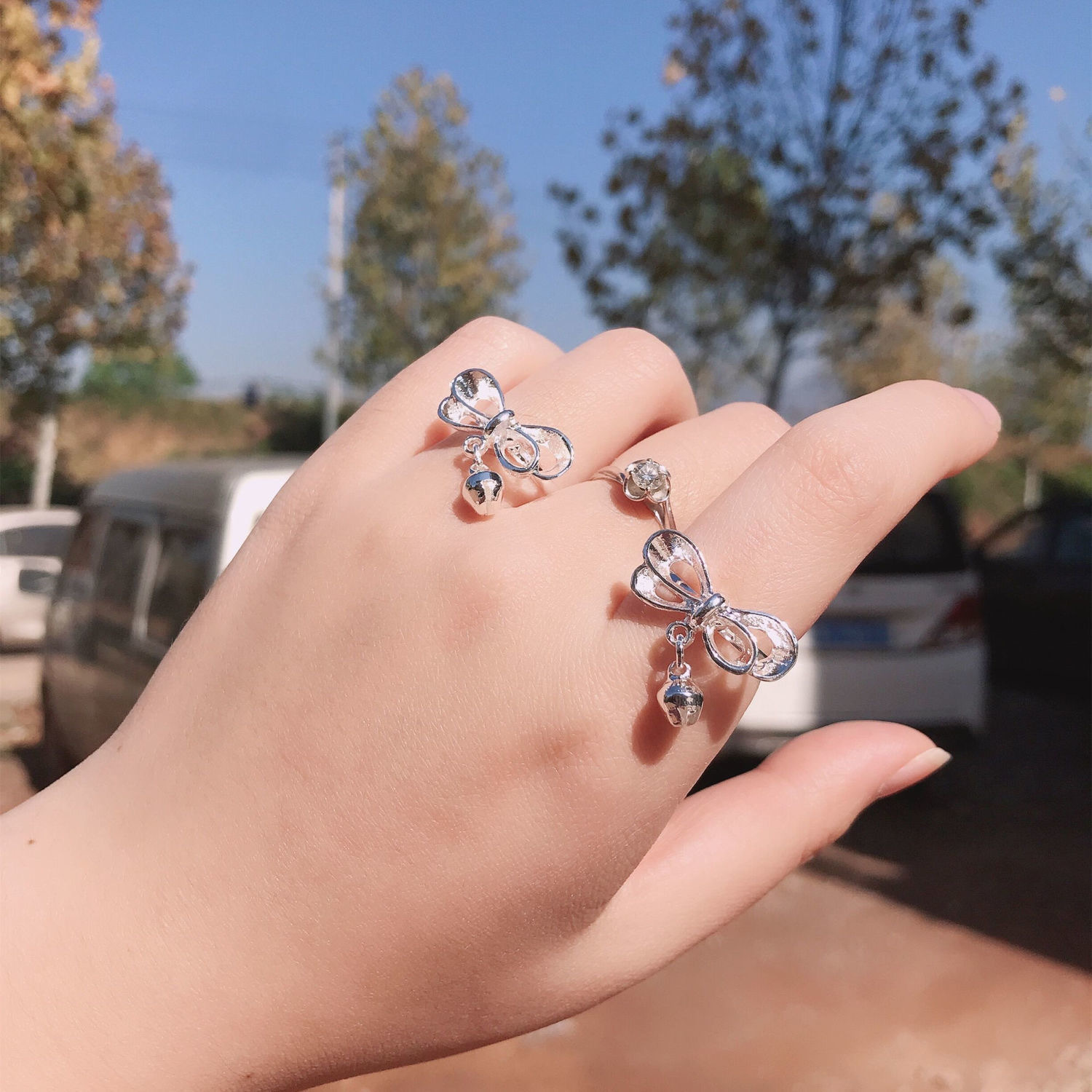 学生气质指环ins可调节尾戒抖音蝴蝶结铃铛戒指拼多多爆款戒指