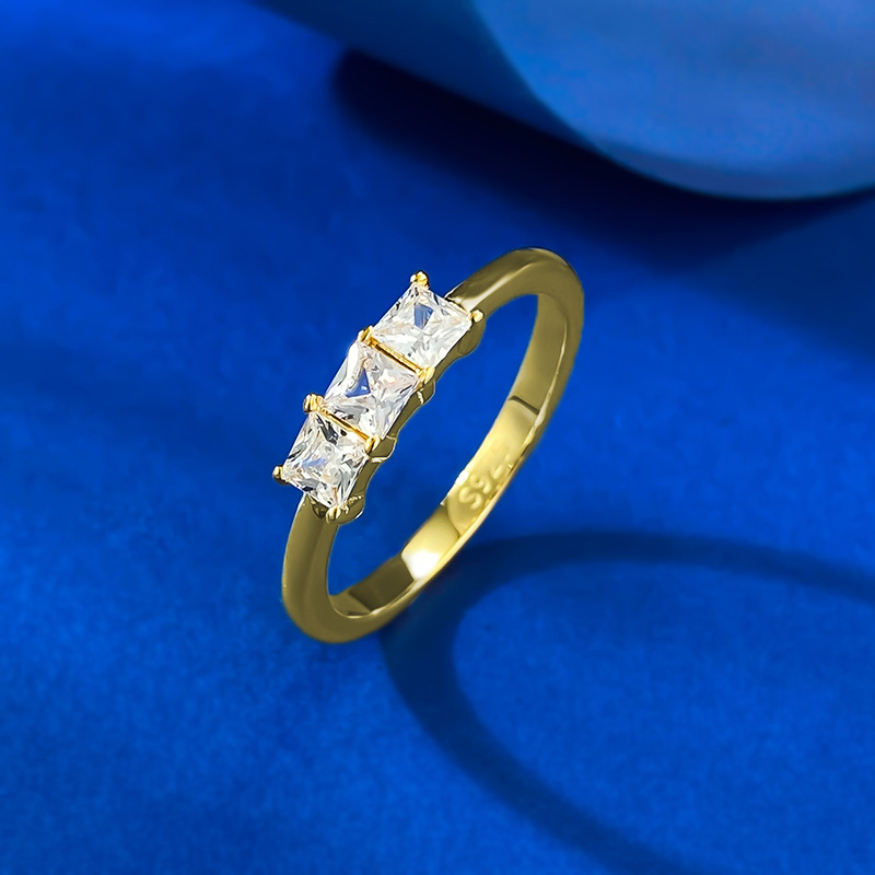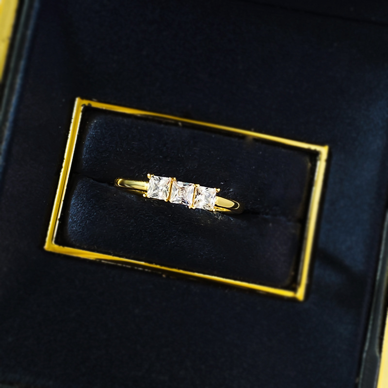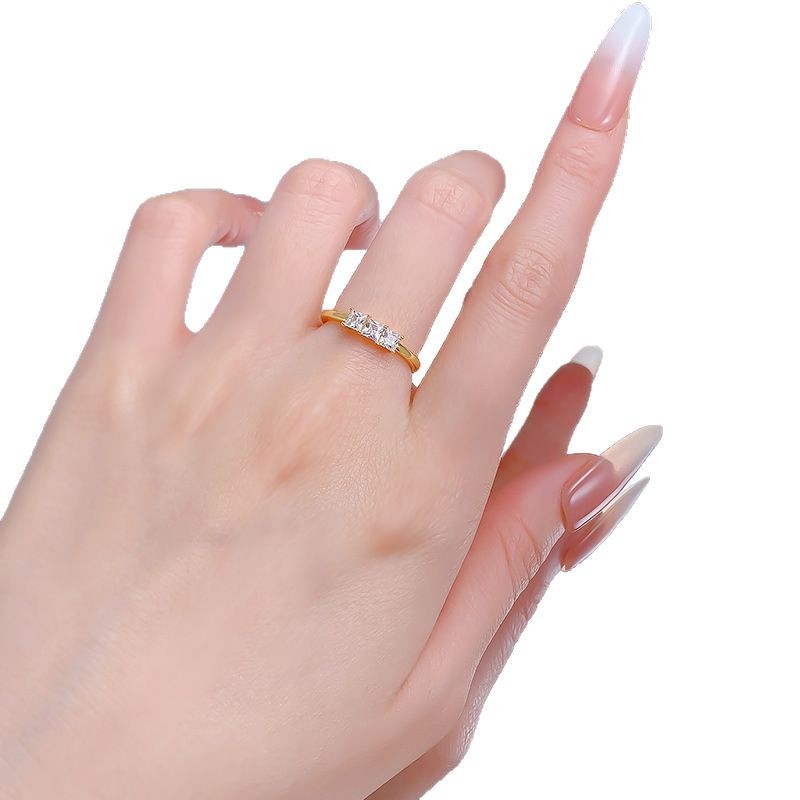 慕景珠宝S925银戒指女轻奢小众3mm三石排钻款戒指一件代发直播
