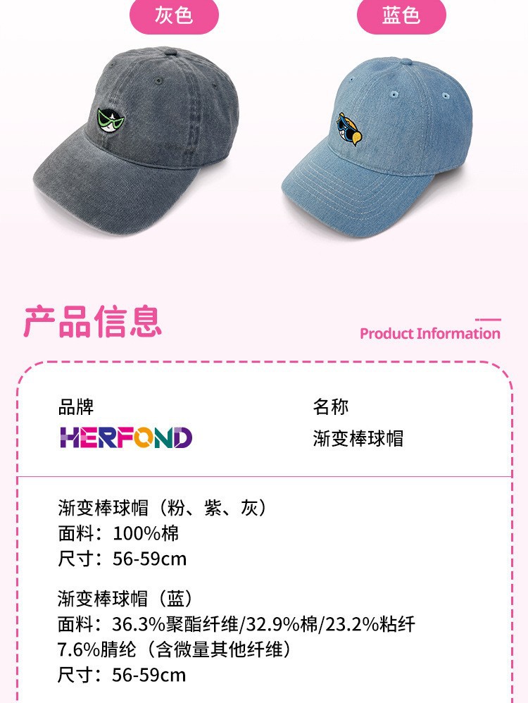 正版飞天小女警渐变棒球帽防晒遮阳夏季鸭舌帽高级太阳帽男女帽子