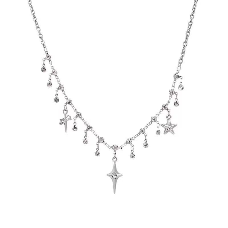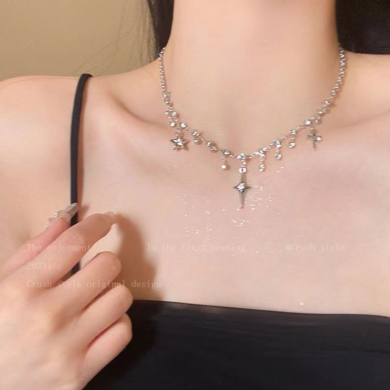 氛围感十字架流苏项链~bling超闪小众设计个性锁骨链