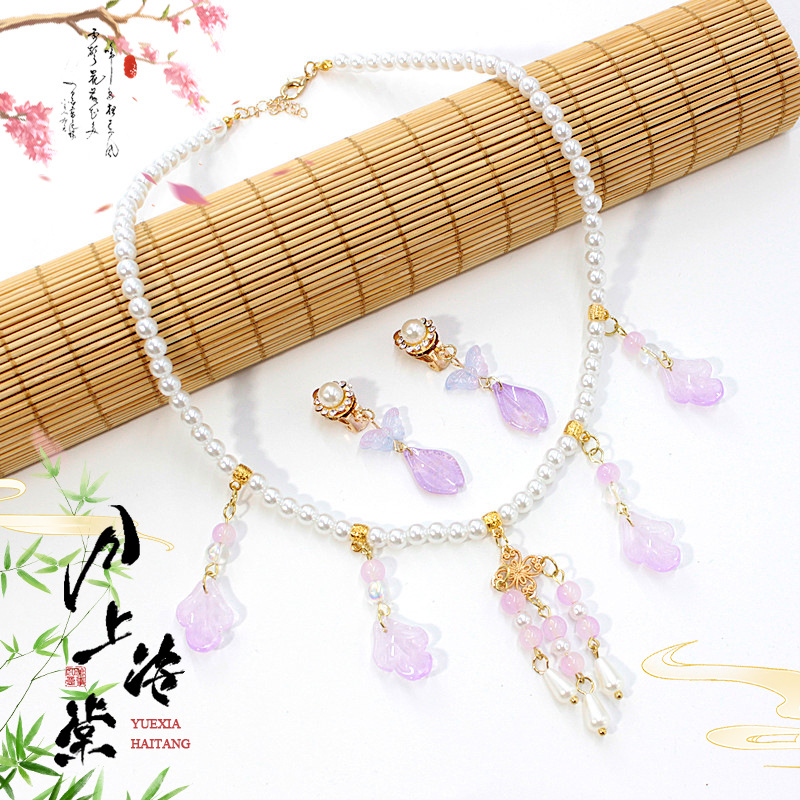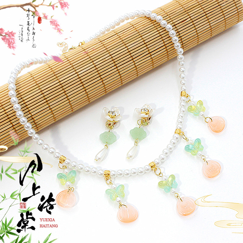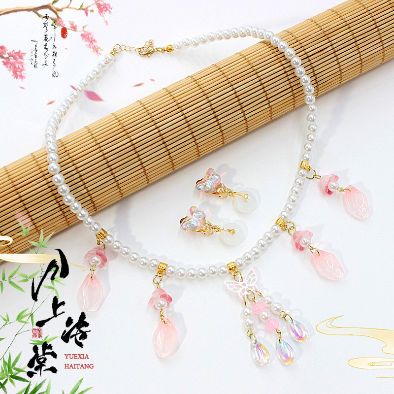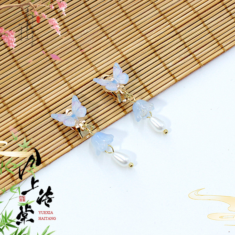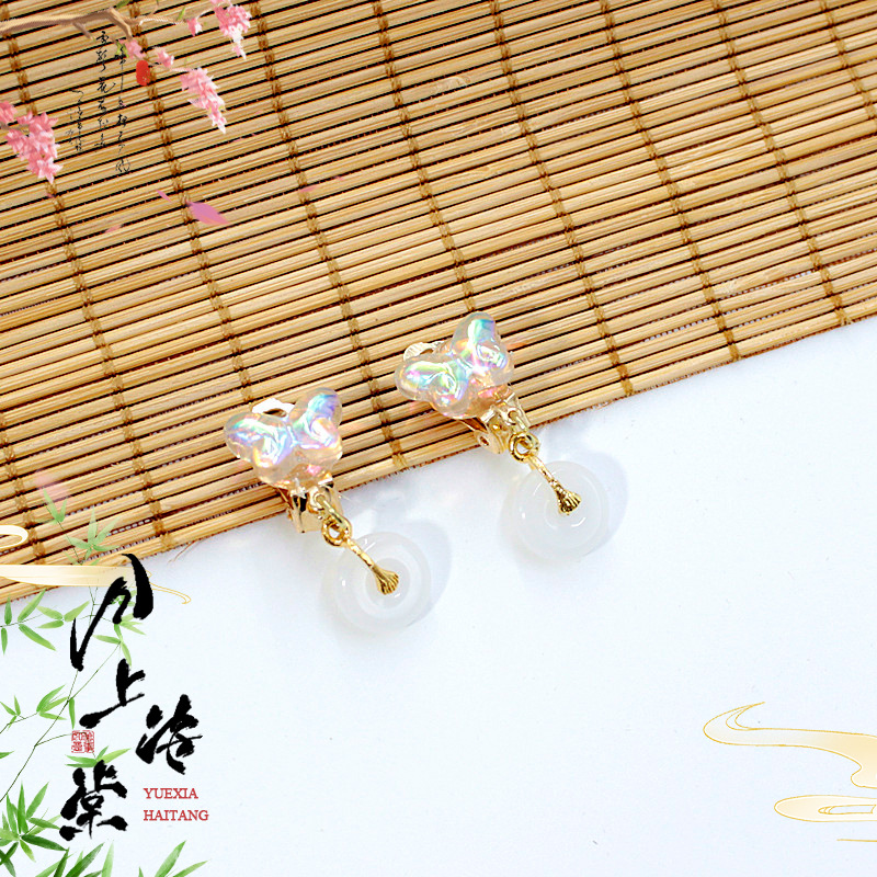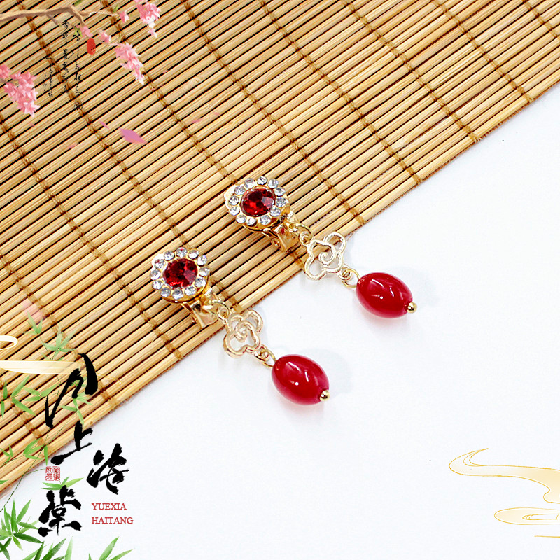 中国古风儿童国风古装无耳洞无痛小女孩耳饰耳环防痛项链耳夹套装