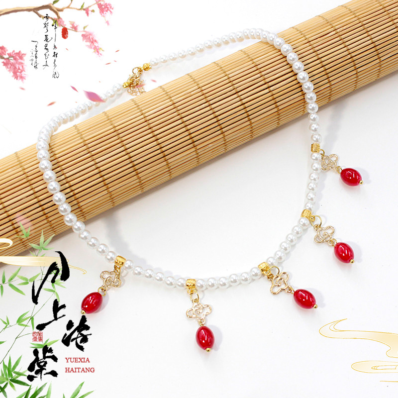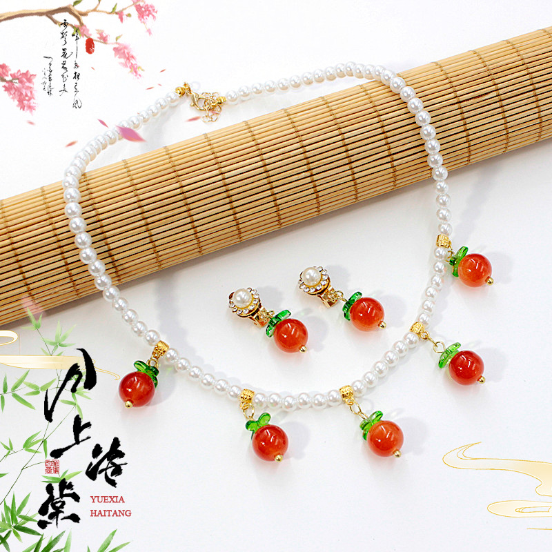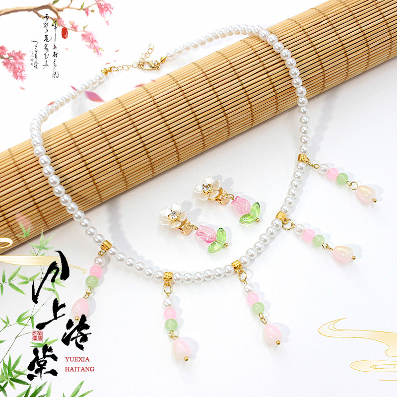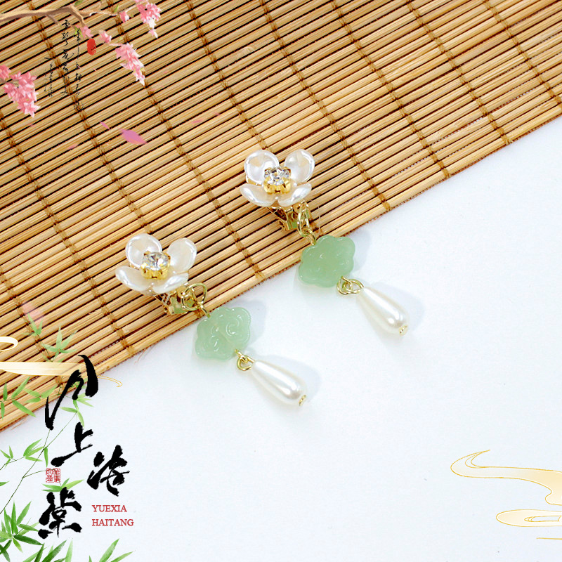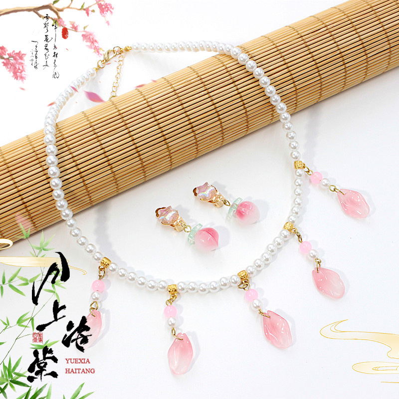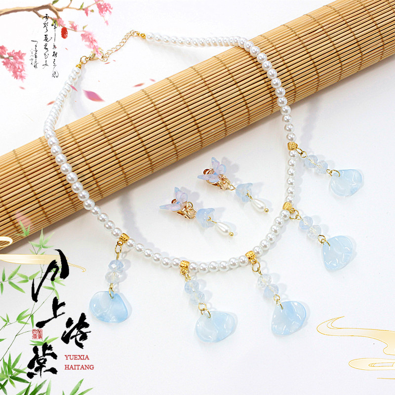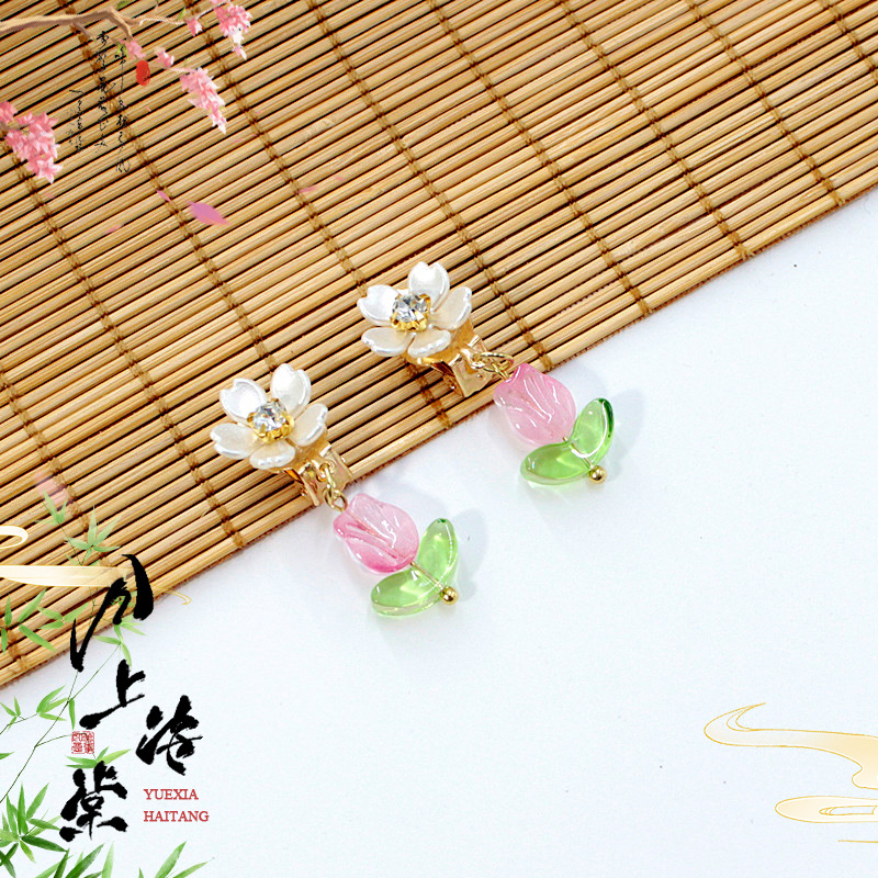 中国古风儿童国风古装无耳洞无痛小女孩耳饰耳环防痛项链耳夹套装