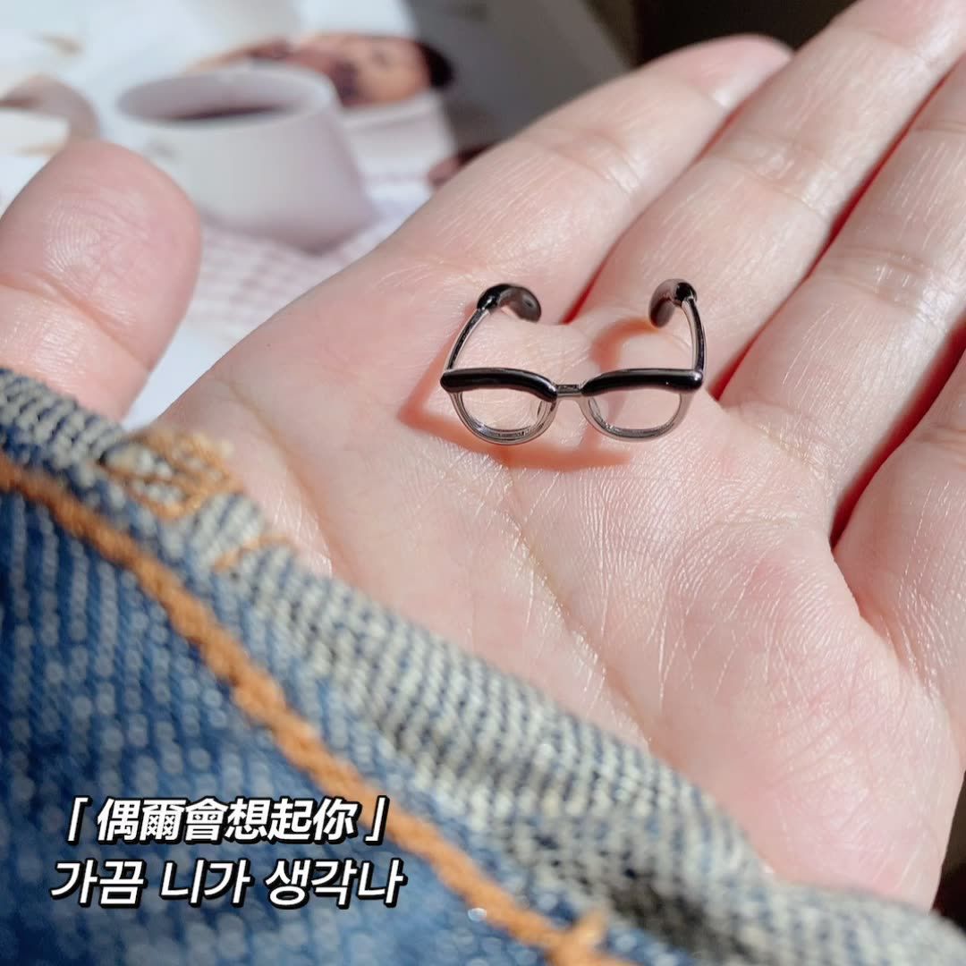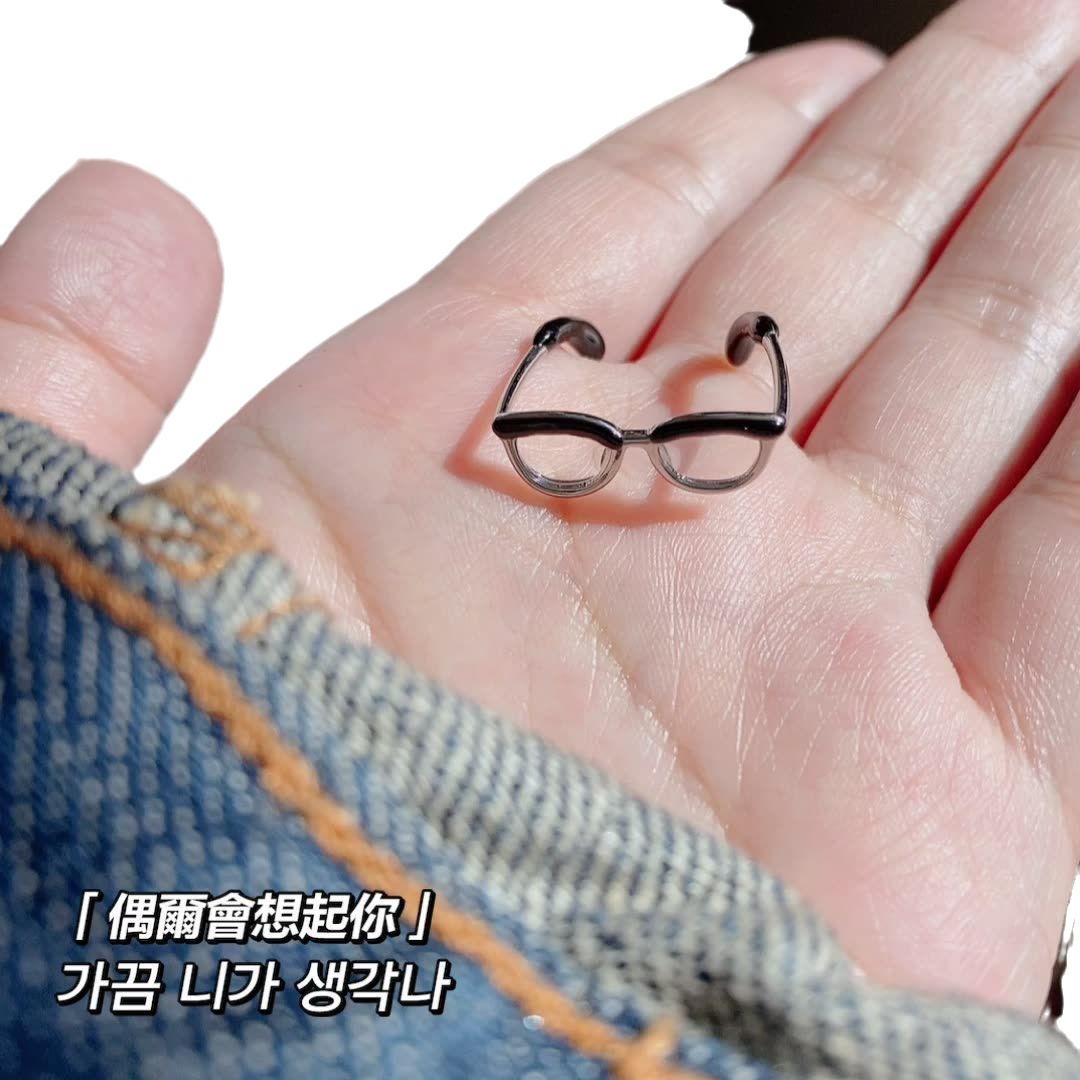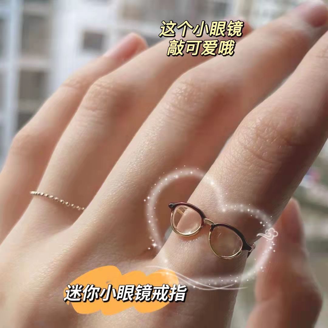学生少女心眼镜仔日韩版森系开口戒指可调节指环指扣尾戒时尚戒指