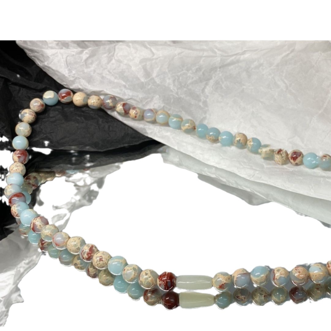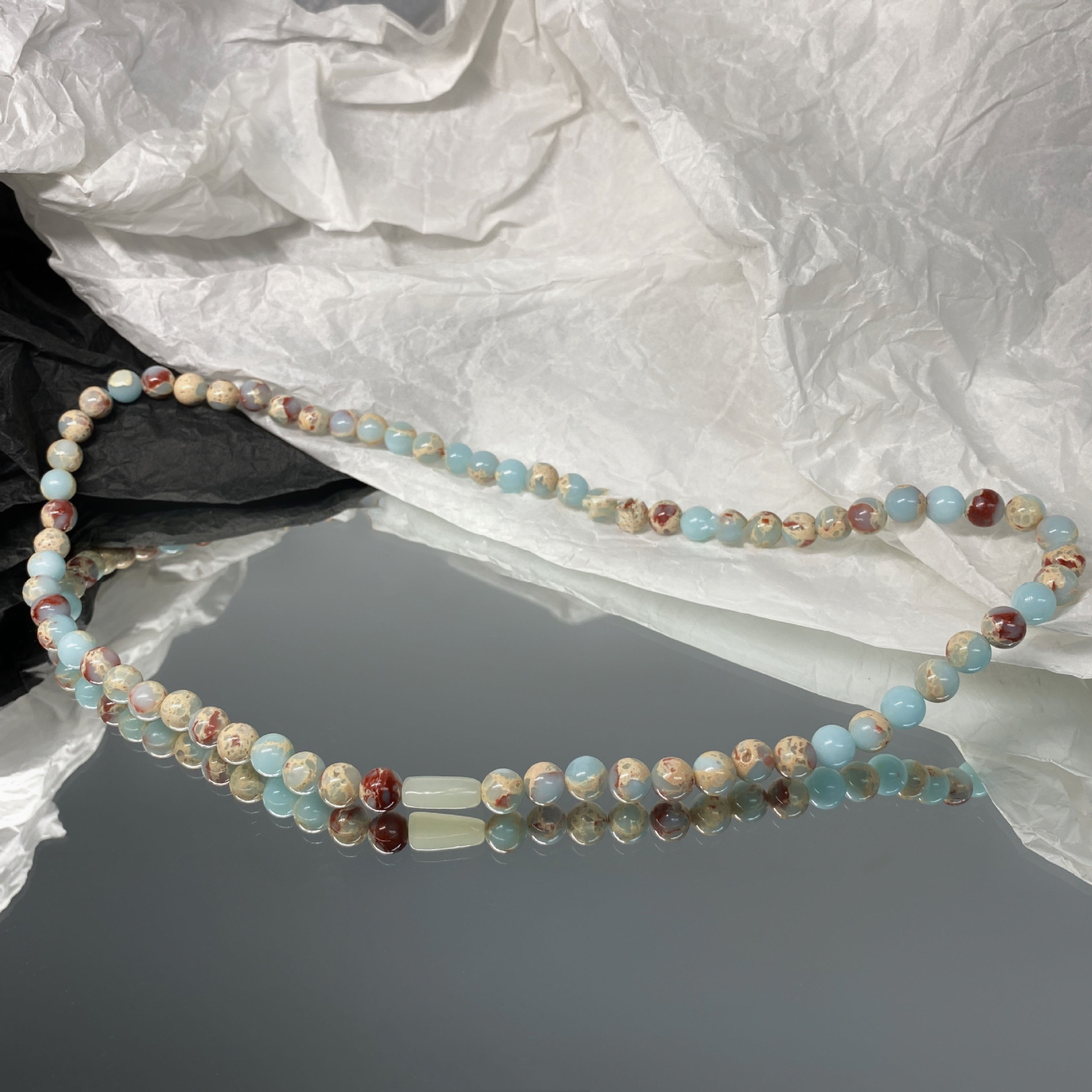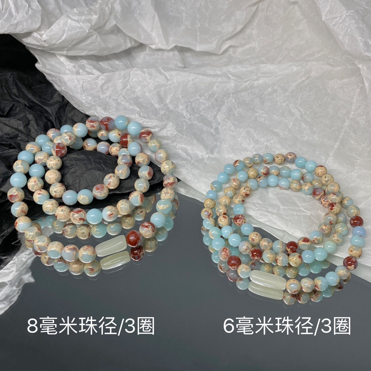 寿山石和田玉手串靛蓝古风三层手链新中式文艺复古国潮多圈手串