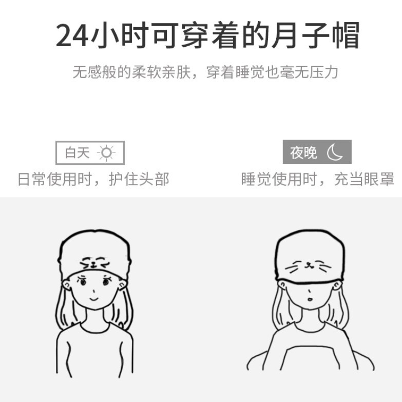 澄湖螺帽新品款纯棉月子帽女产后防风护头保暖包头帽坐月子产妇帽