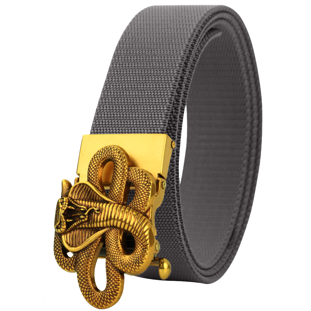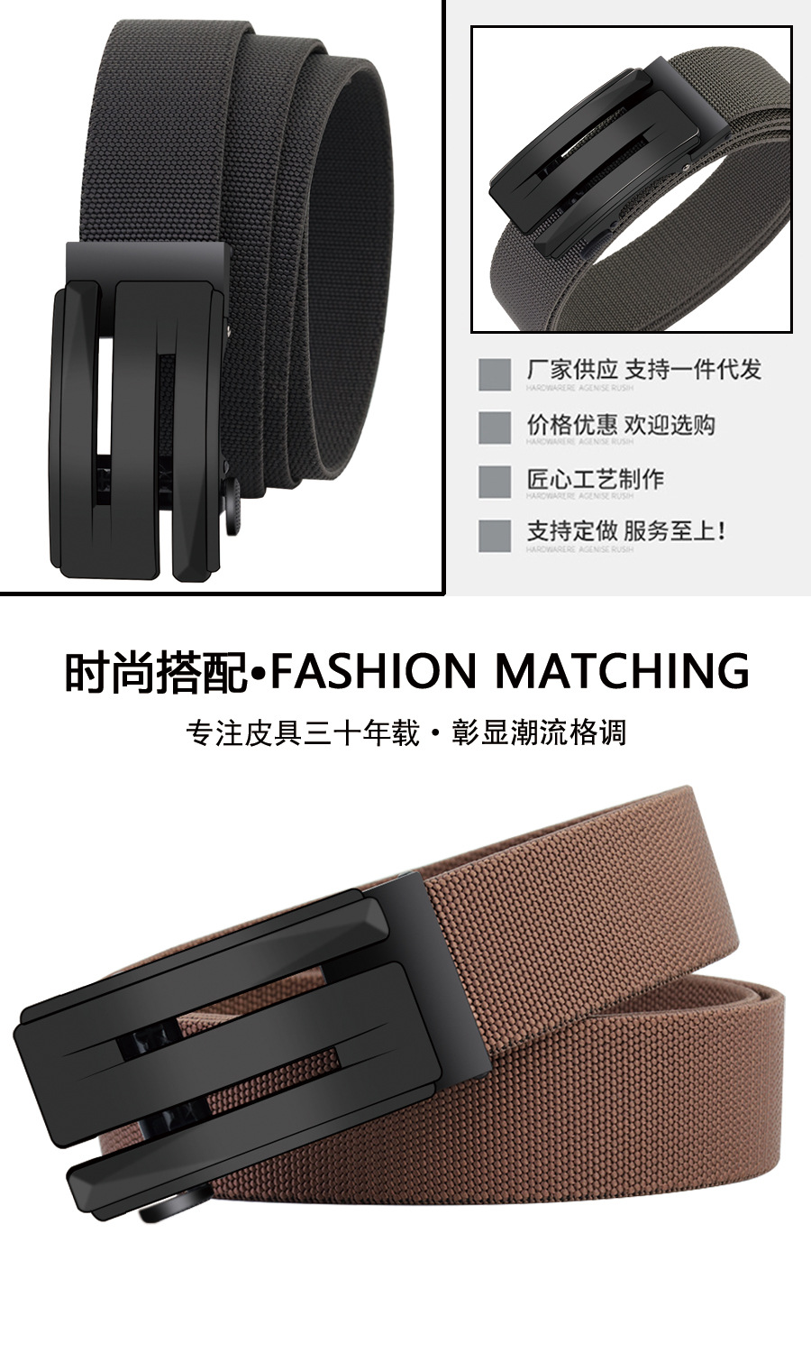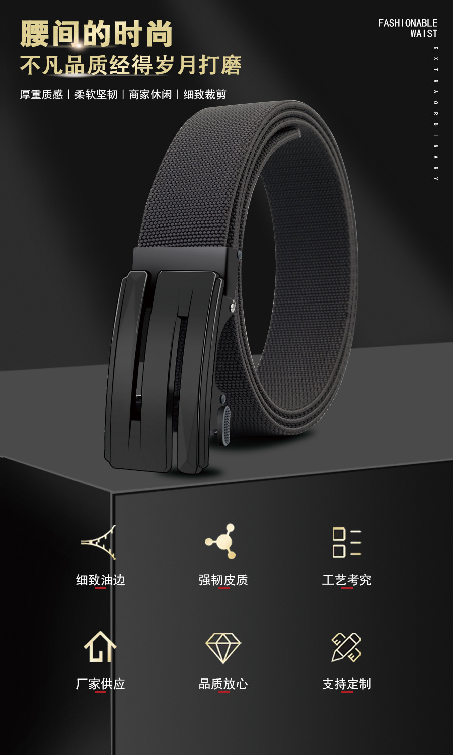 【舒适升级】男士高弹力尼龙自动扣战术腰带中青年休闲帆布皮带