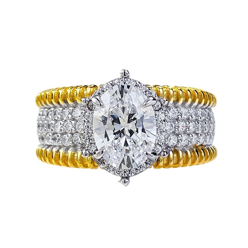 慕景珠宝直播新款S925银镀分金6*8椭圆鎏金生财高级感时尚戒指女