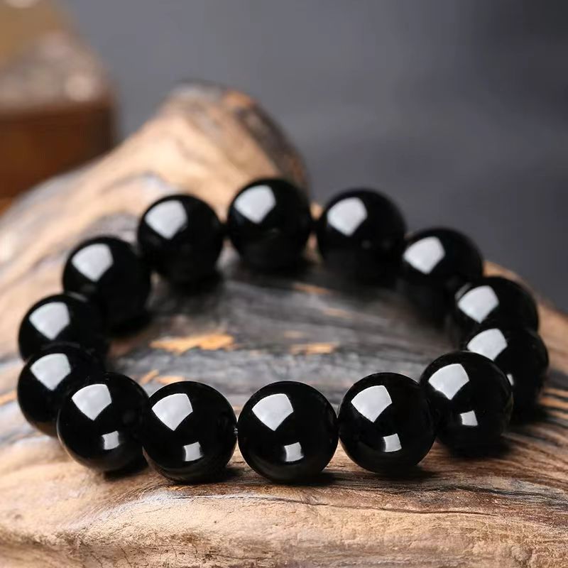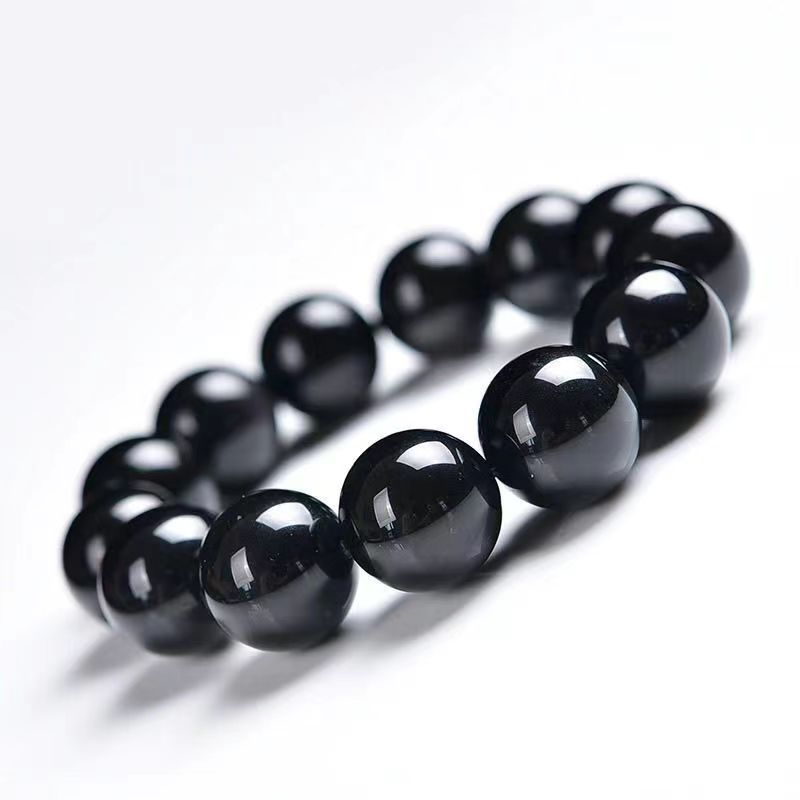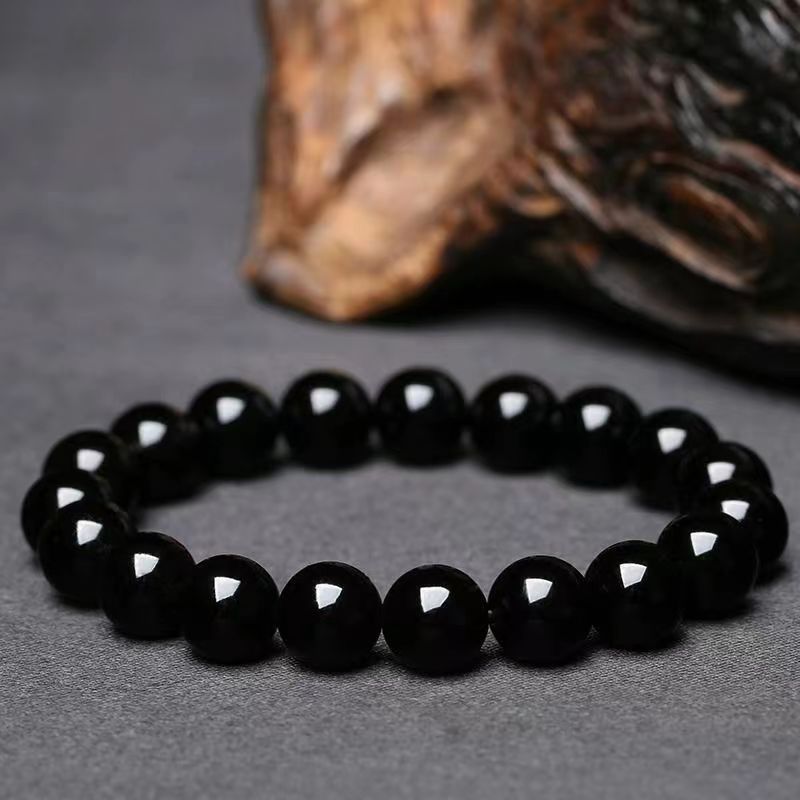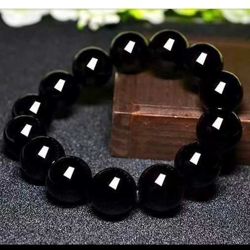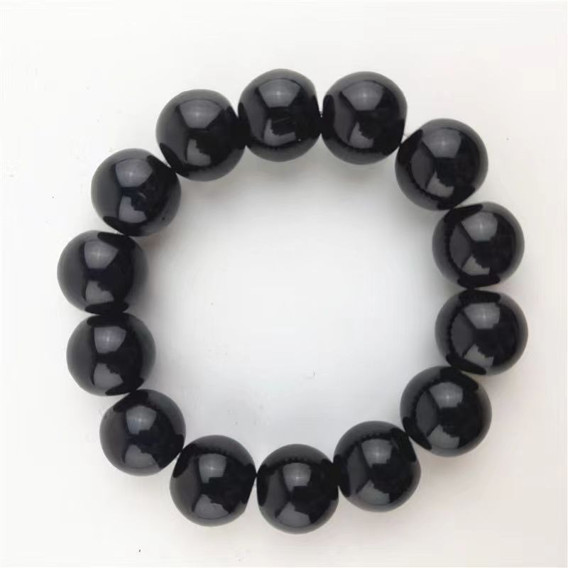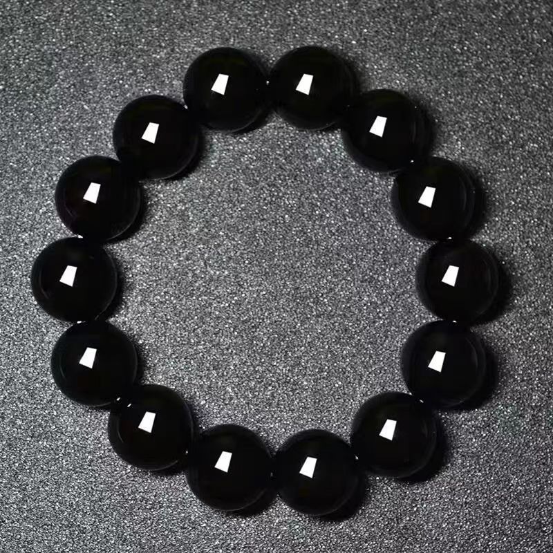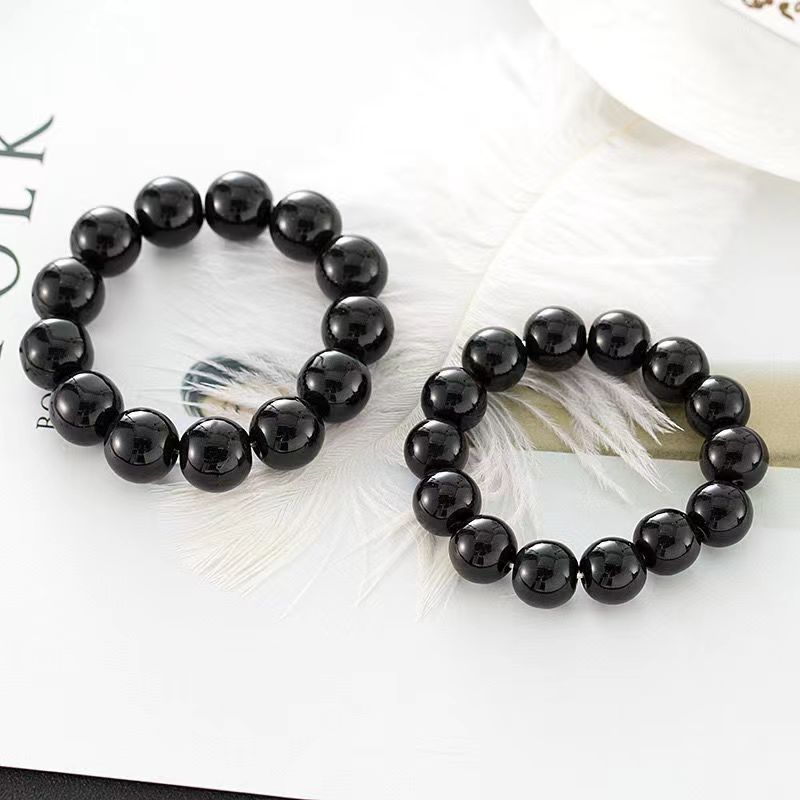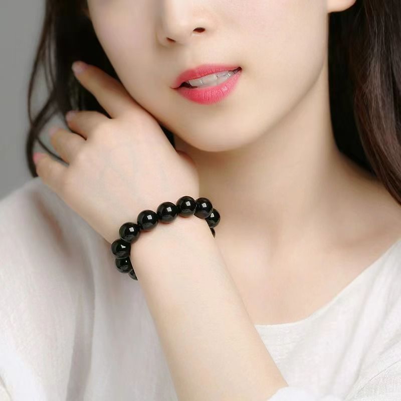黑色简约大气仿玛瑙黑曜石水晶手串链男女款送闺蜜学生日礼物