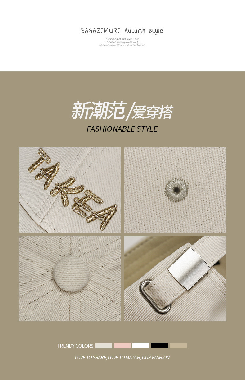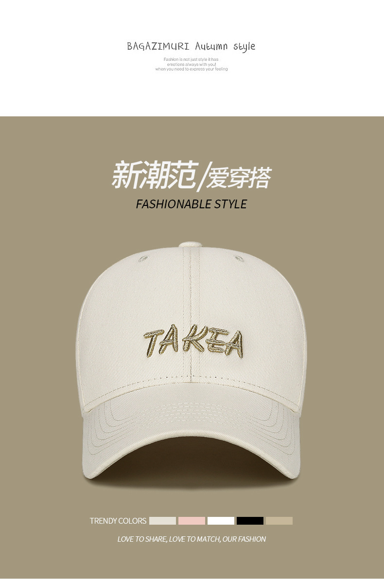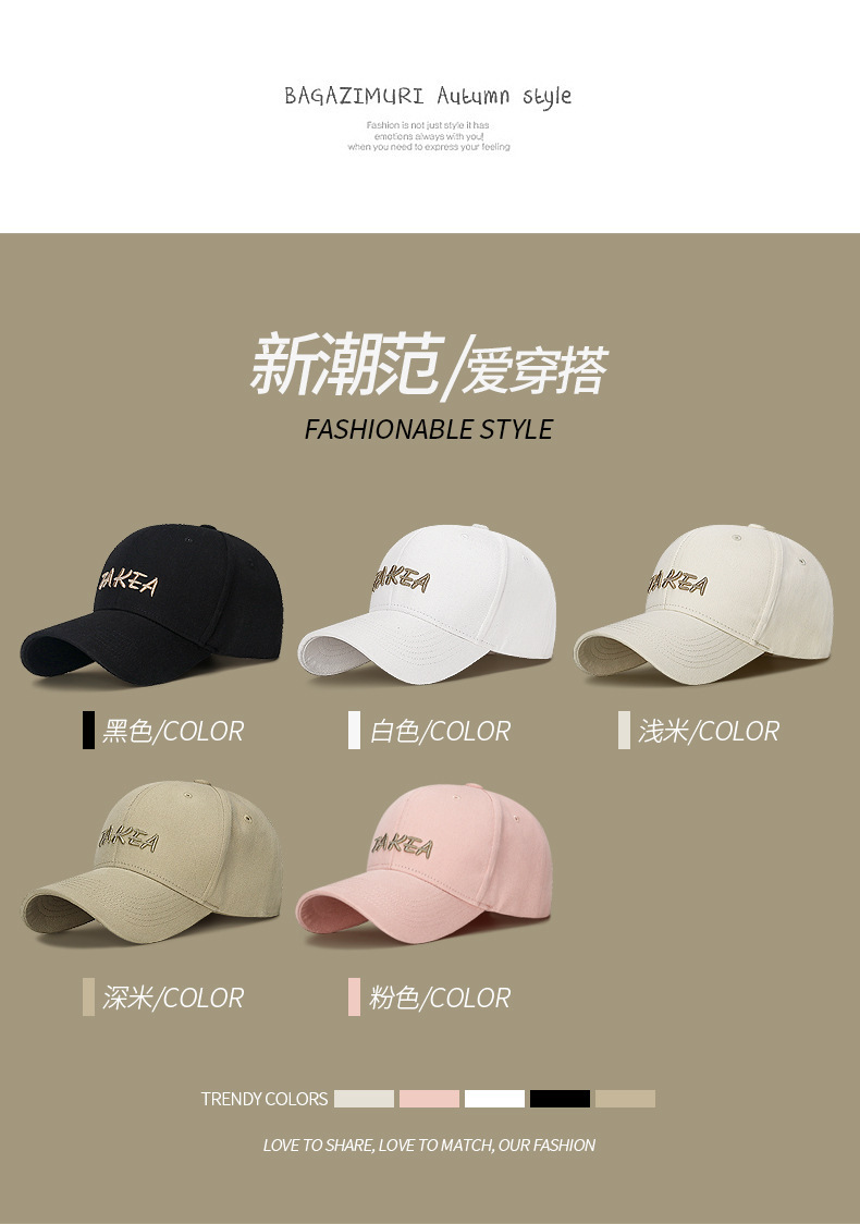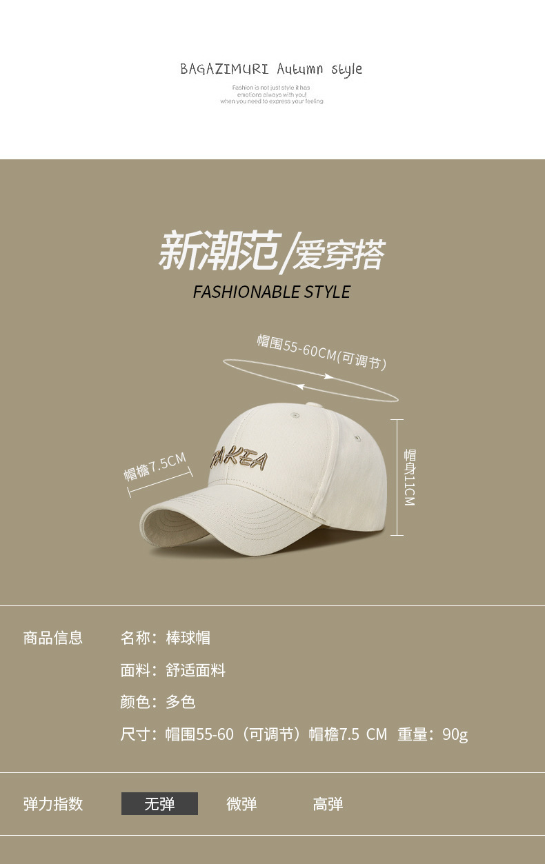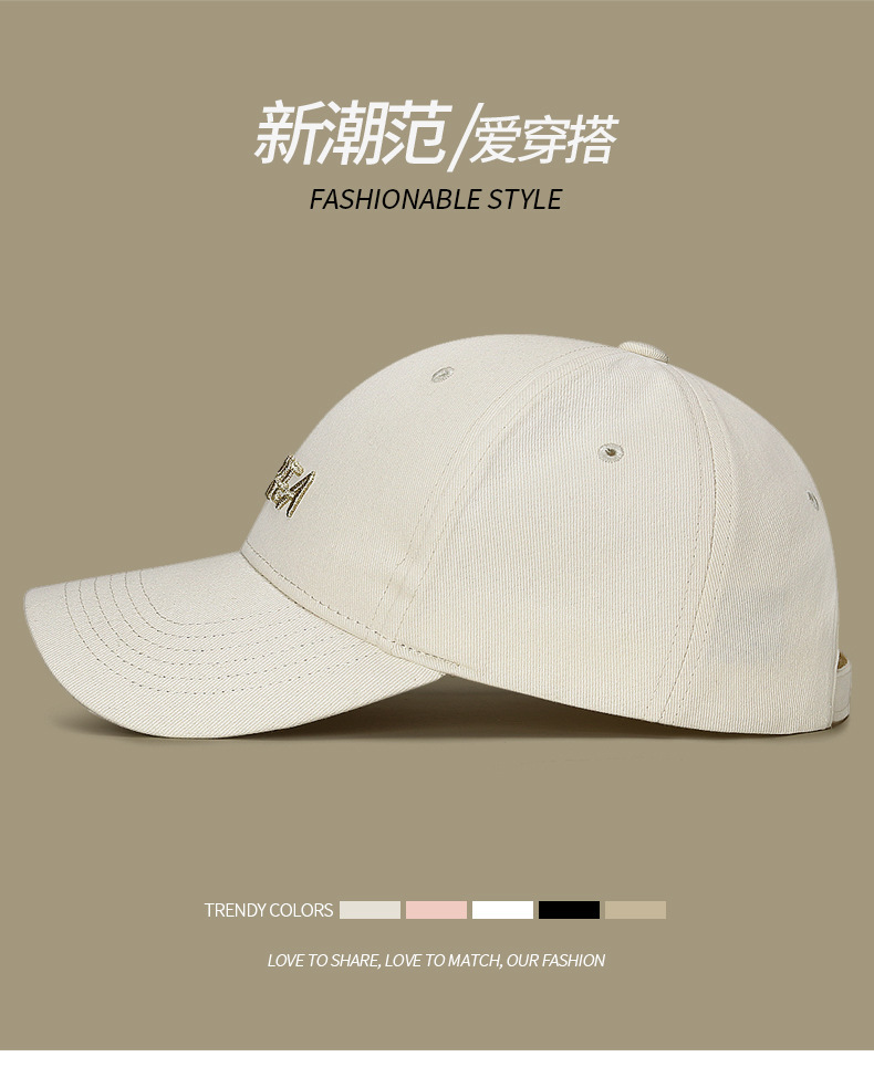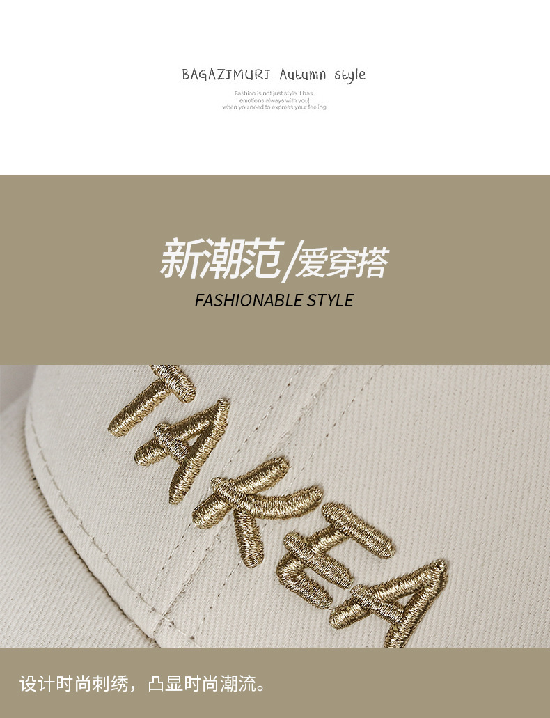 韩版硬顶时尚百搭棒球帽男女士户外遮阳弯檐可调节刺绣字母鸭舌帽