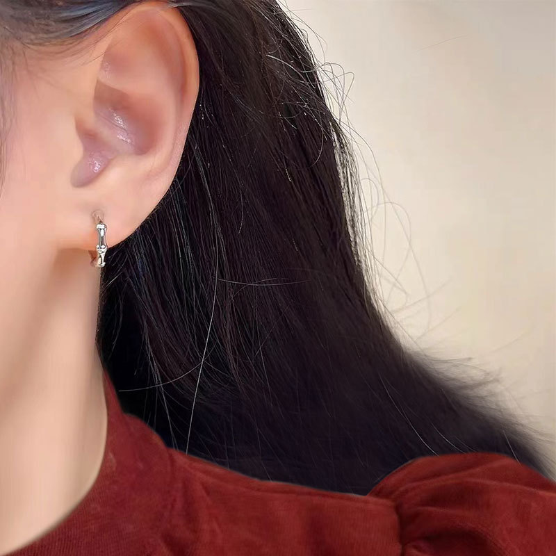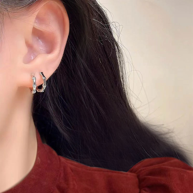 竹节耳扣高级感轻奢小众耳饰简约清冷感耳圈女时尚百搭耳环饰品