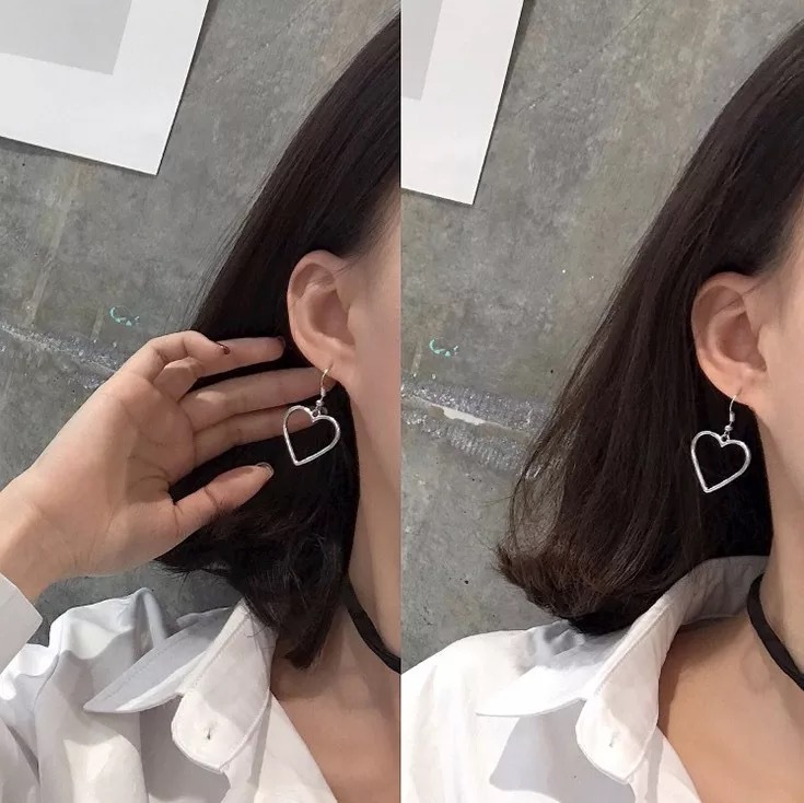 欧美气质简约银色百搭耳钉女配饰品日系复古甜美少女桃爱心形耳环