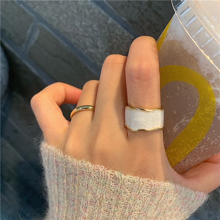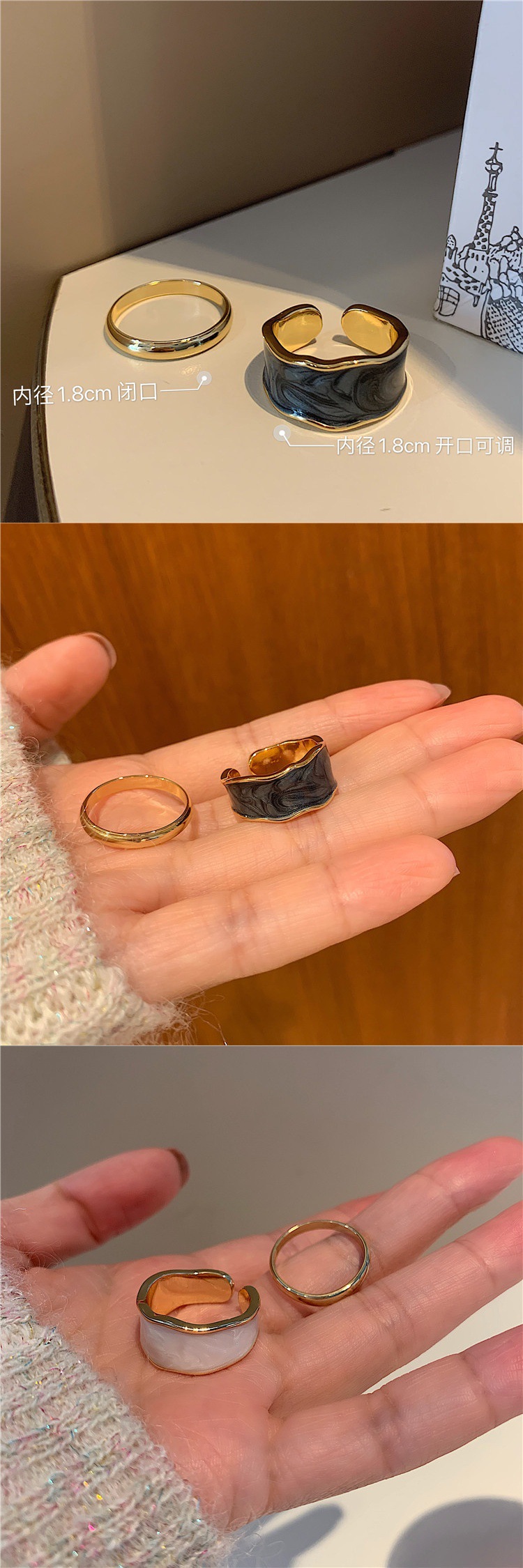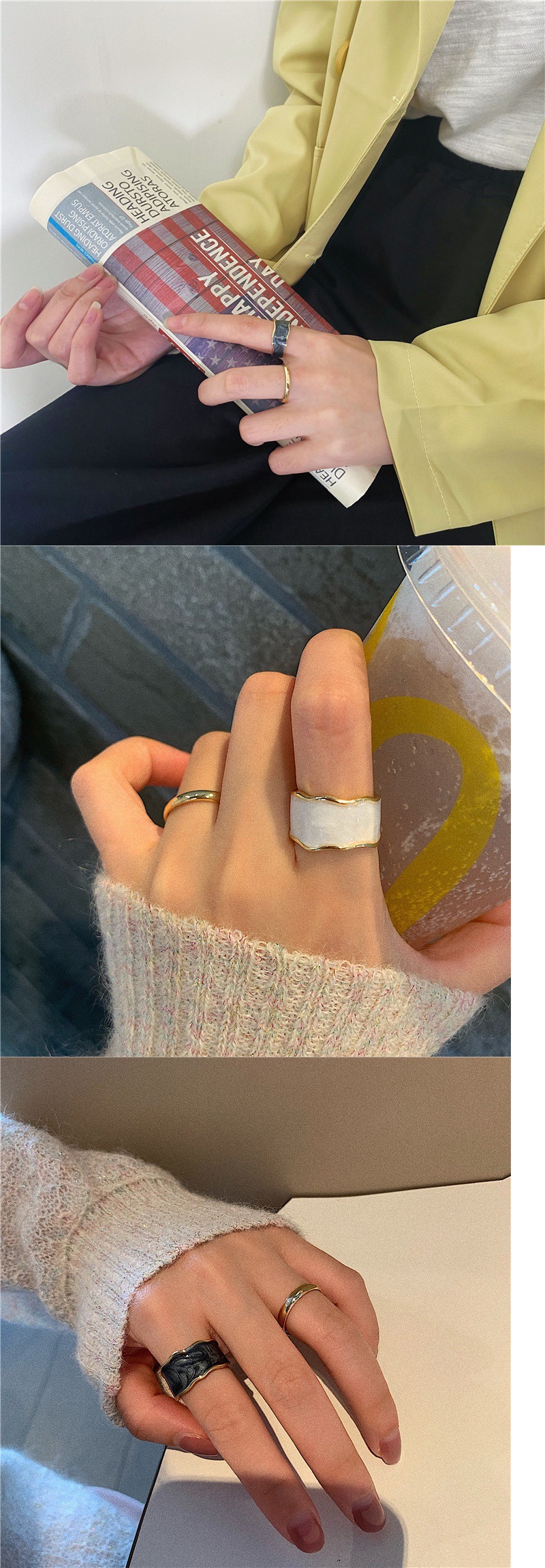 欧美S925银珐琅戒指女复古法式气质宽版开口指环时尚个性食指戒潮