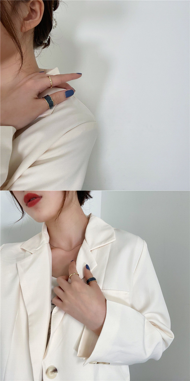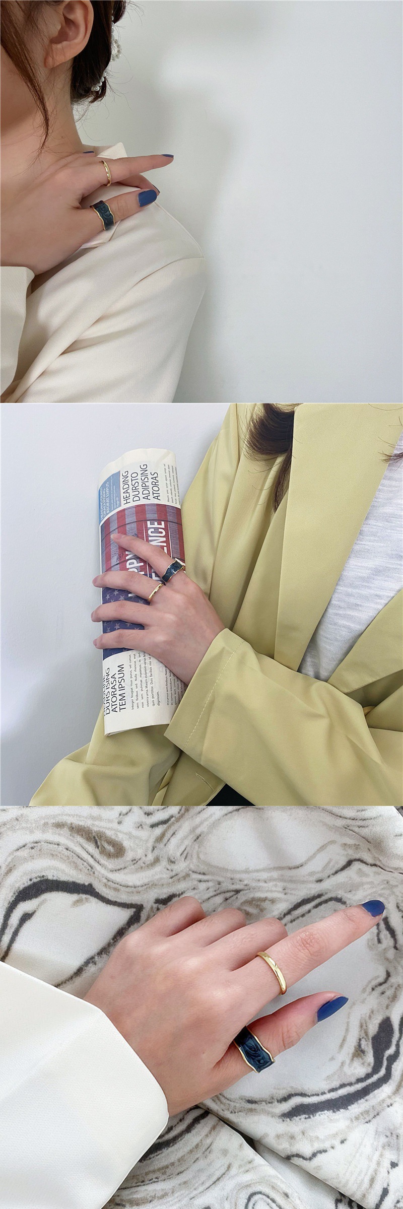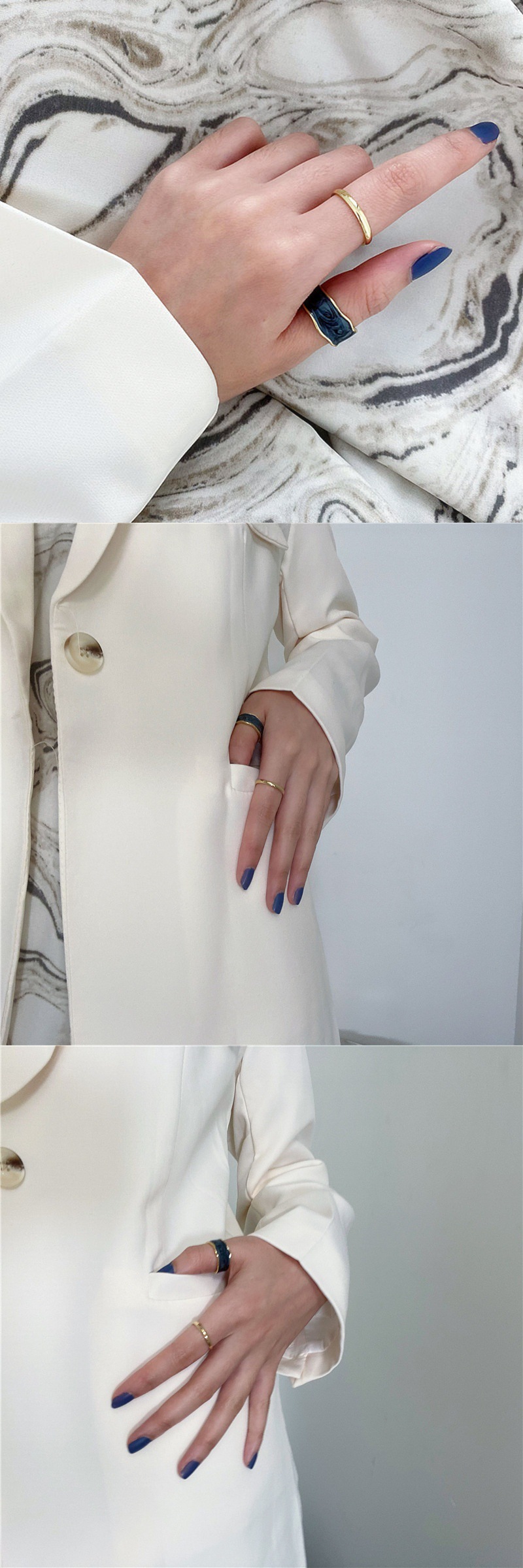 欧美S925银珐琅戒指女复古法式气质宽版开口指环时尚个性食指戒潮