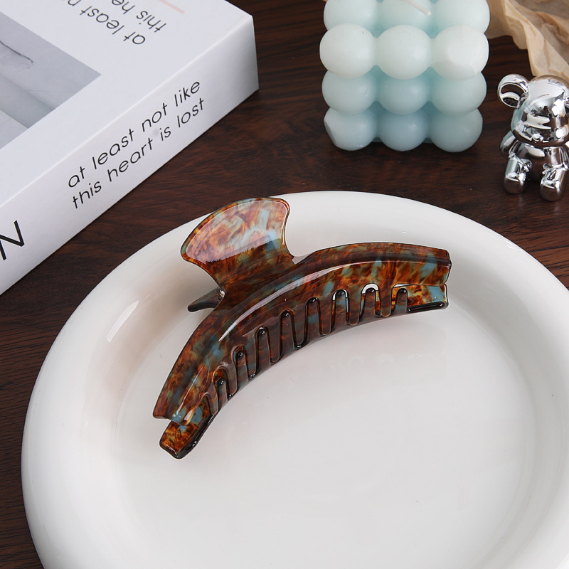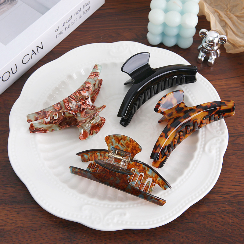 高品质日韩国france法式醋酸弧形发抓豹纹大号抓夹盘发夹鲨鱼2024