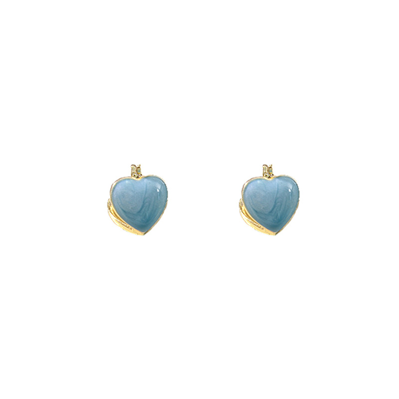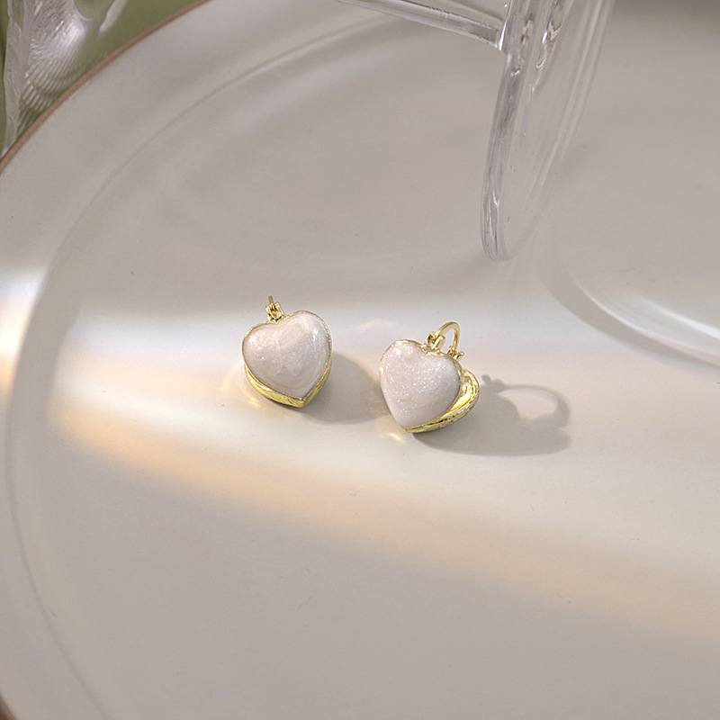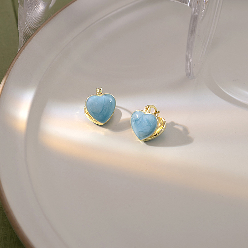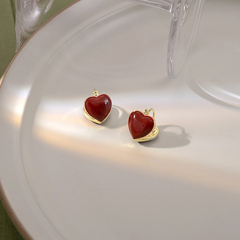 法式复古滴油桃心耳扣 气质甜美爱心双面耳饰设计感多色几何耳环
