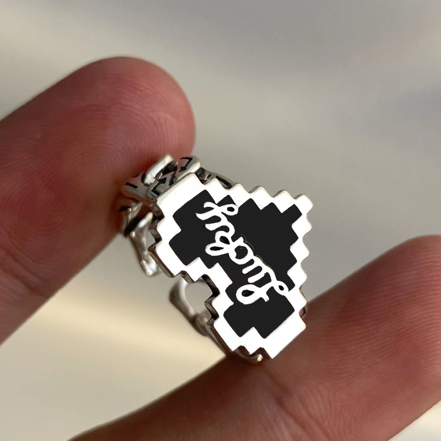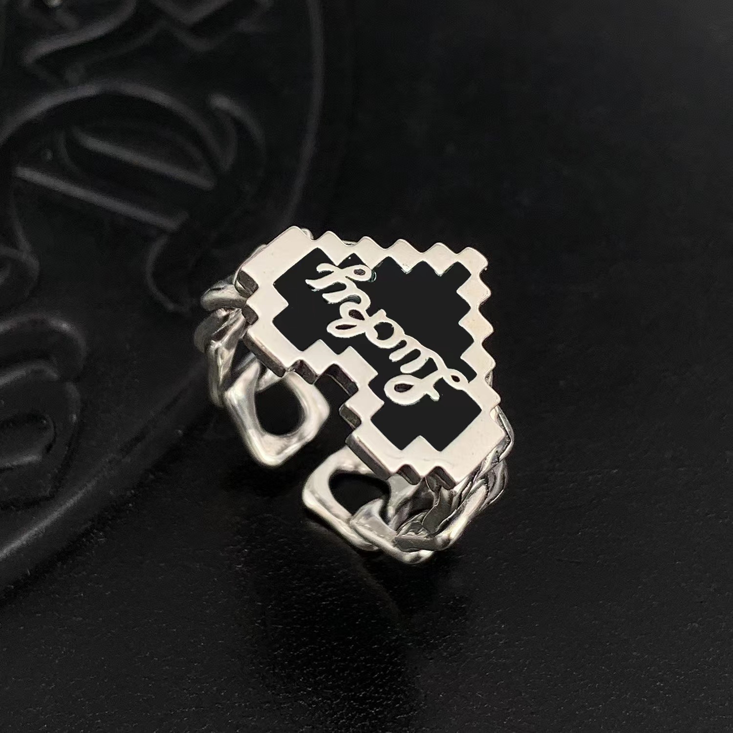 欧美爱心滴油字母戒子嘻哈复古风开口指环轻奢食指戒批发简约