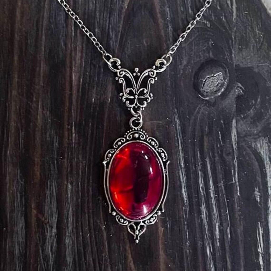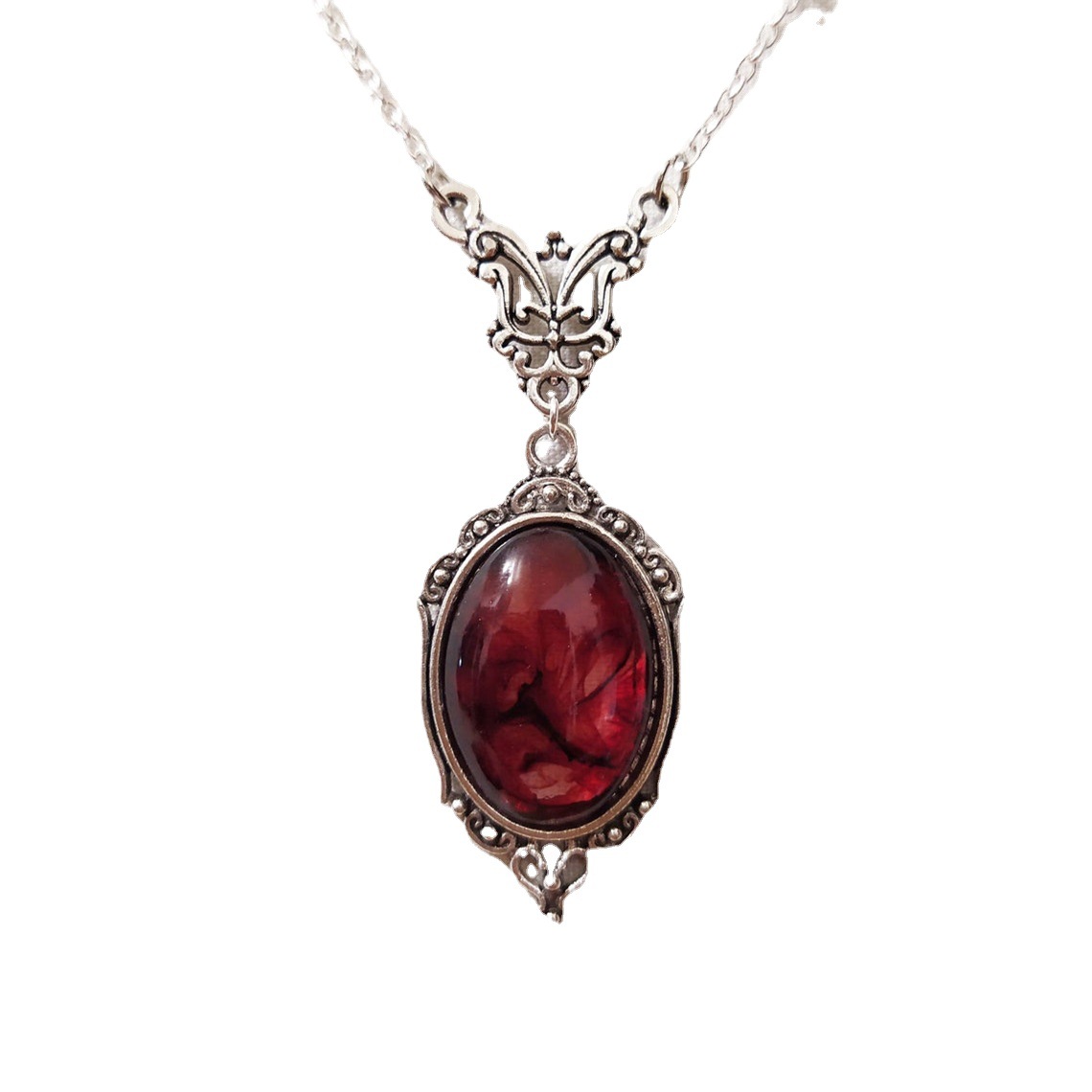 跨境热销 速卖通 血色椭圆形玻璃吊坠项链 精美血色吊坠项链厂家