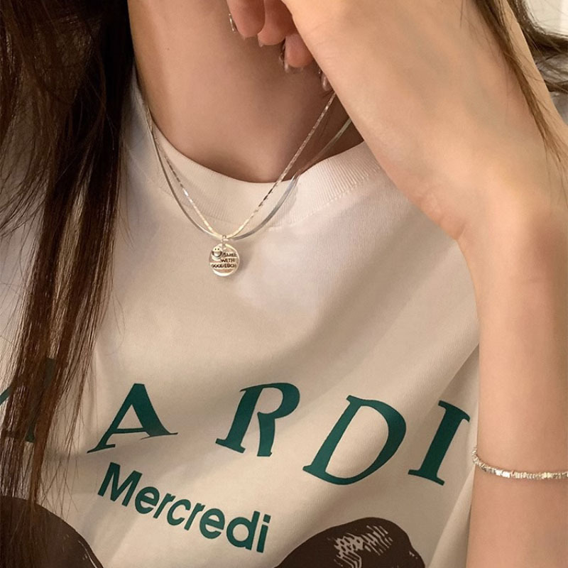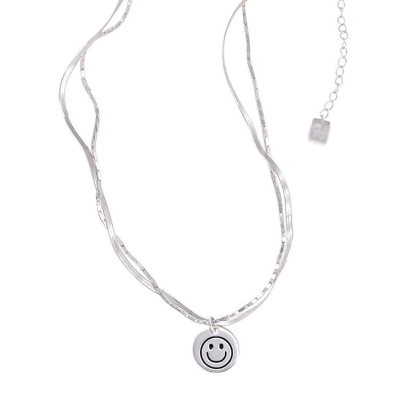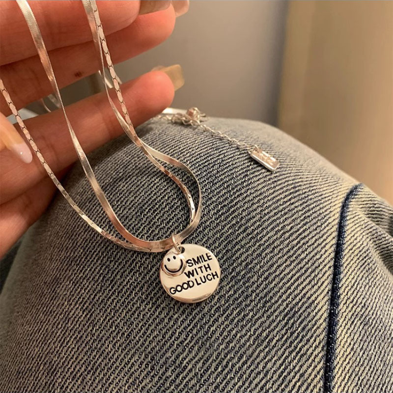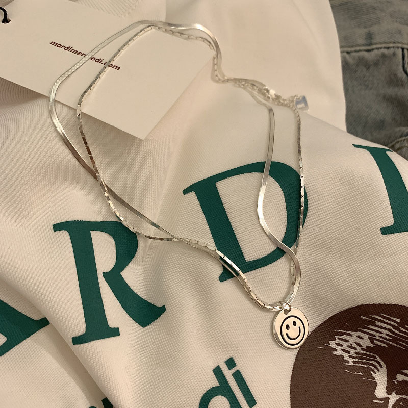 韩版轻奢小众笑脸蛇骨链双层项链女时尚百搭饰品气质高级感锁骨链