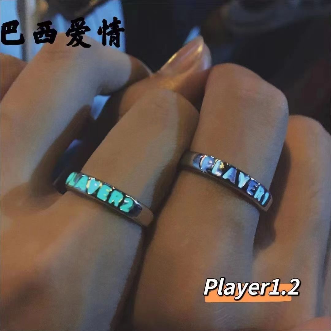 巴西夜光爱情游戏PLAYER情侣发光戒指ins学生开口可调节送女友