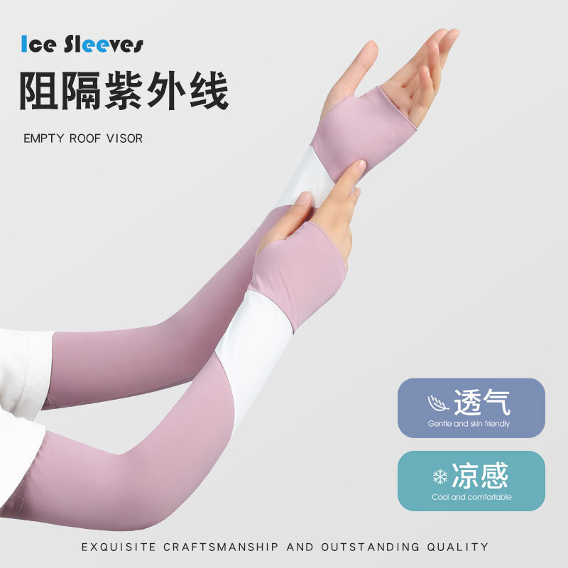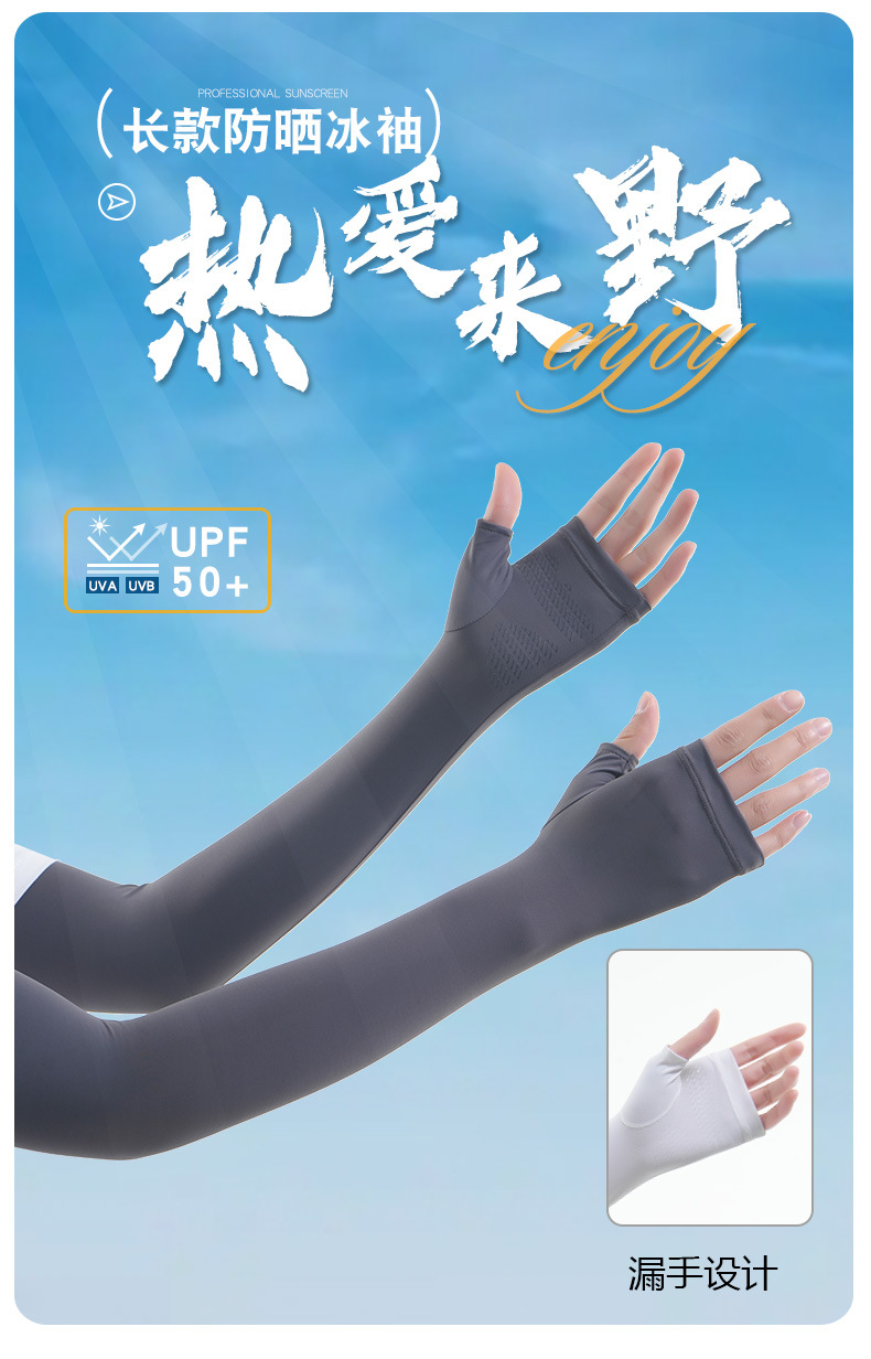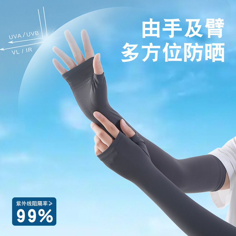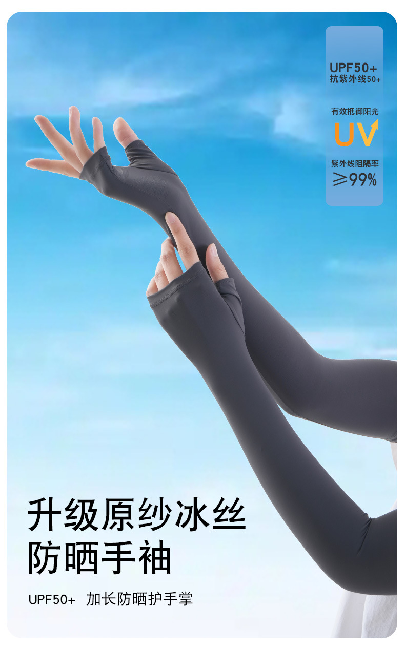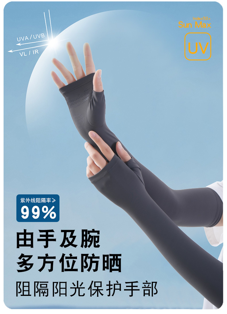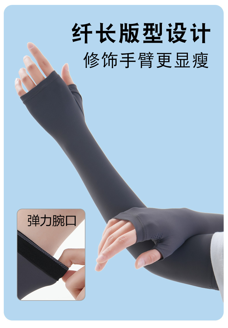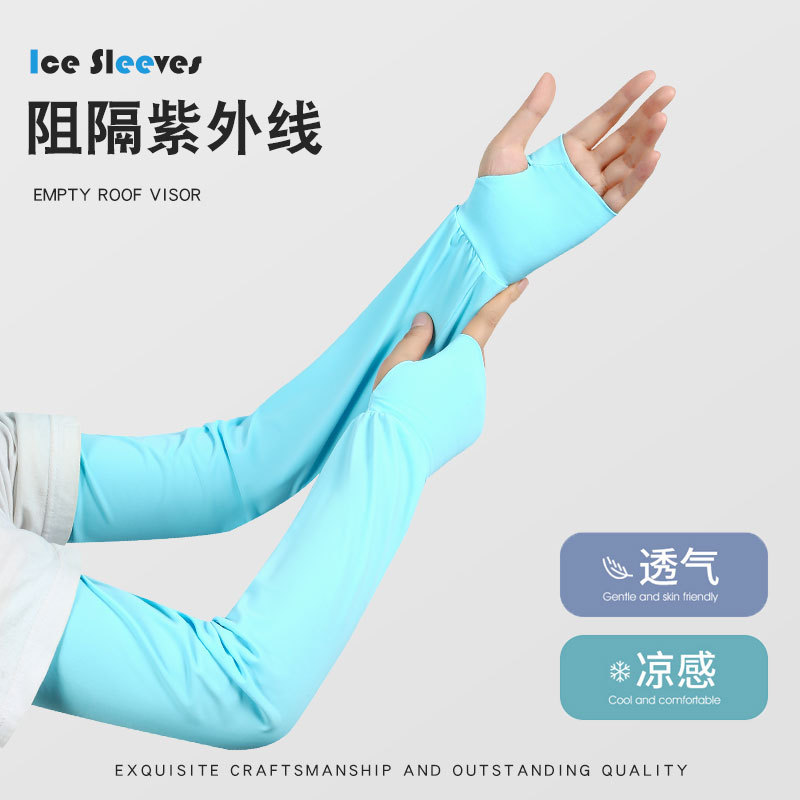 锦纶冰丝夏季防晒袖套女户外开车骑行防紫外长款遮阳透气护臂冰袖