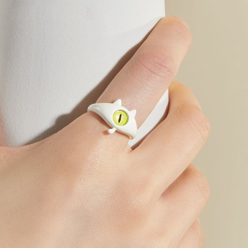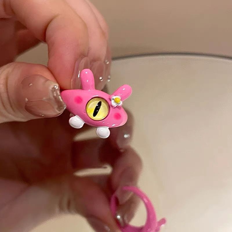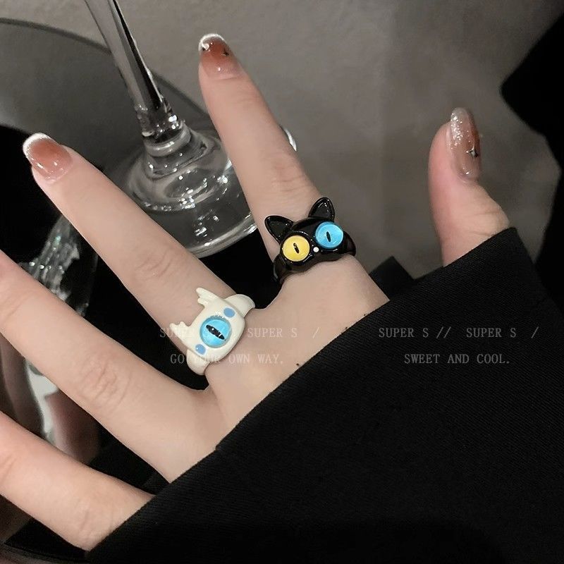 童趣搞怪少女黑猫小怪兽大眼仔创意戒指女甜酷可爱百搭情侣手饰品