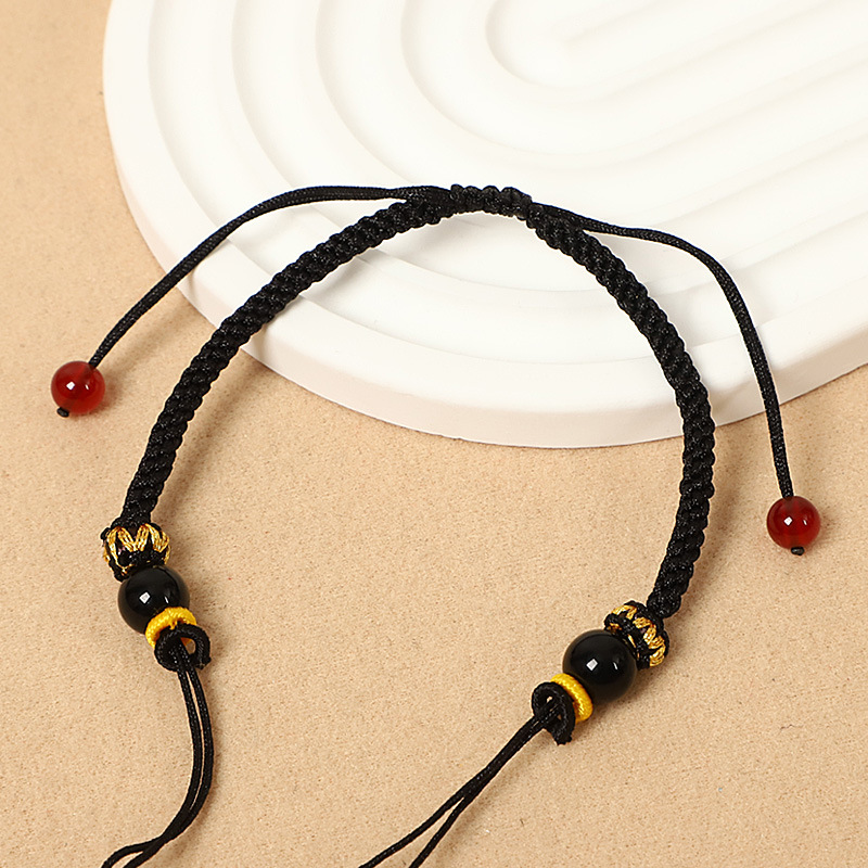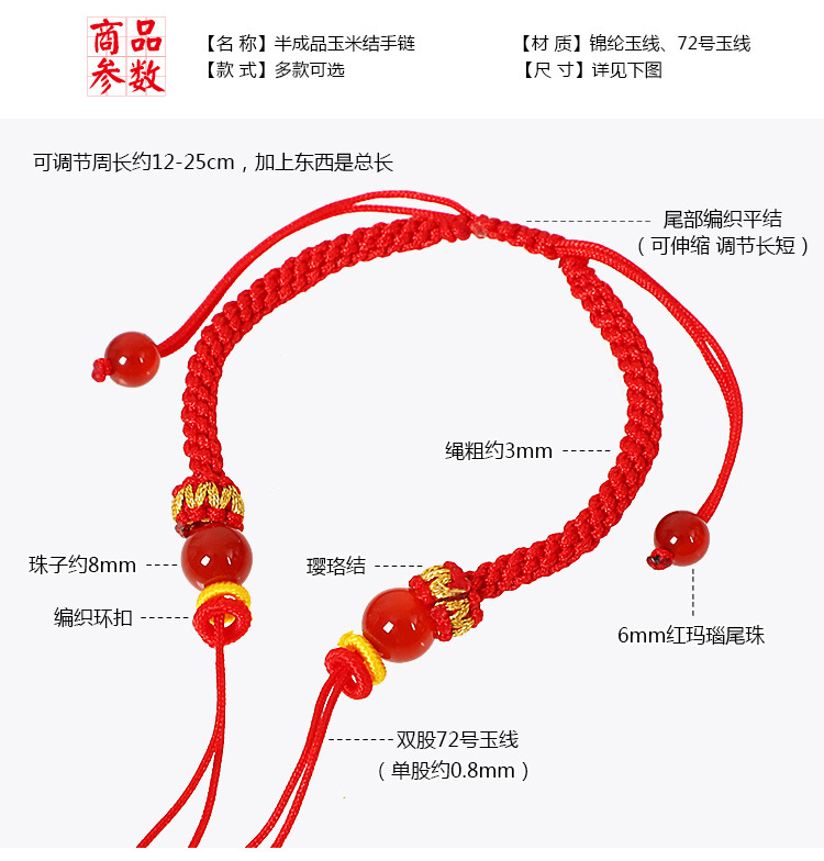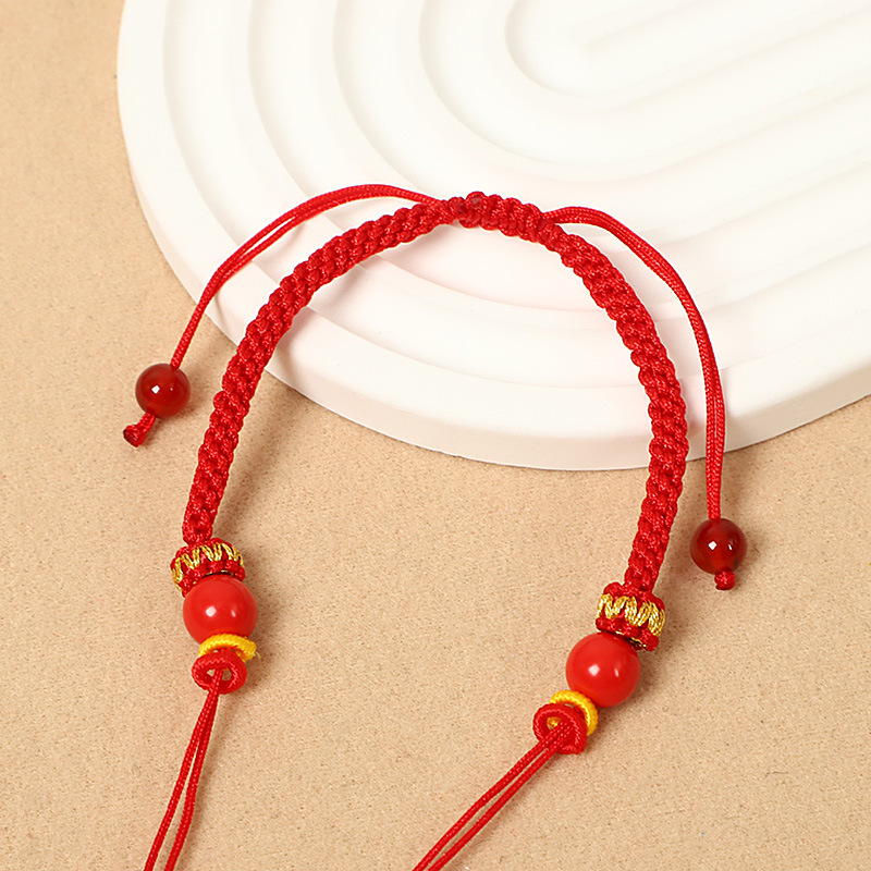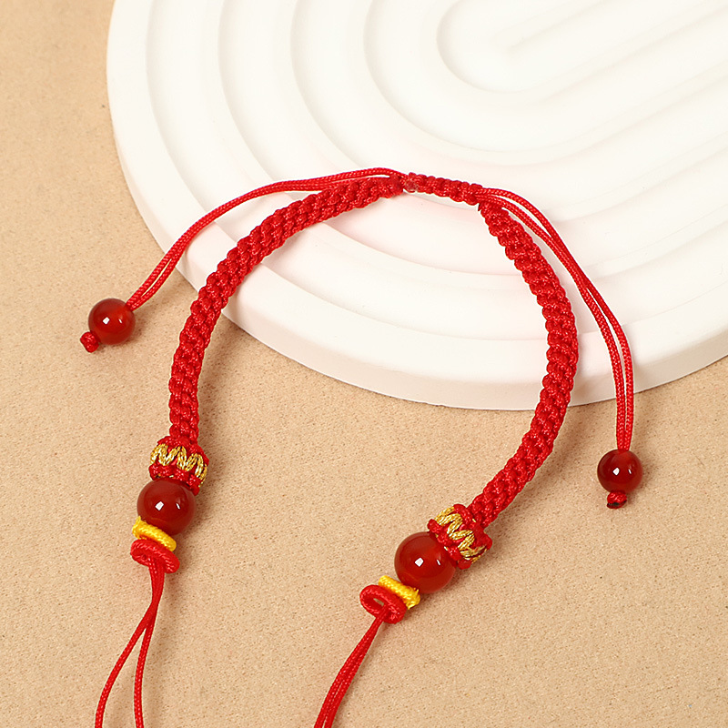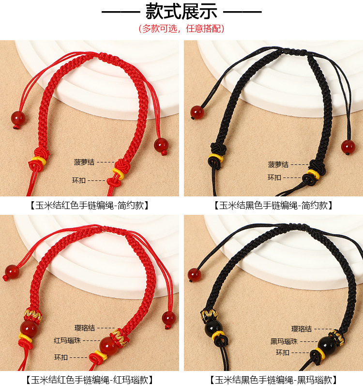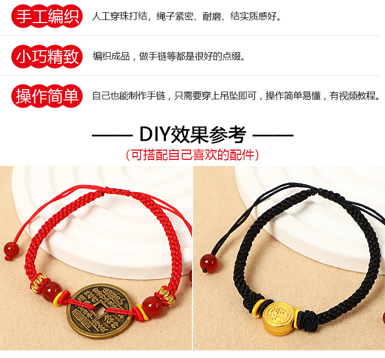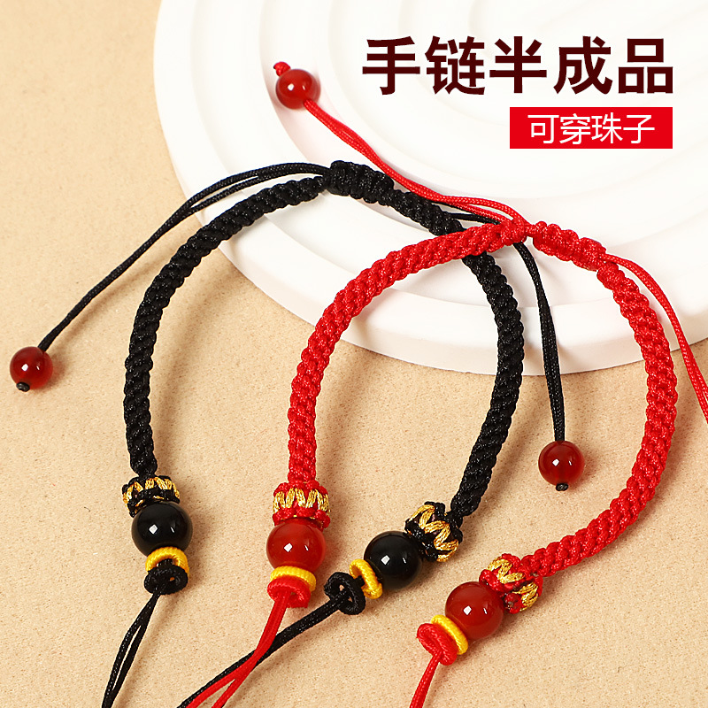 新款手工编织手链半成品可穿珠黄金配件diy手绳情侣款红绳带尾珠