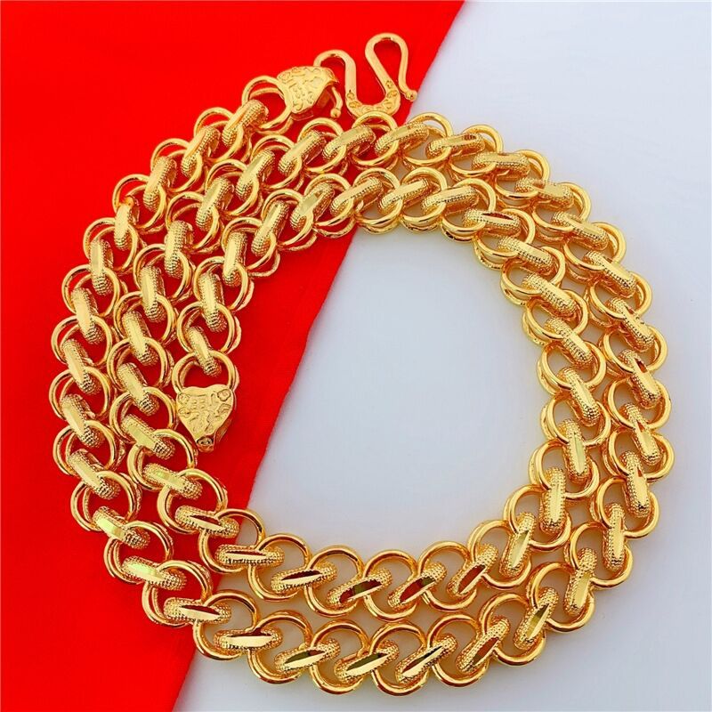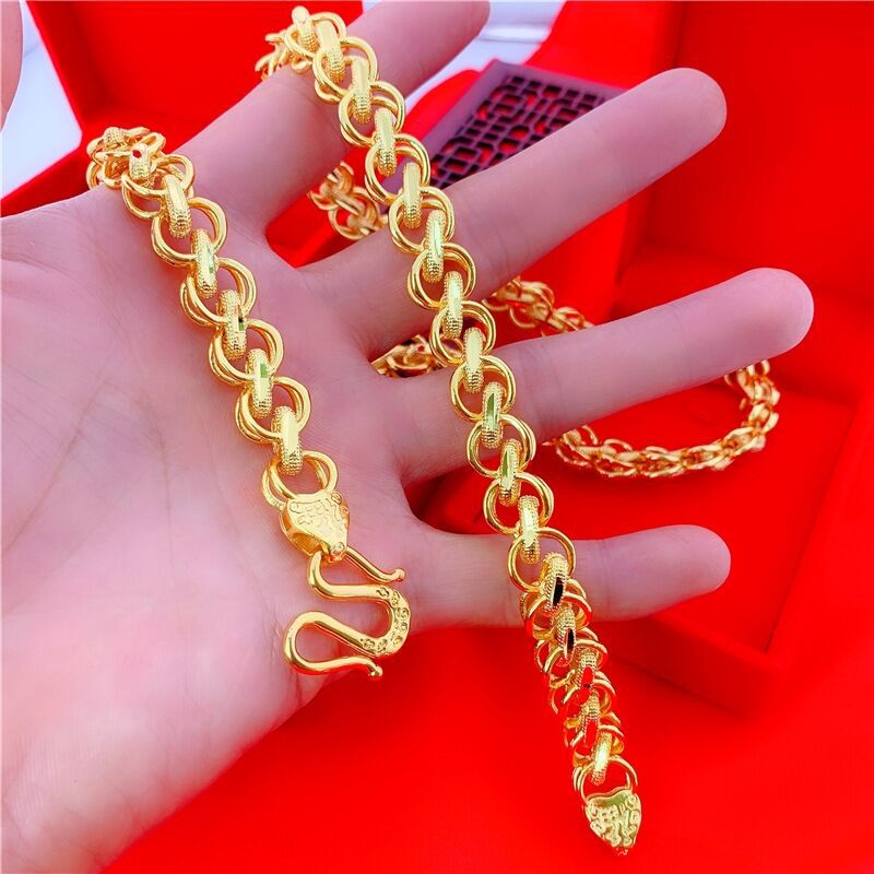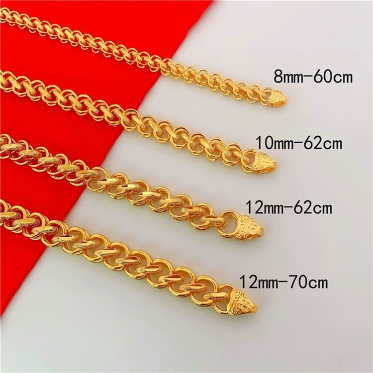 越南沙金泰国项链男士霸气仿真铜镀金黄金色8mm项链地摊饰品批发
