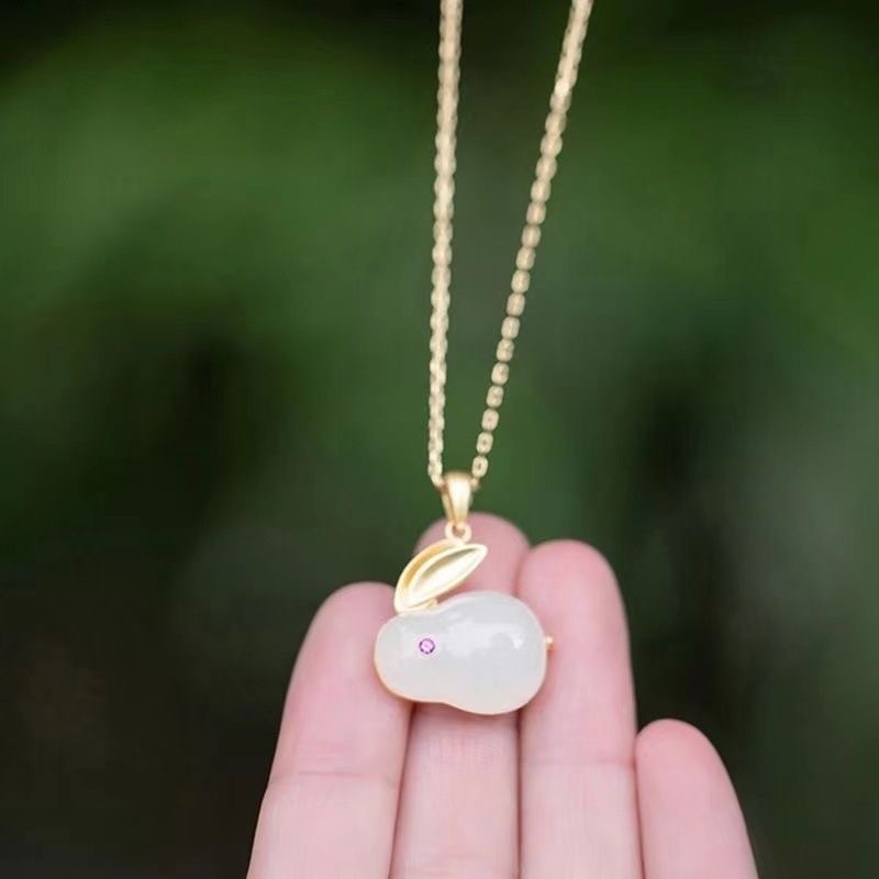 故宫兔子项链玉兔吊坠女生复古仿和田玉锁骨链儿童小玉坠生日礼物