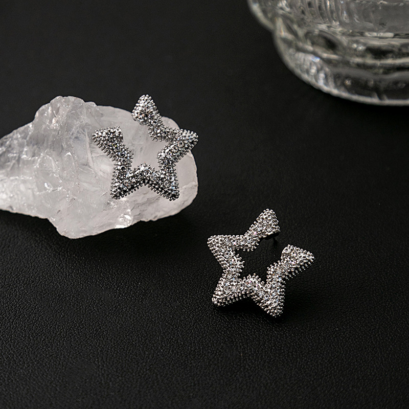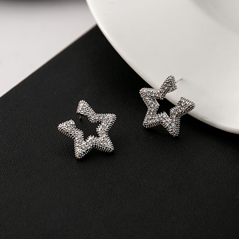 欧美新款闪闪百搭镂空星星耳钉 洋气百搭轻奢高级感五角星耳饰女
