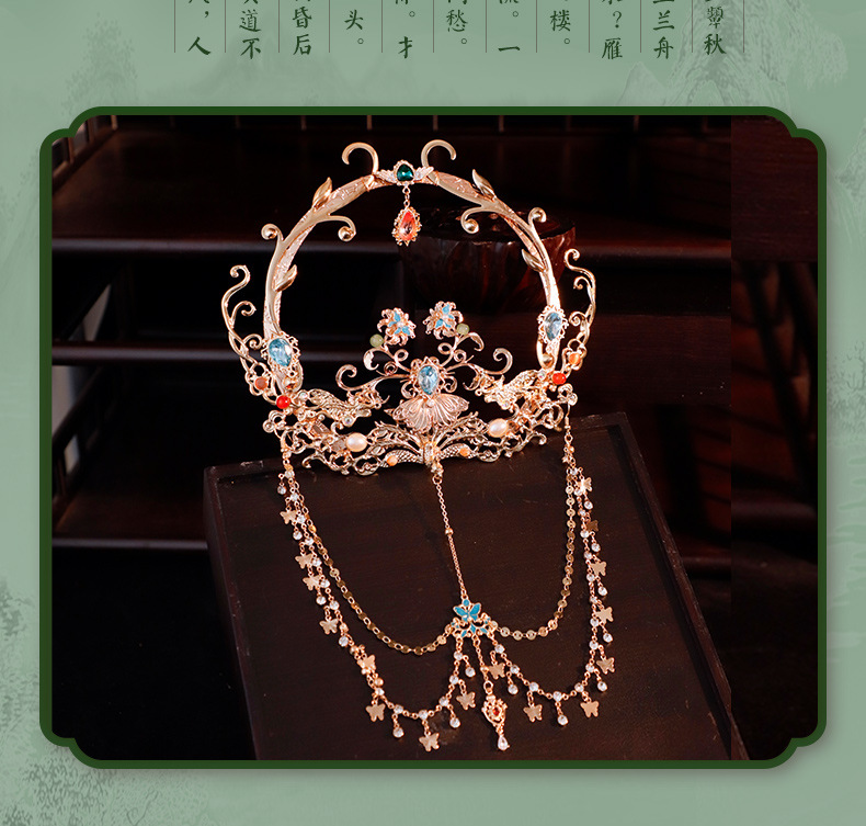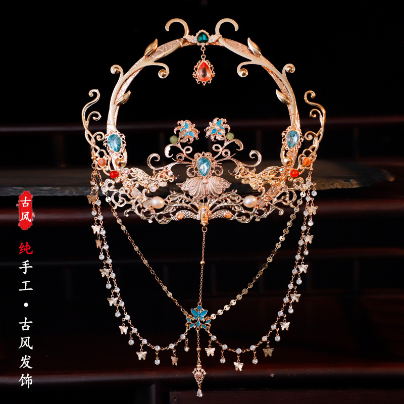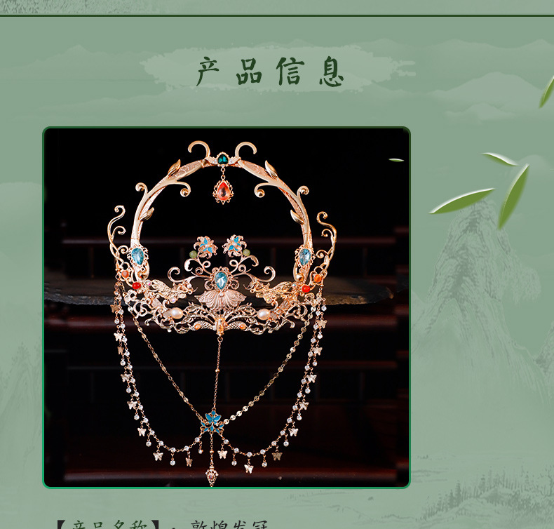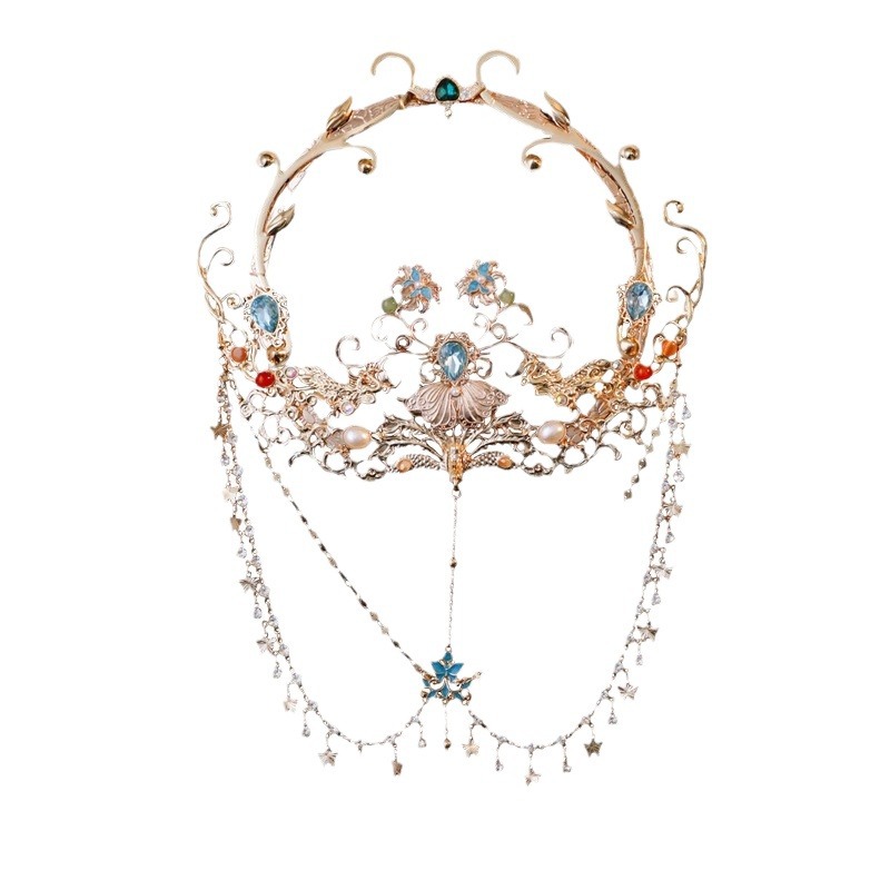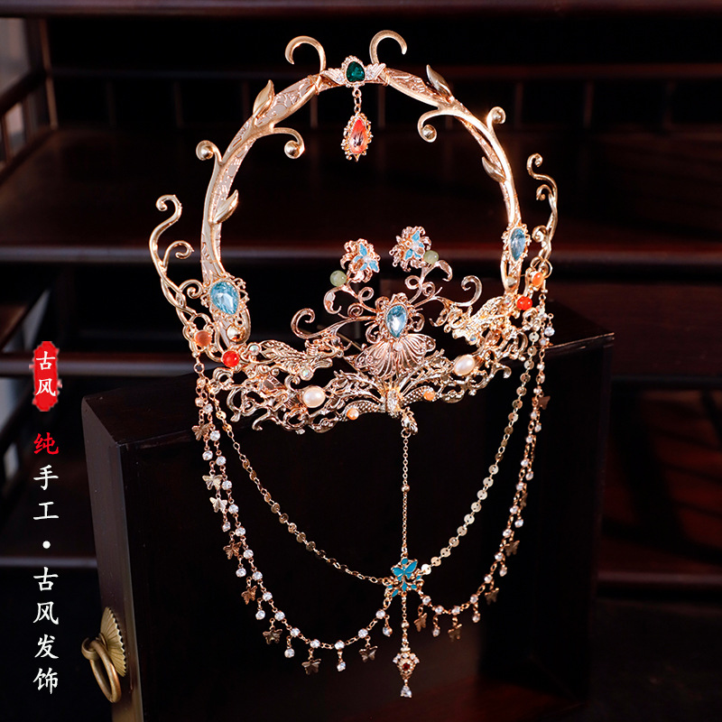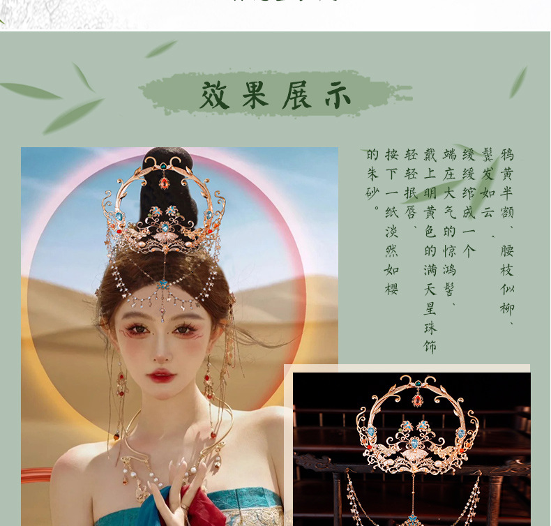 唐风敦煌异域风手工发冠气质飞天圣女光圈发饰百搭眉心坠额饰典雅