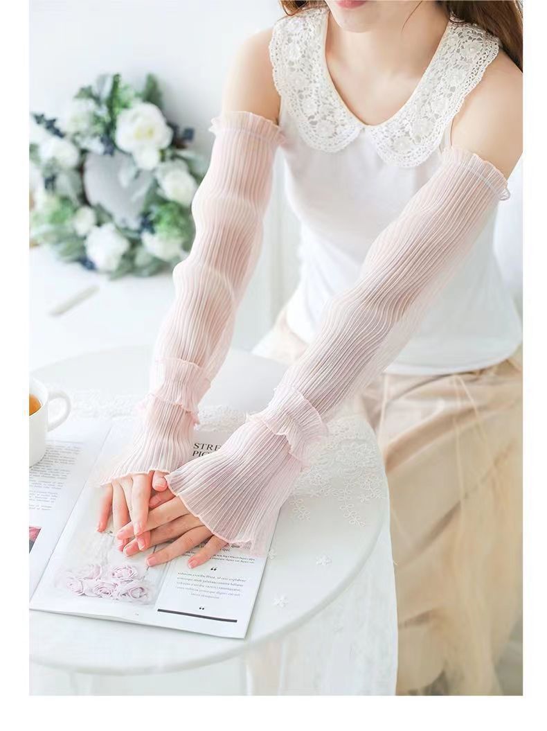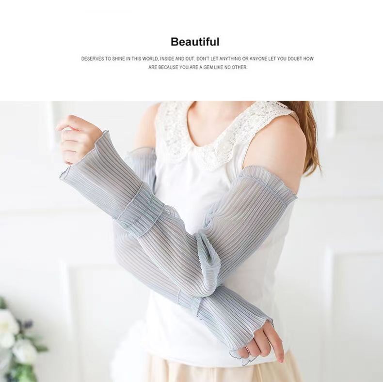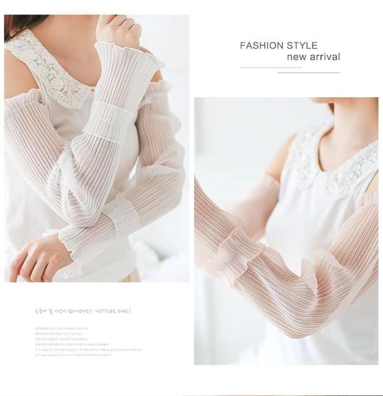 网纱防晒袖套女防紫外线冰袖夏季开车压皱宽松护臂套薄款冰袖大码