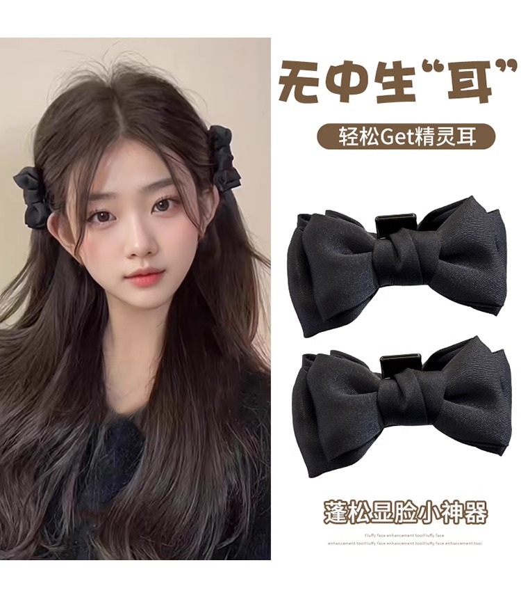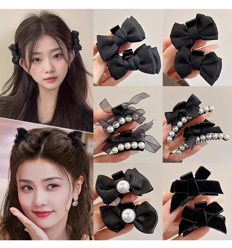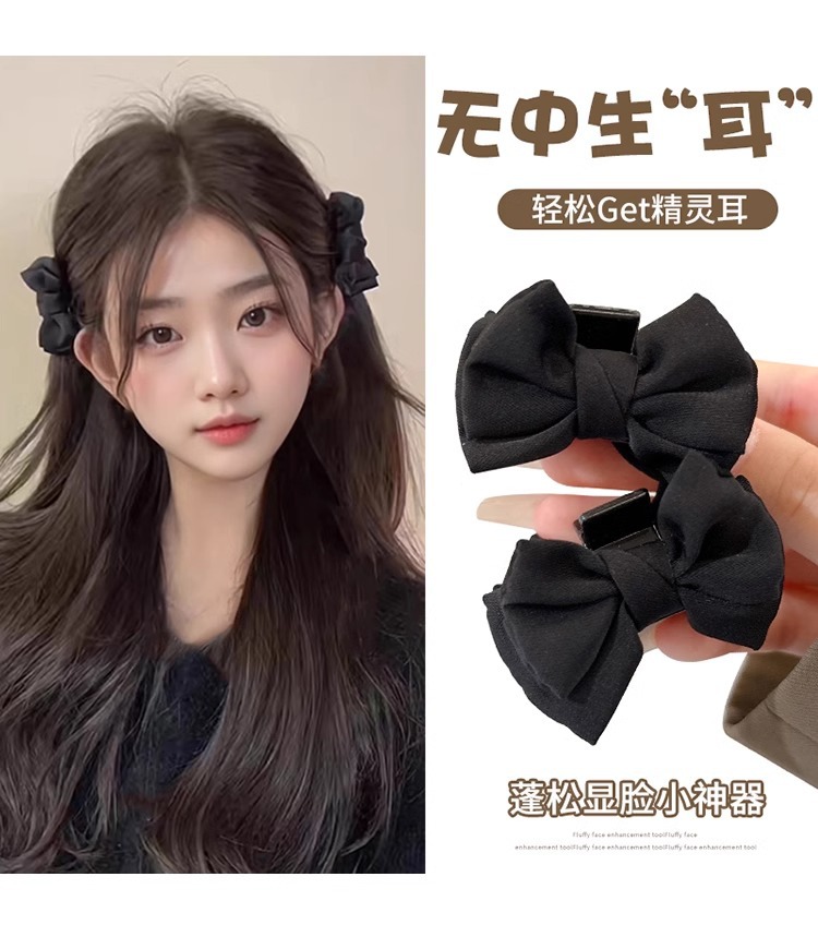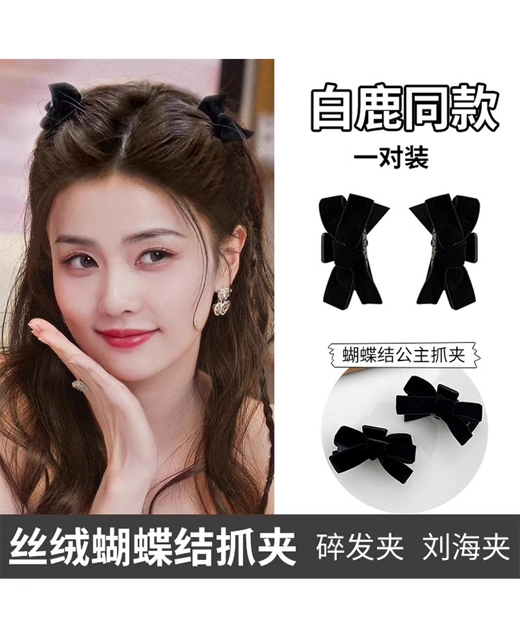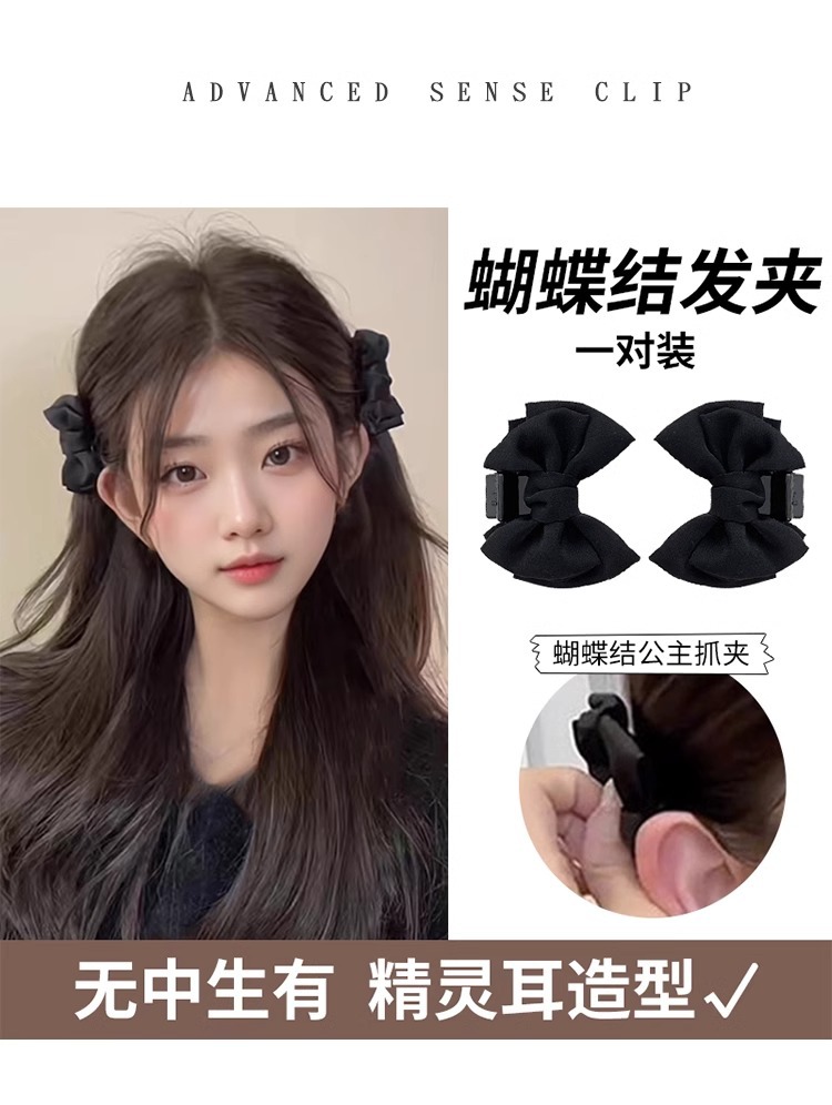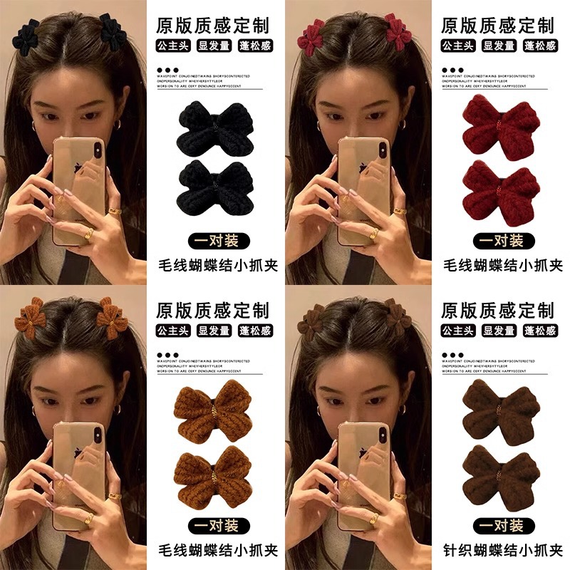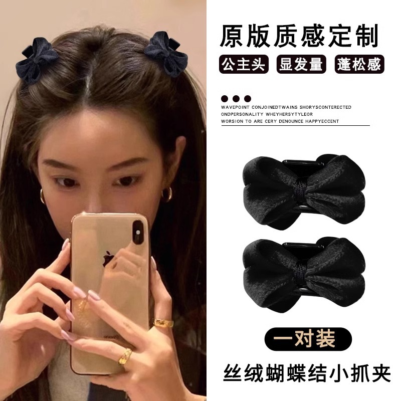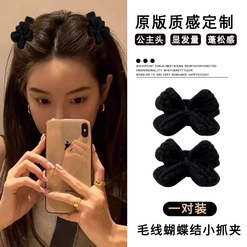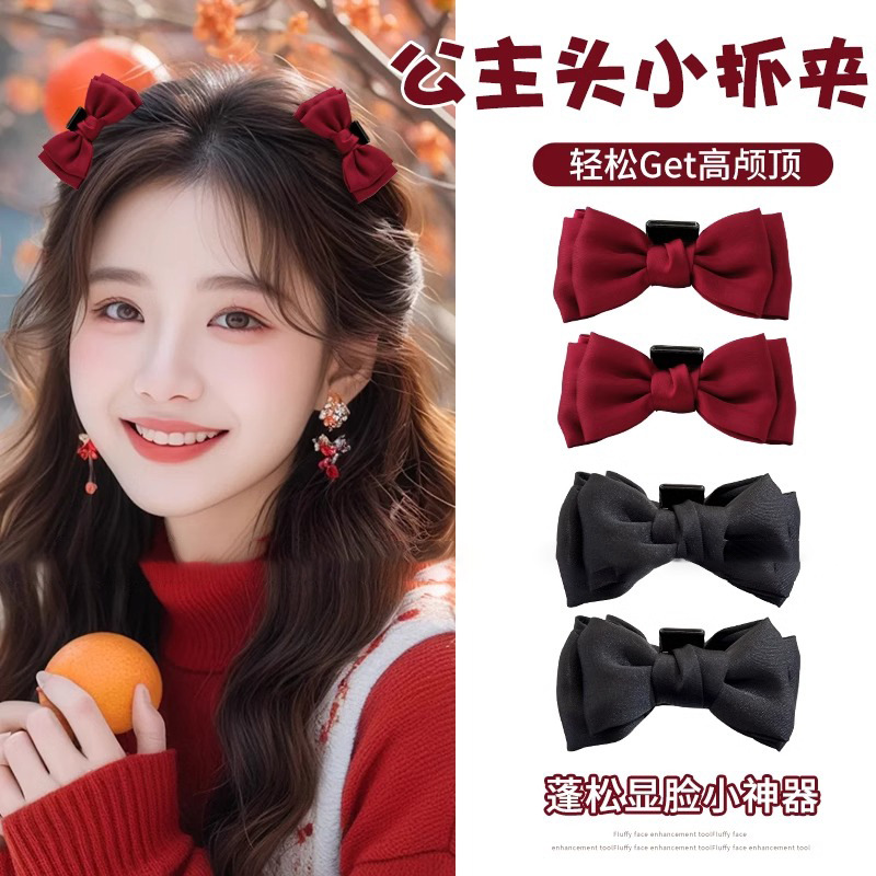 新年公主头蝴蝶结小抓夹头饰高颅顶前额刘海夹子侧边发卡红色发饰