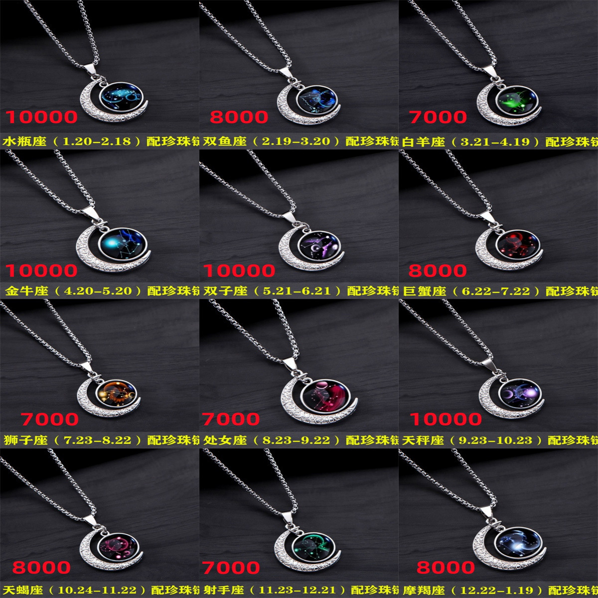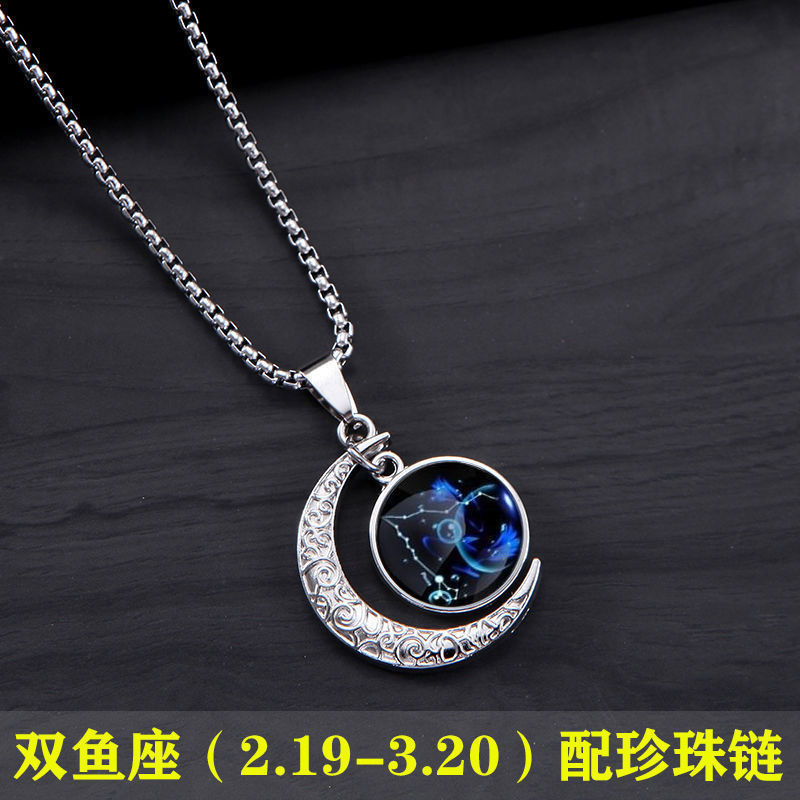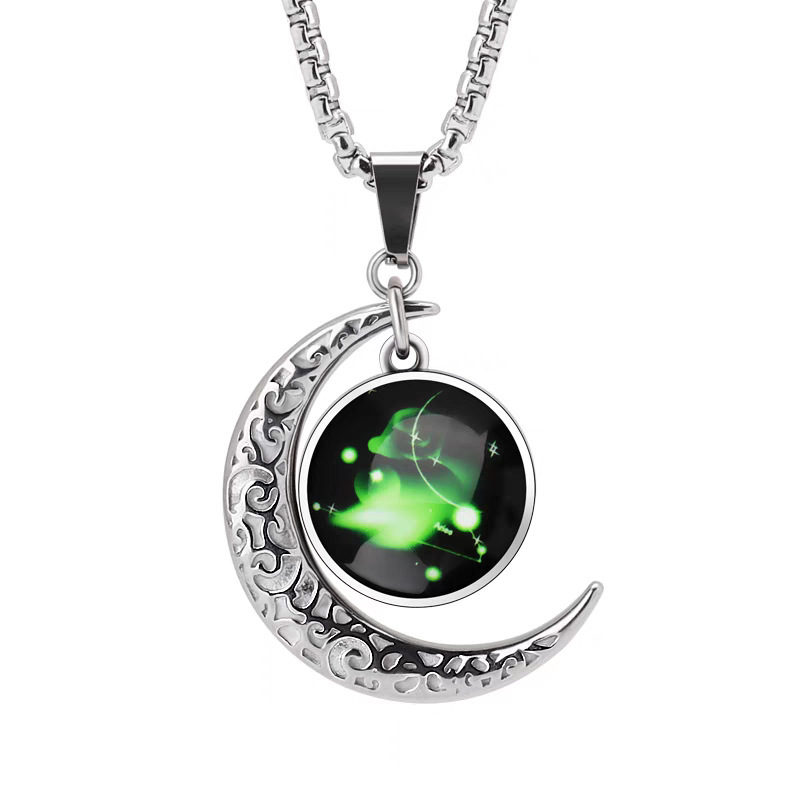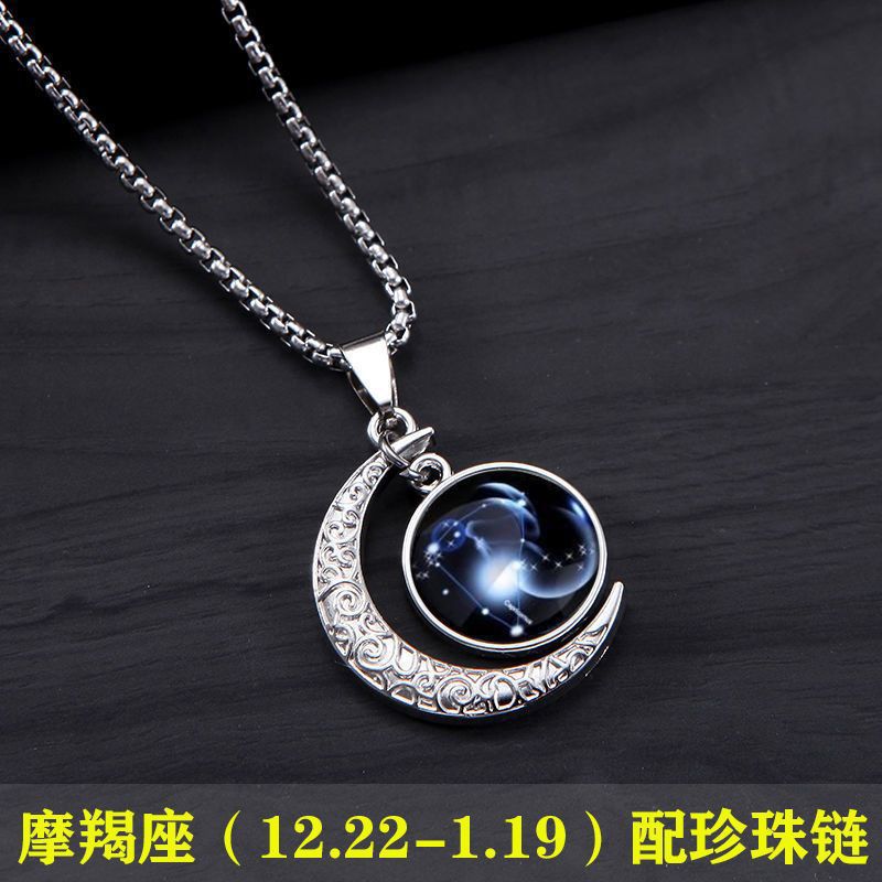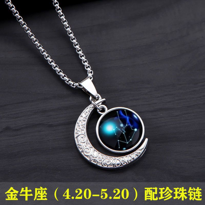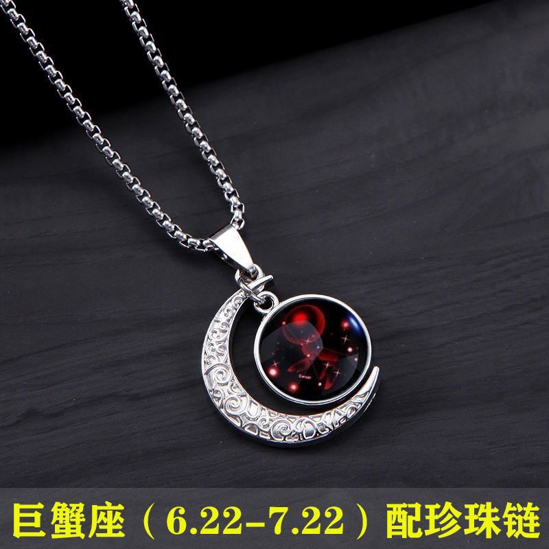 夜光十二星座项链男女潮酷个性发光吊坠嘻哈情侣复古月牙颈链配饰