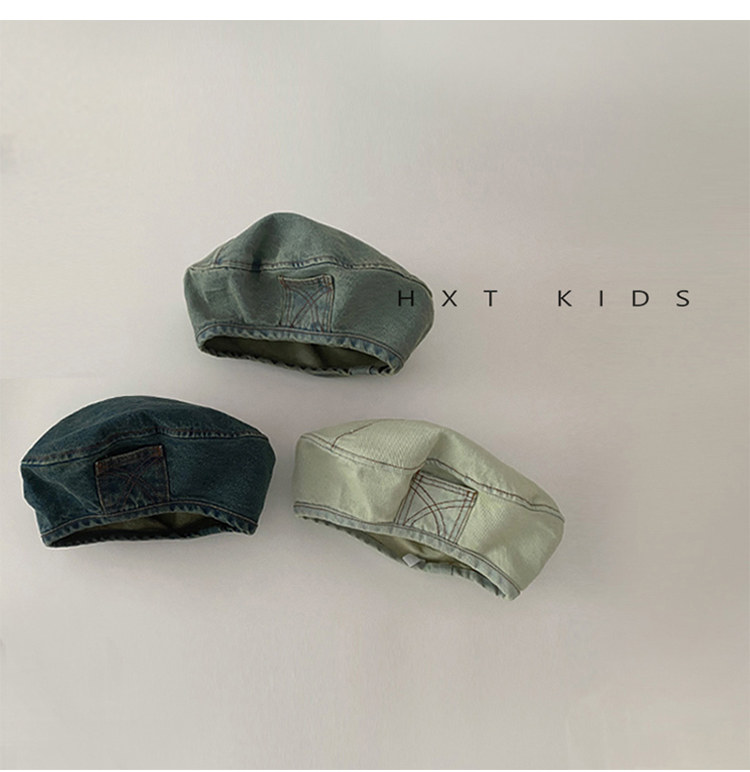 儿童贝雷帽春秋季水洗牛仔帽子潮童宝宝时尚百搭韩版个性画家帽潮