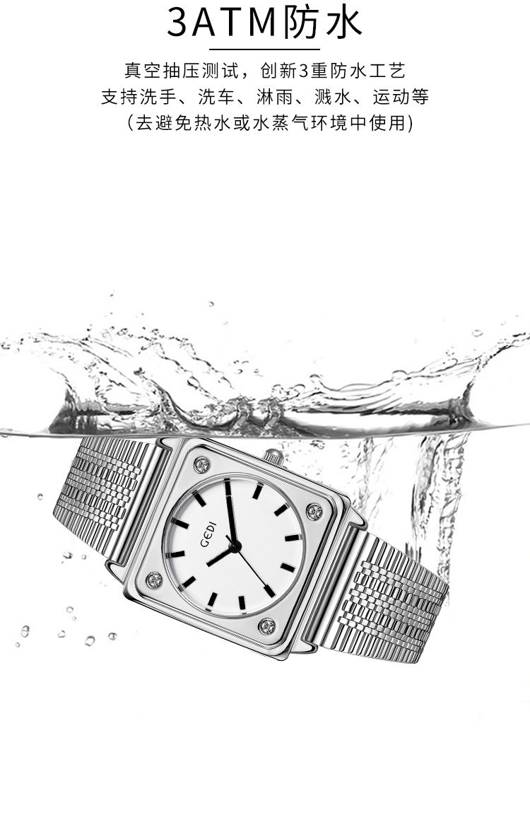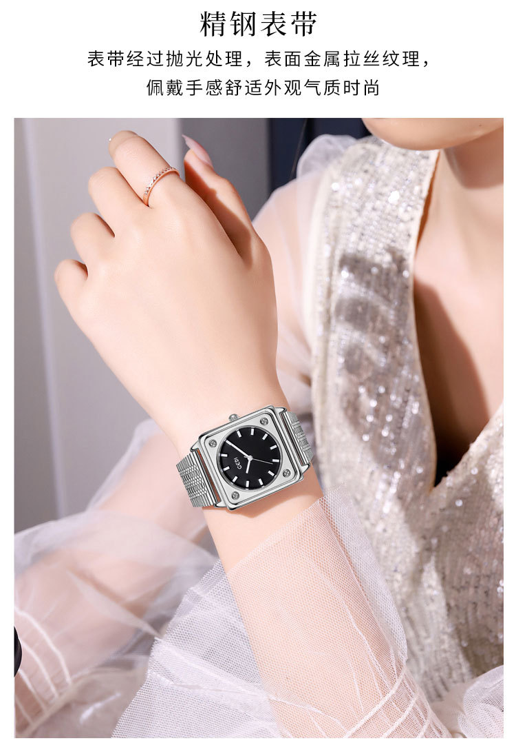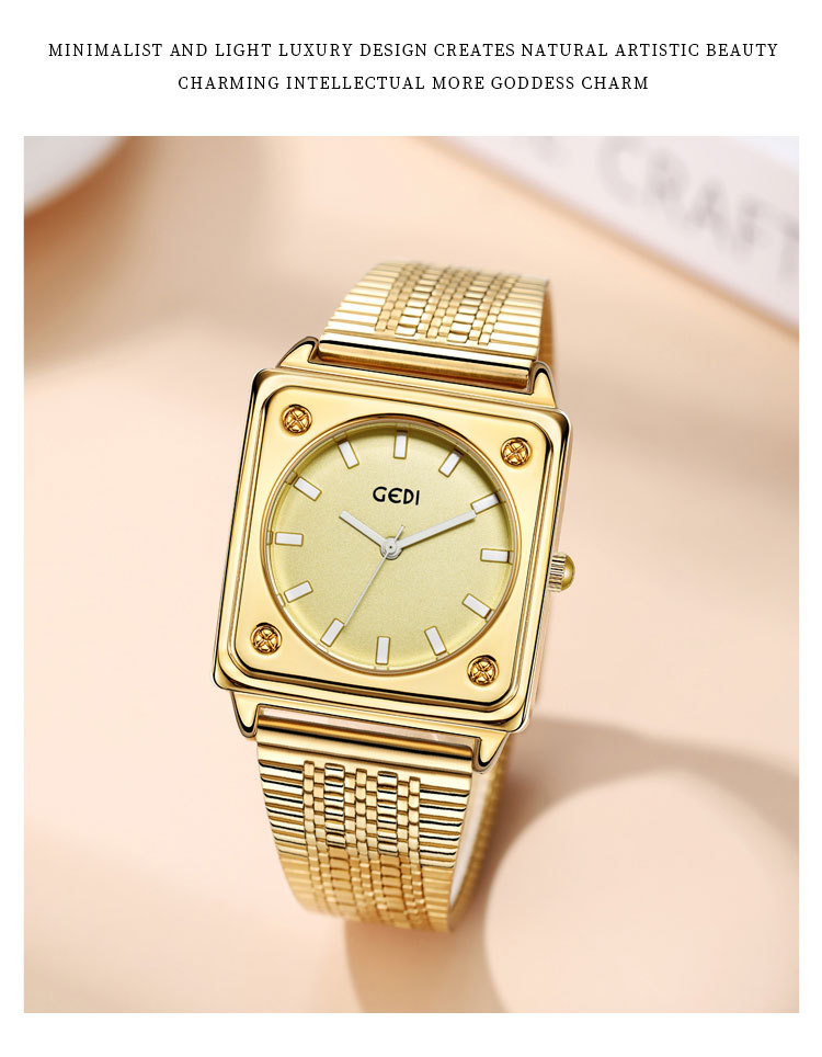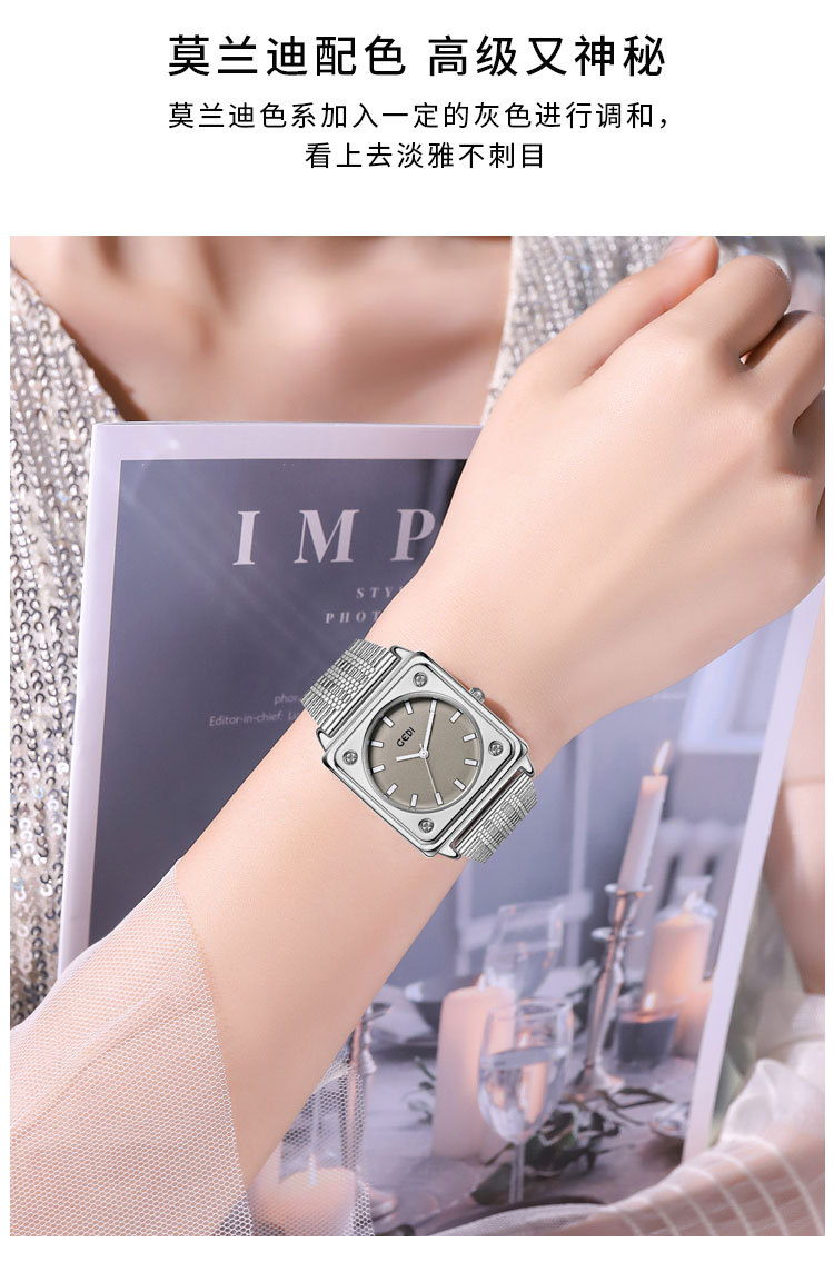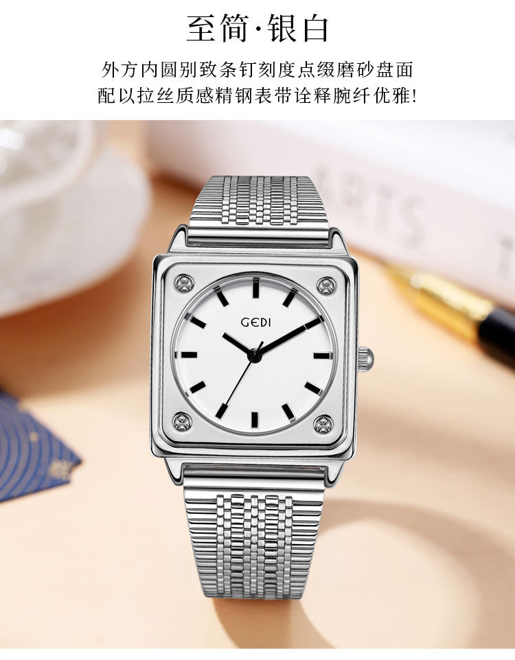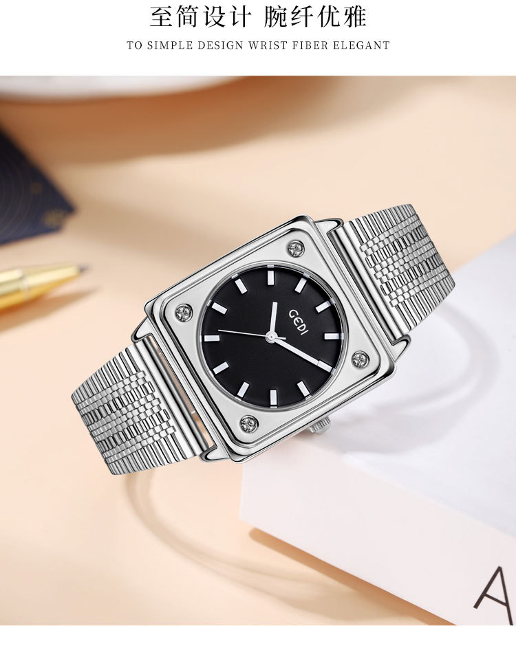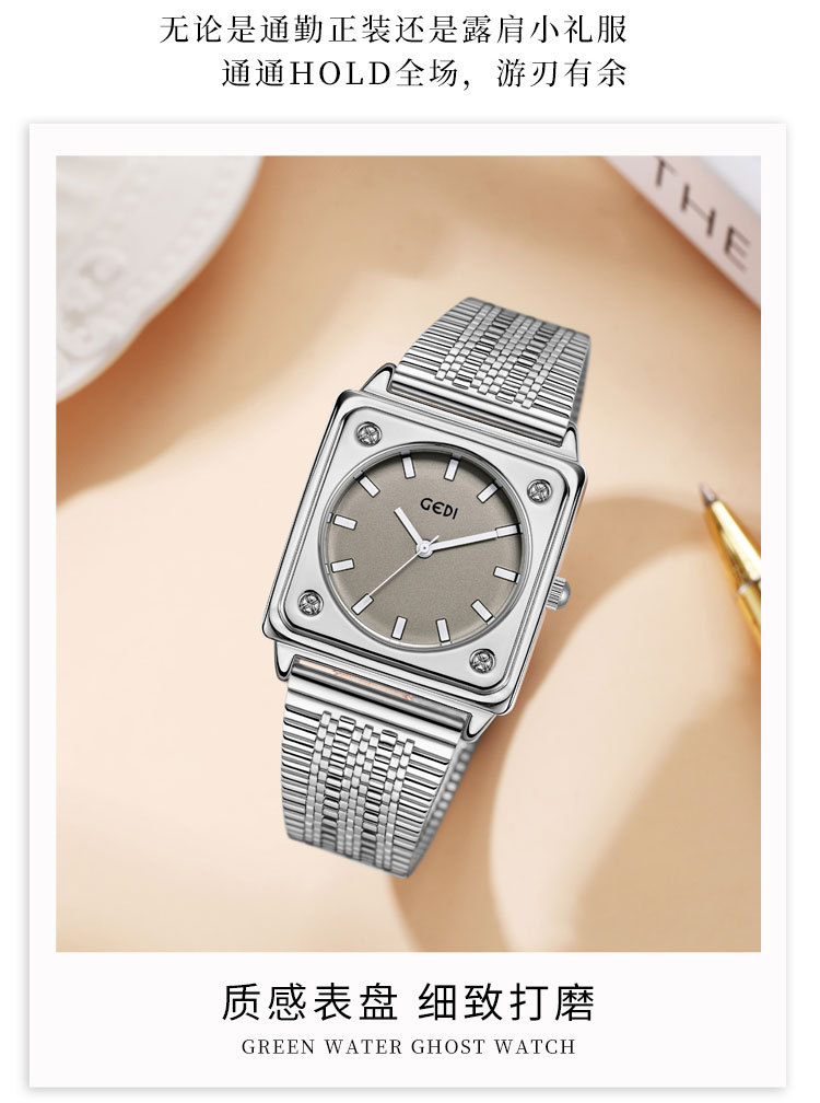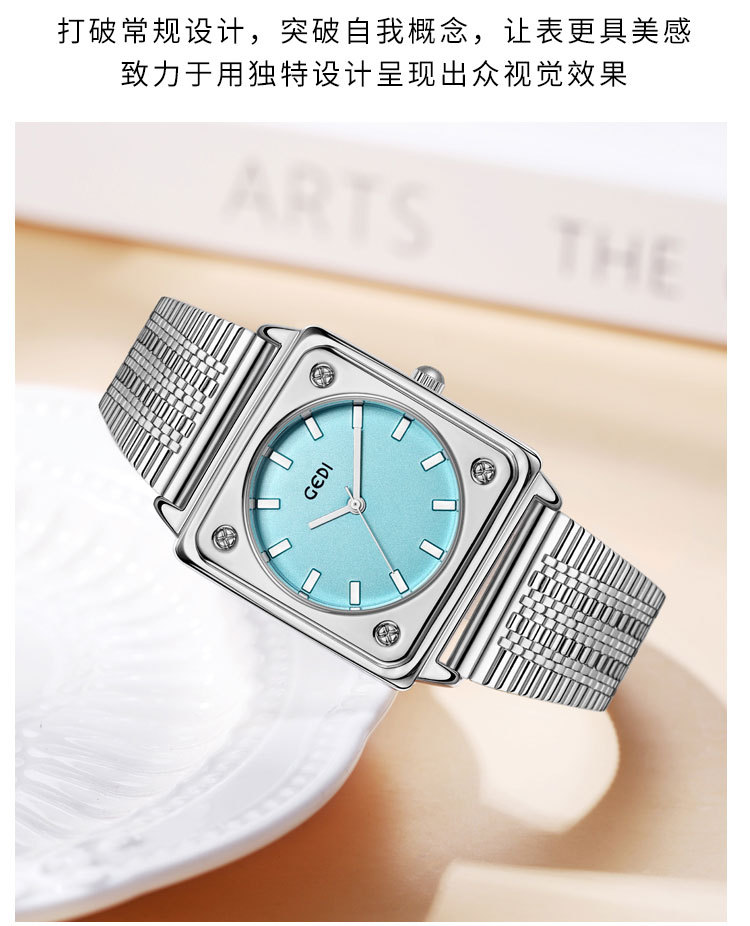 歌迪小众高级感女表简约高颜值钢带表女士方盘防水石英手表